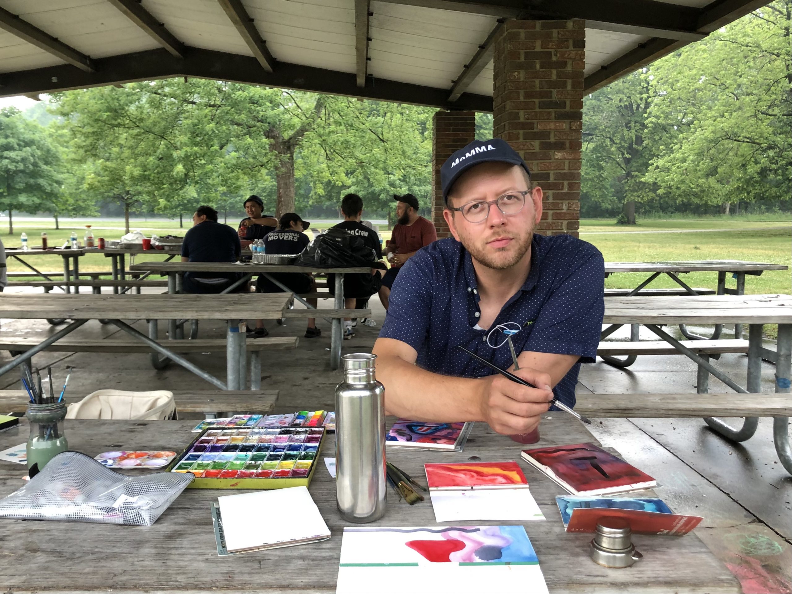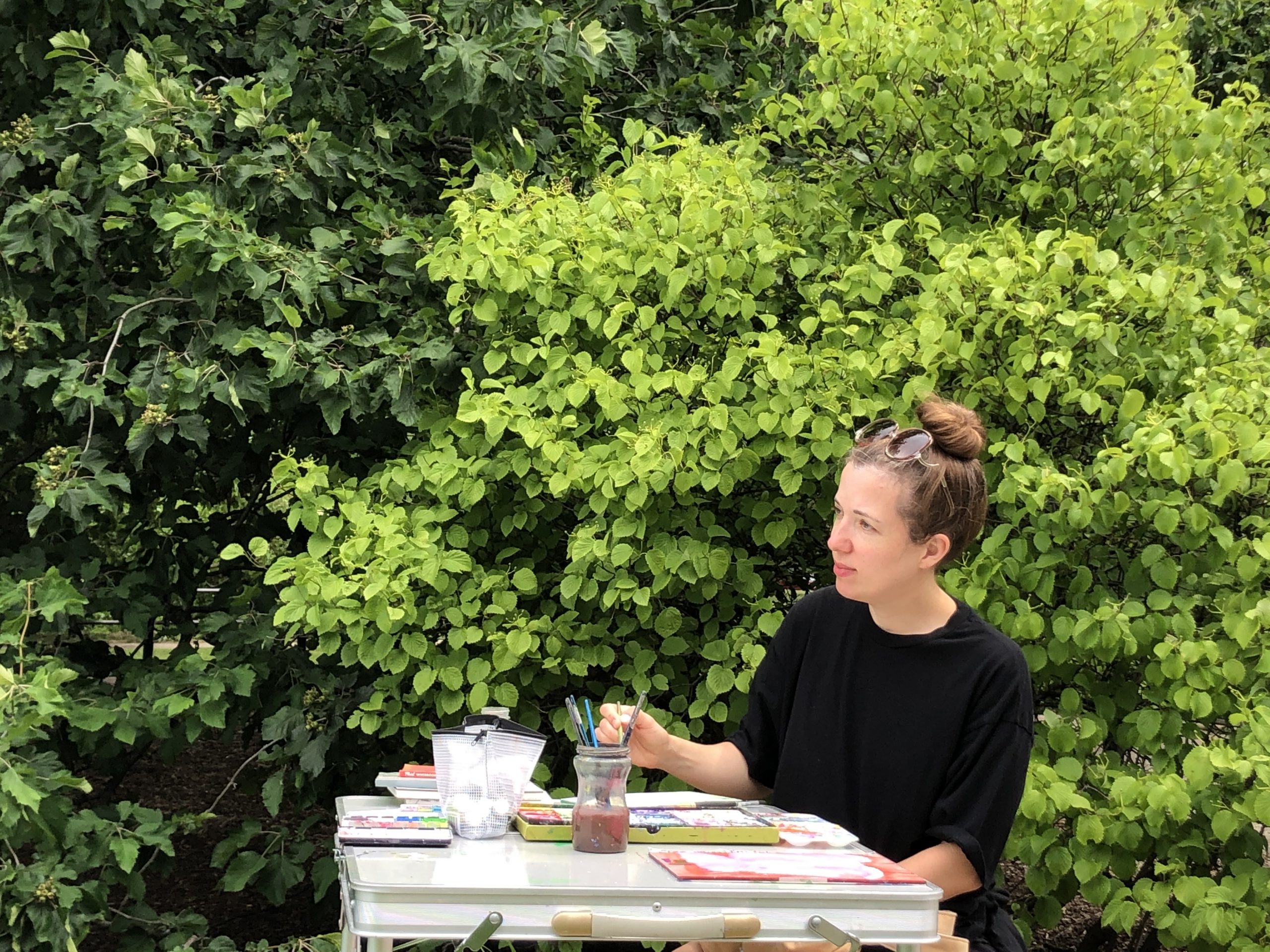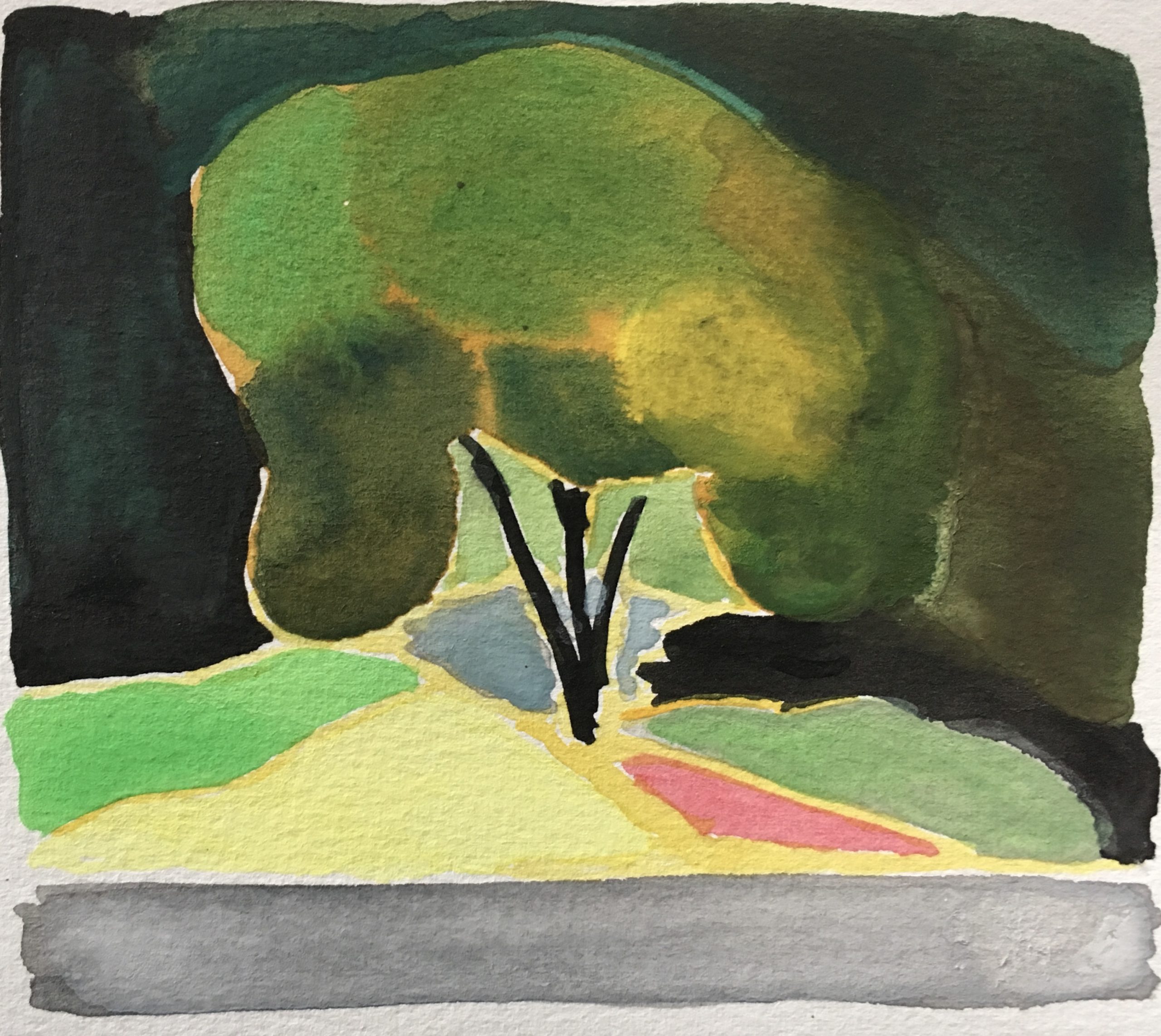 Painting is usually a very solitary activity for me, so to share that with someone else and to talk and laugh was wonderful, especially after living through the long lonely pandemic. To just show up and everything is already ready (paints, paper, brushes, chairs) on a beautiful summer day and spend some time with someone I’ve always liked but never get to see was a gift to me in so many ways.