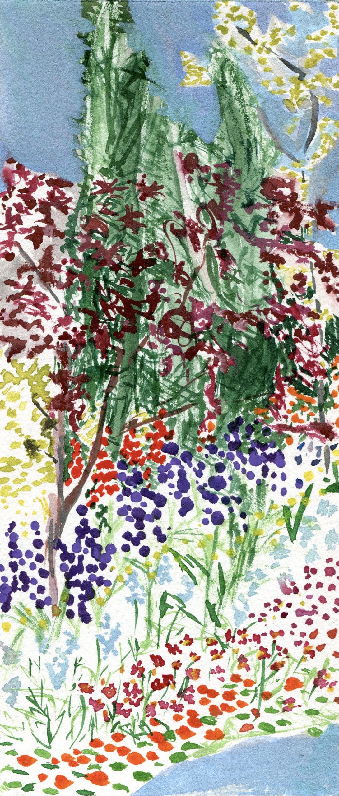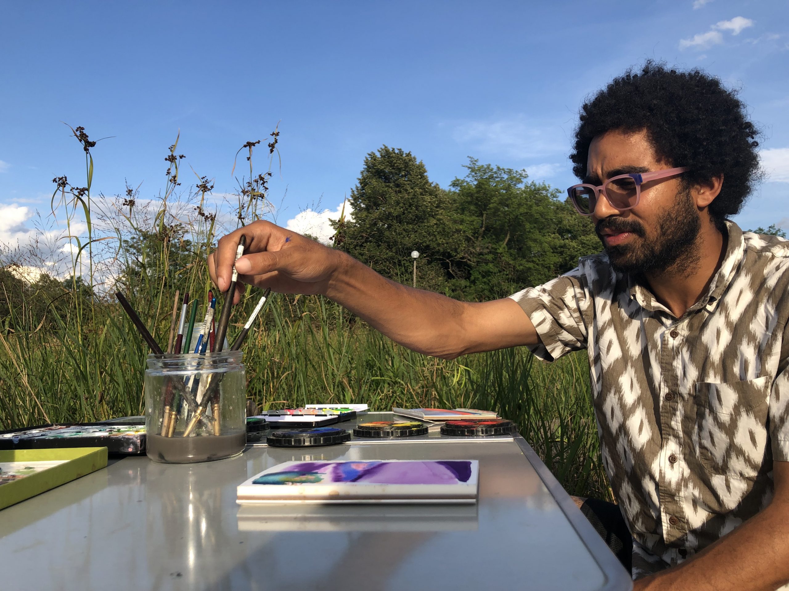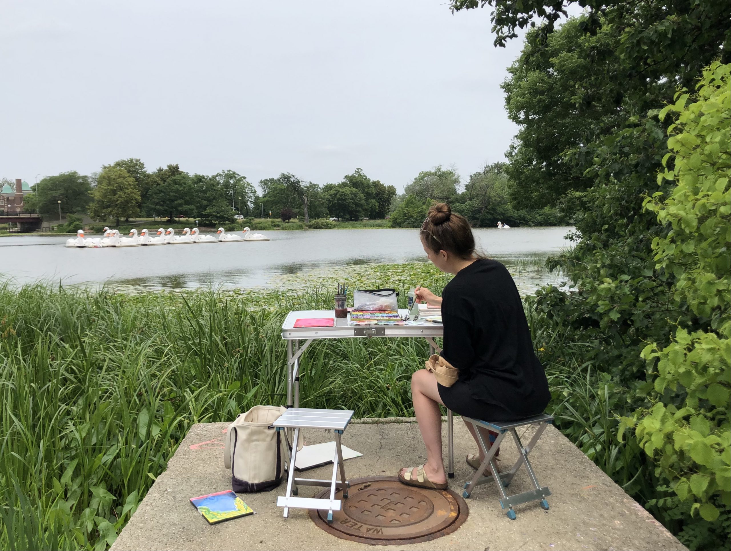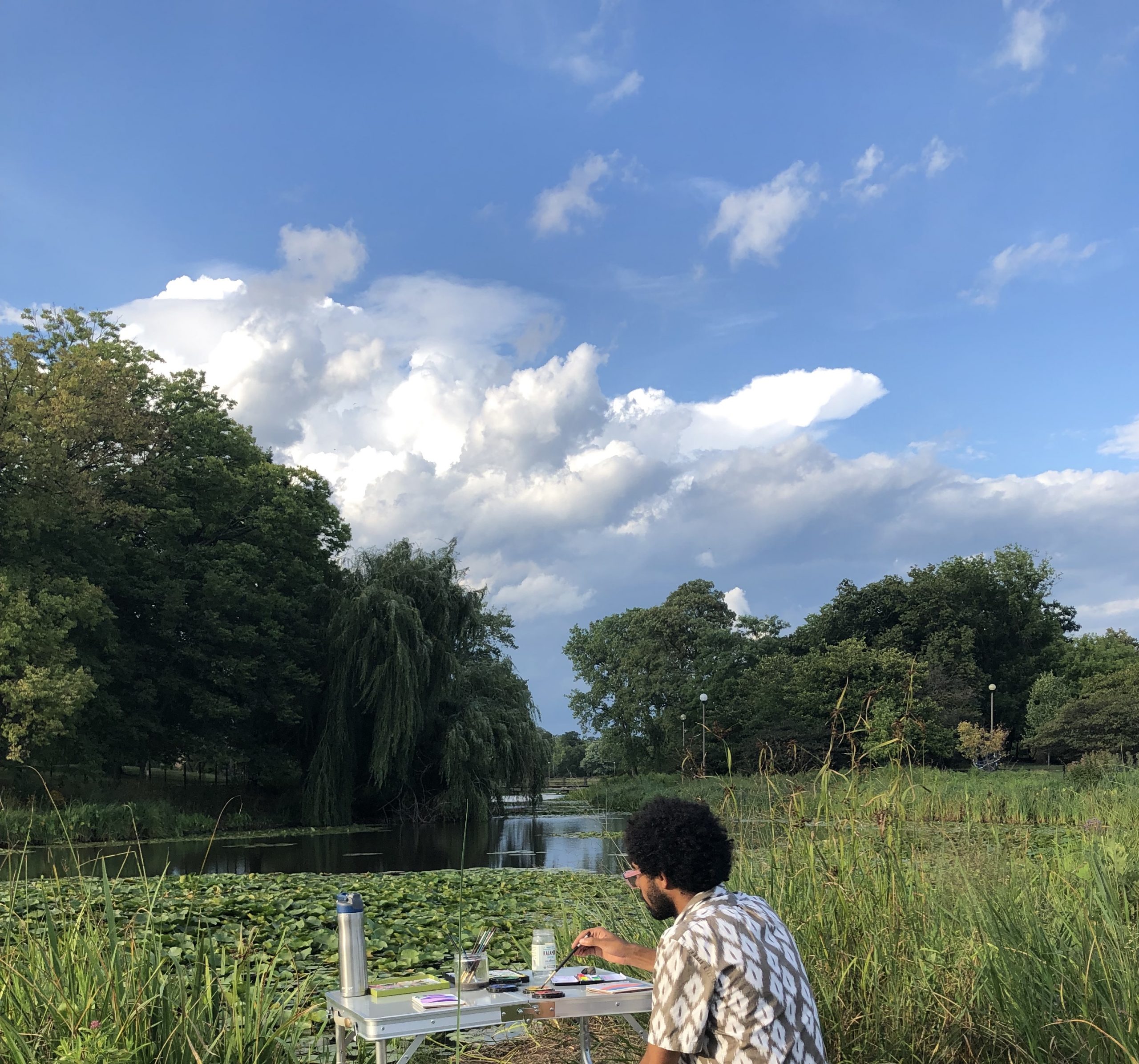Painting is usually a very solitary activity for me, so to share that with someone else and to talk and laugh was wonderful, especially after living through the long lonely pandemic. To just show up and everything is already ready (paints, paper, brushes, chairs) on a beautiful summer day and spend some time with someone I’ve always liked but never get to see was a gift to me in so many ways.