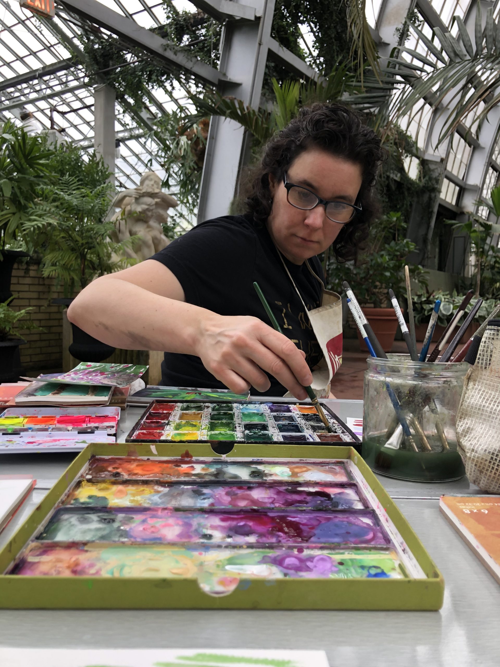 10 thoughts on painting with Leslie on New Year’s Eve at Garfield Park Conservatory, 2019