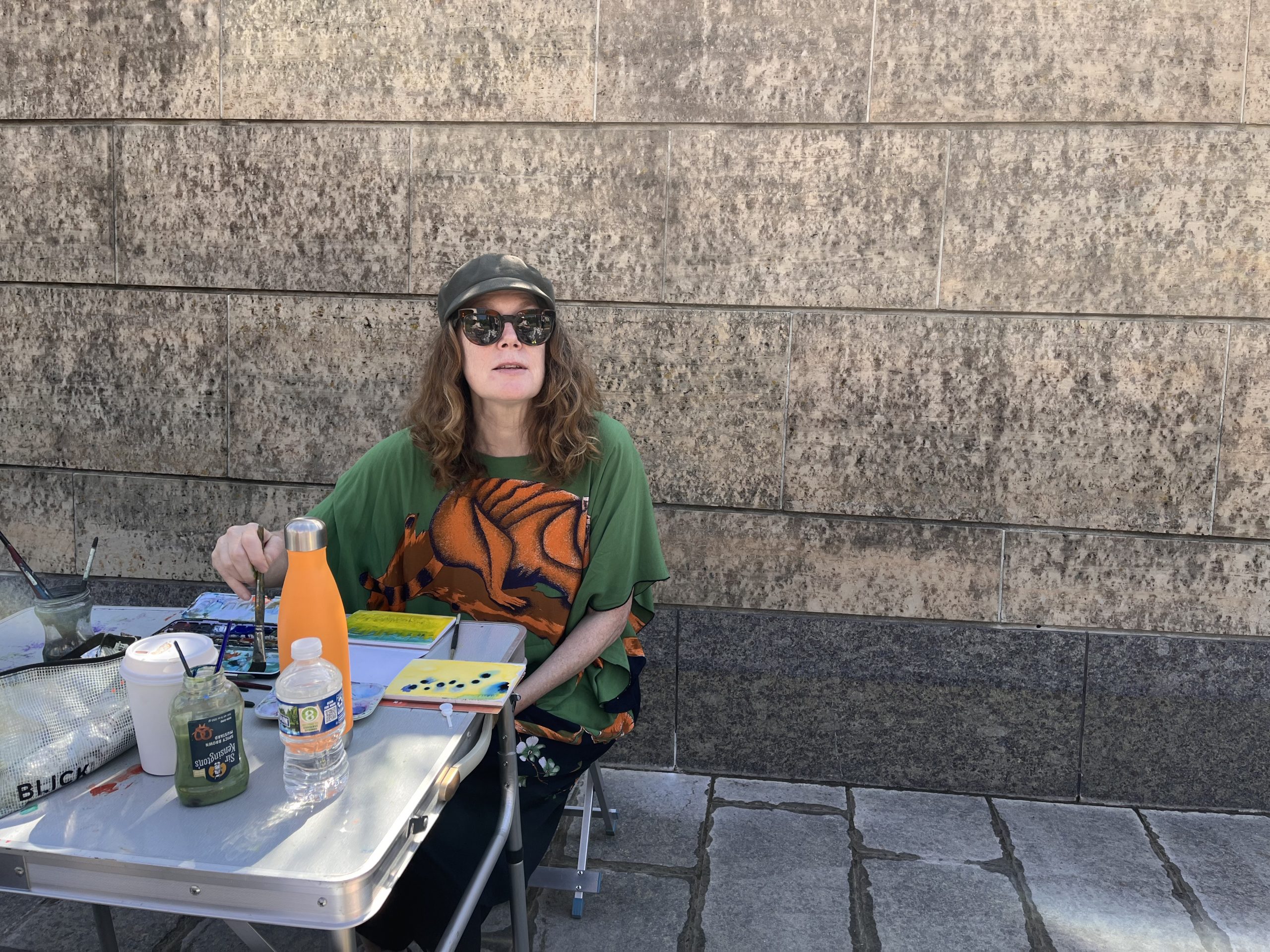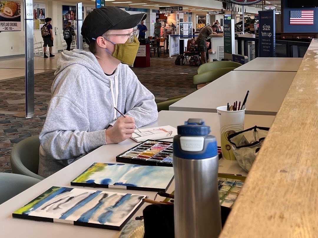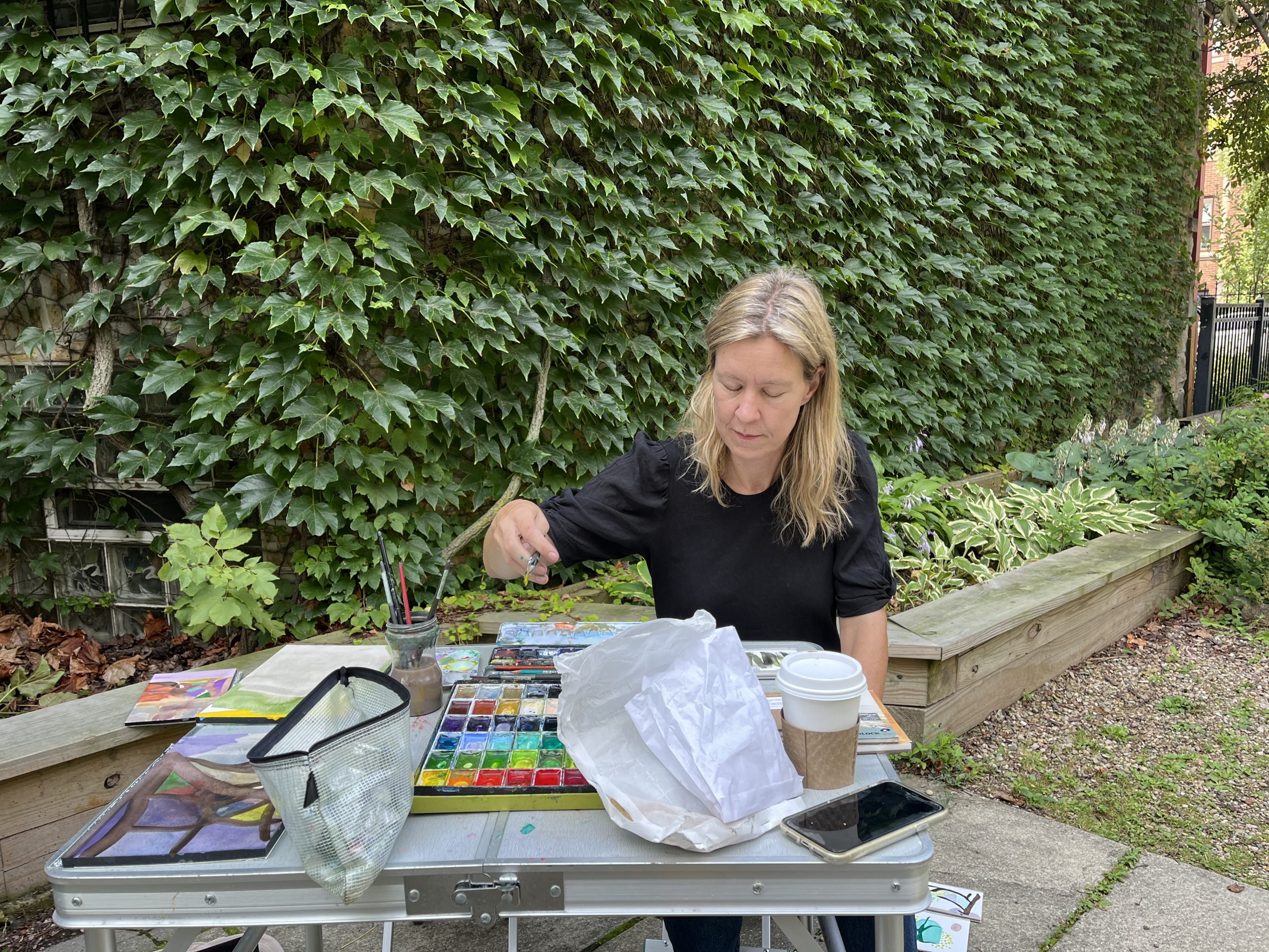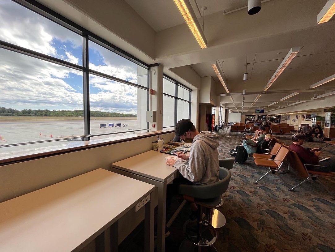 “a conclusion to a two week ceramic residency: painting in the jetport. Sad to say goodbye, but so thankful for the company.”