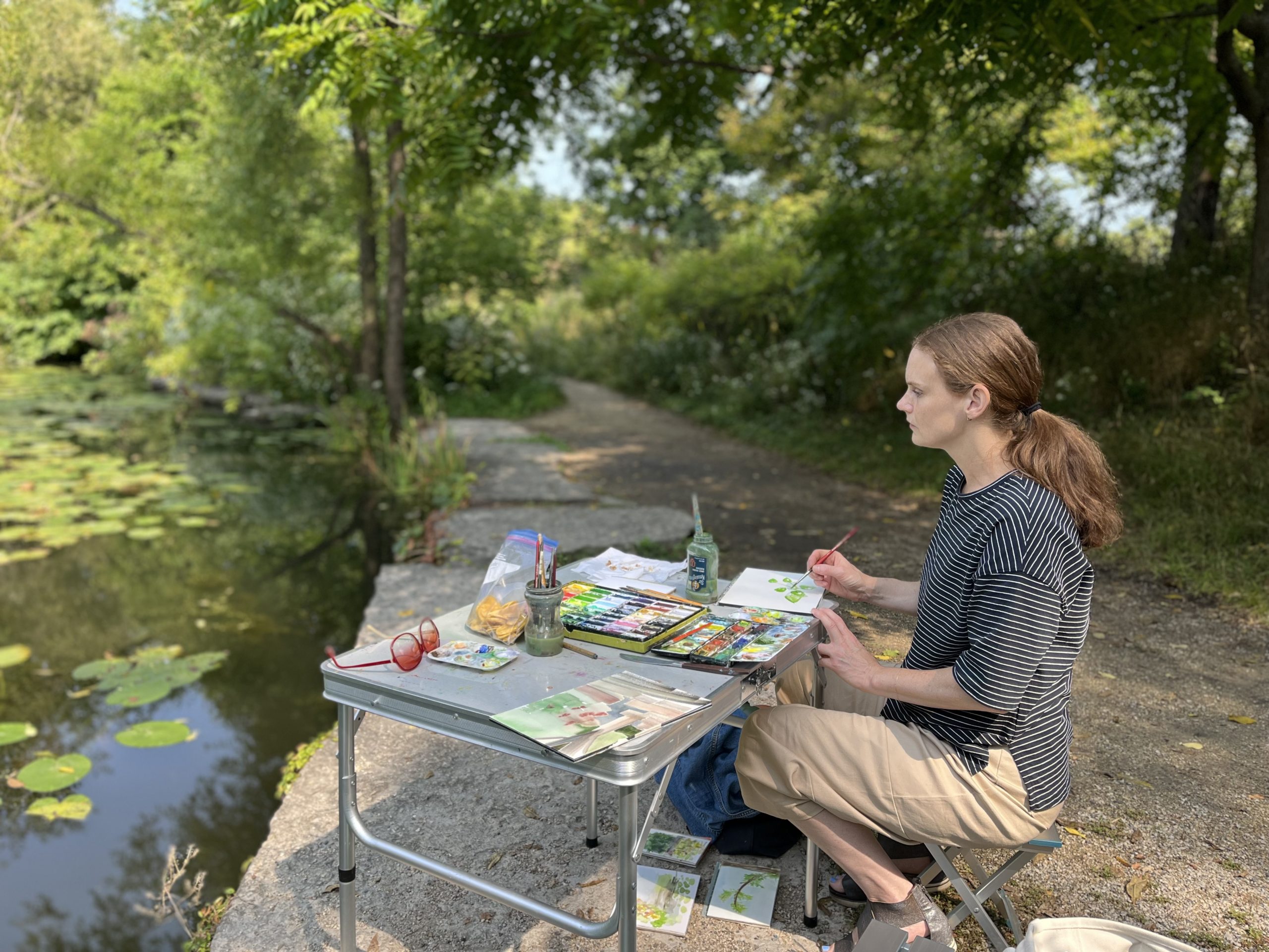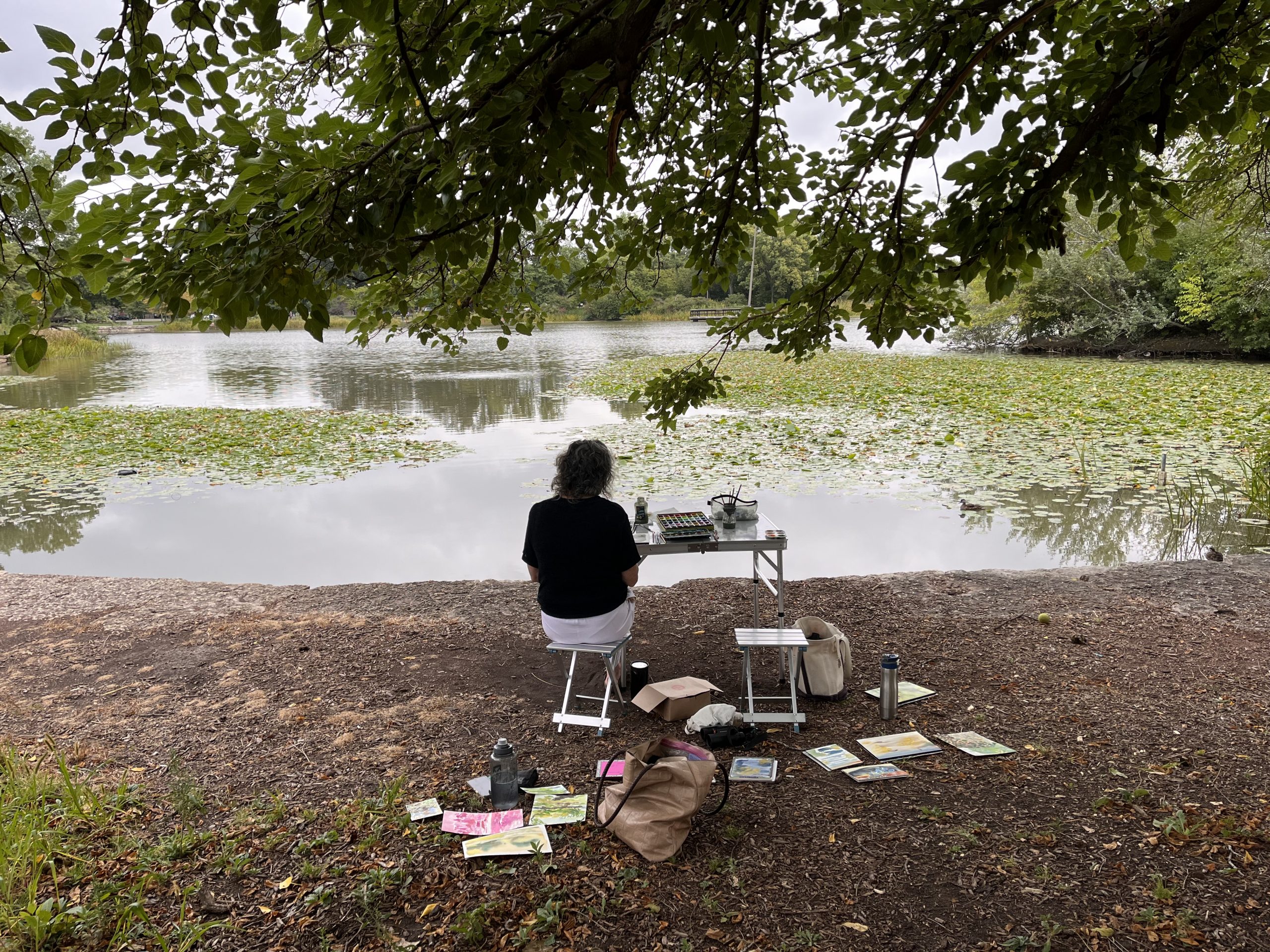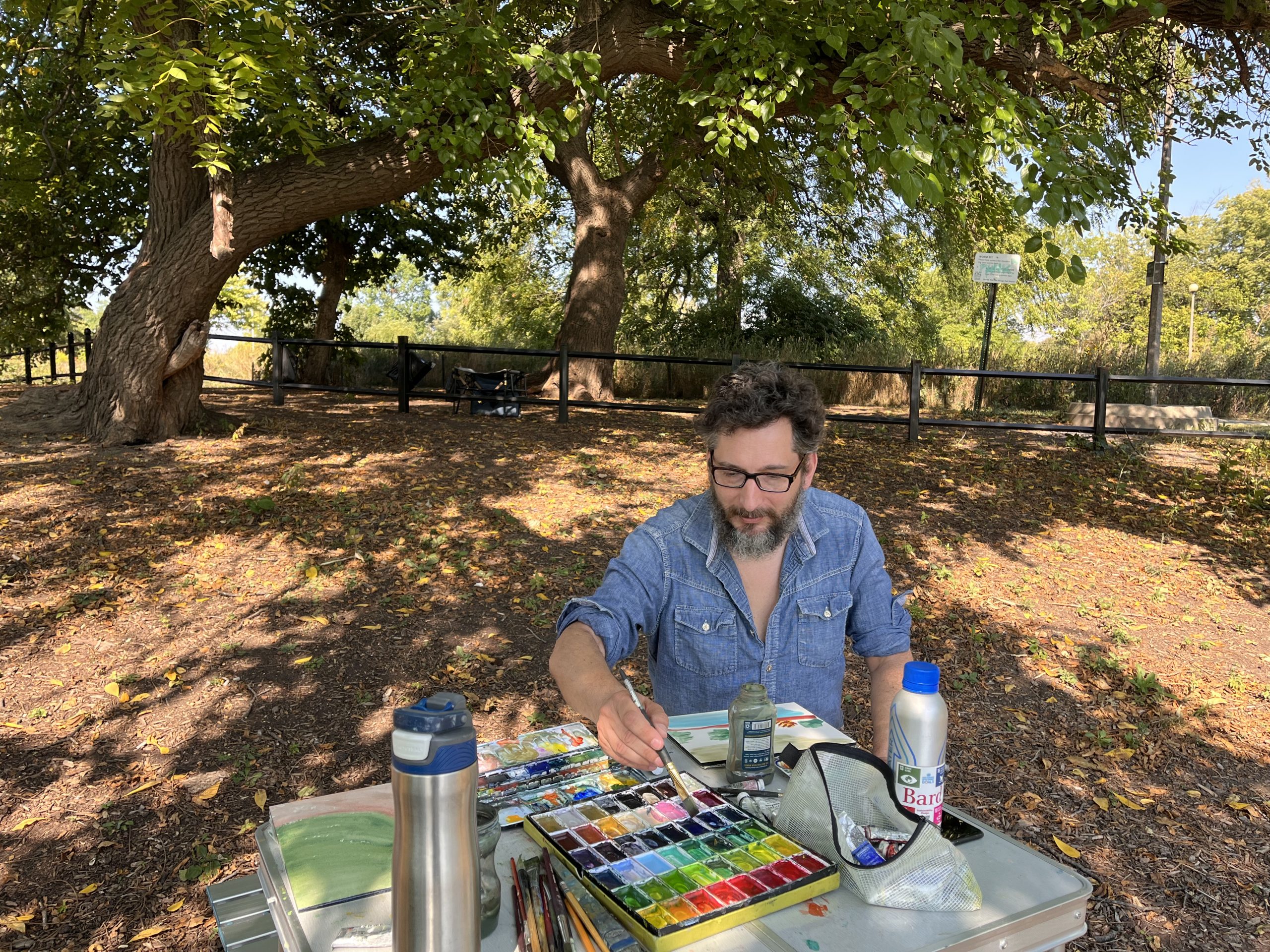 A great morning with watercolor, birds, sunshine and lovely conversation.