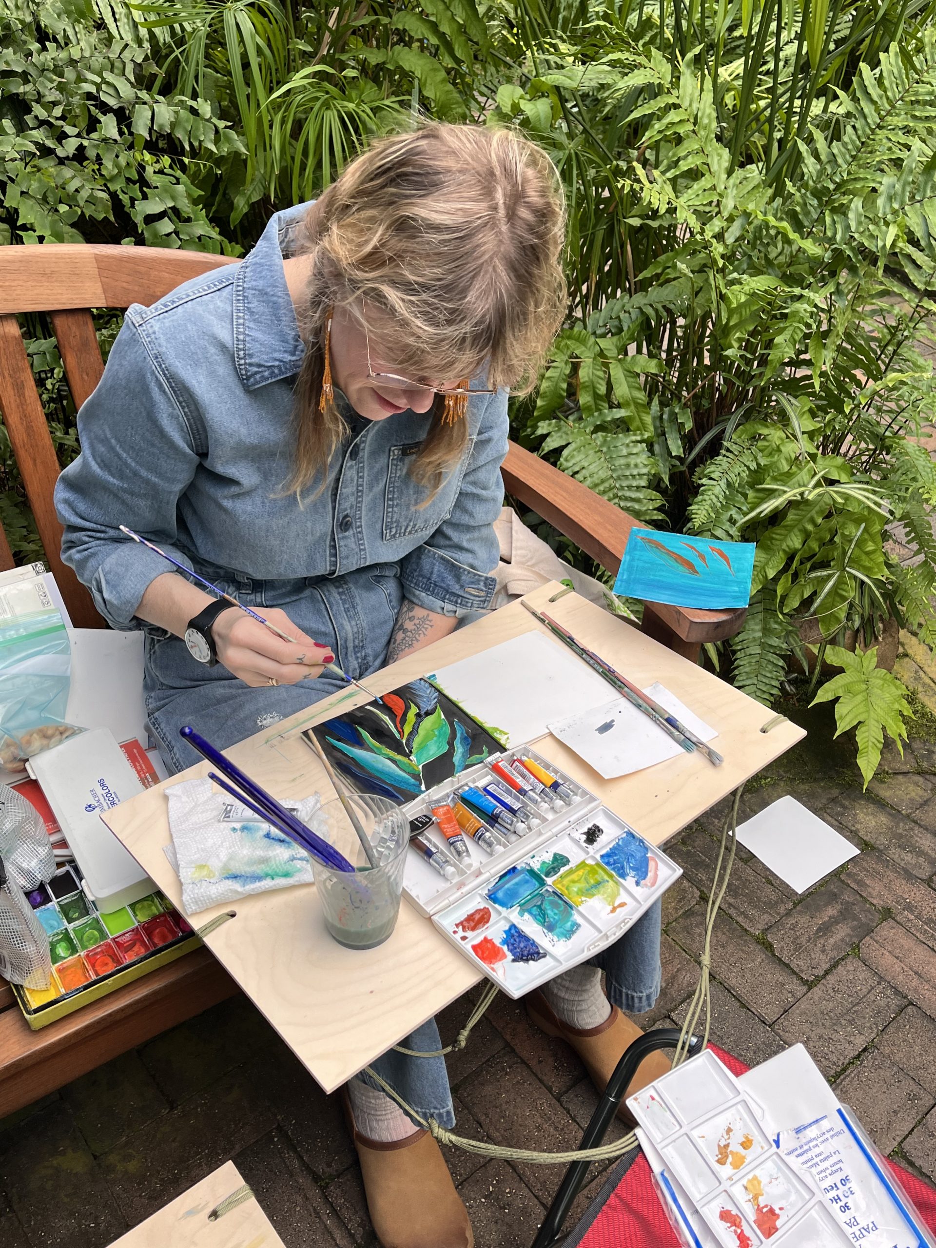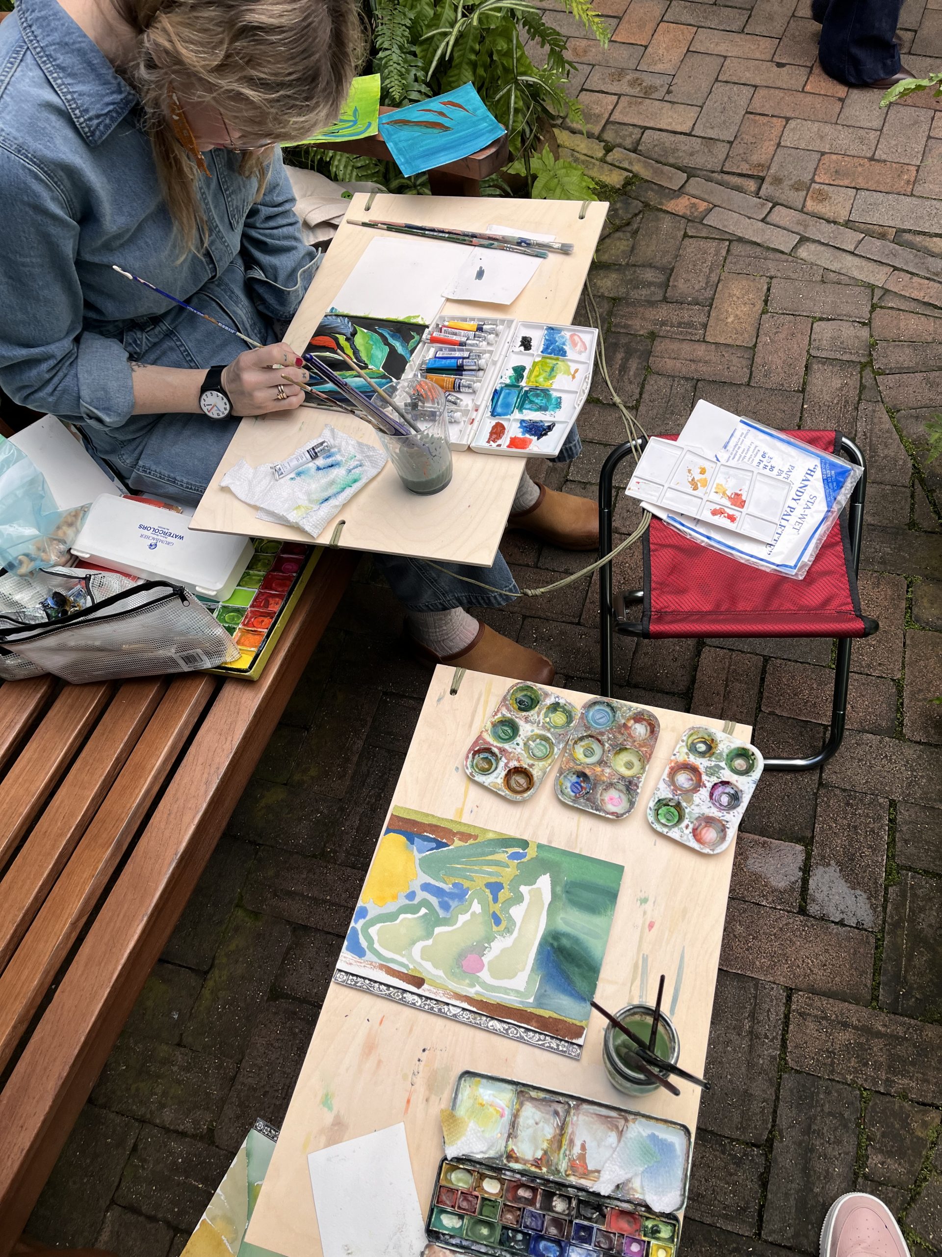 It’s been 2 weeks since painting with Leslie and I’m still feeling the calming effects on my nervous system. Sitting, observing, making color marks on the paper was/is meditative. I want to carry this into my life more widely. I am so inspired by Leslie’s practice and love how it invites intimacy and community. Don’t we all want that in our lives. (?)