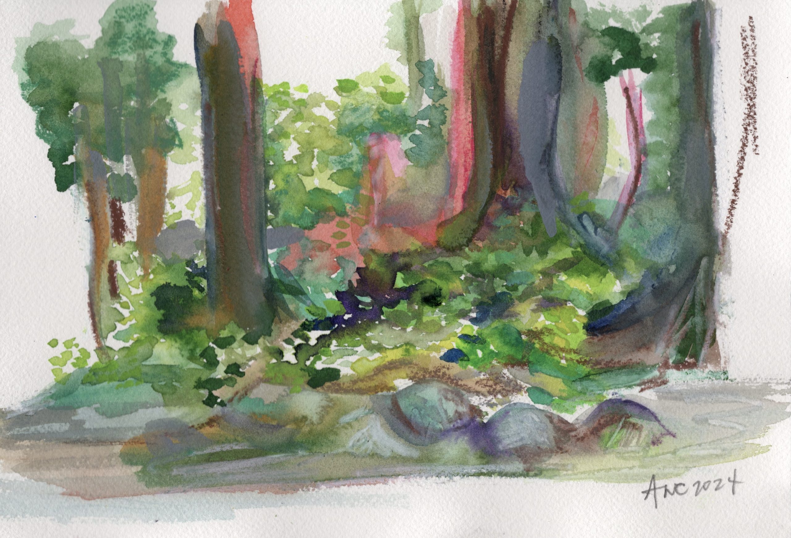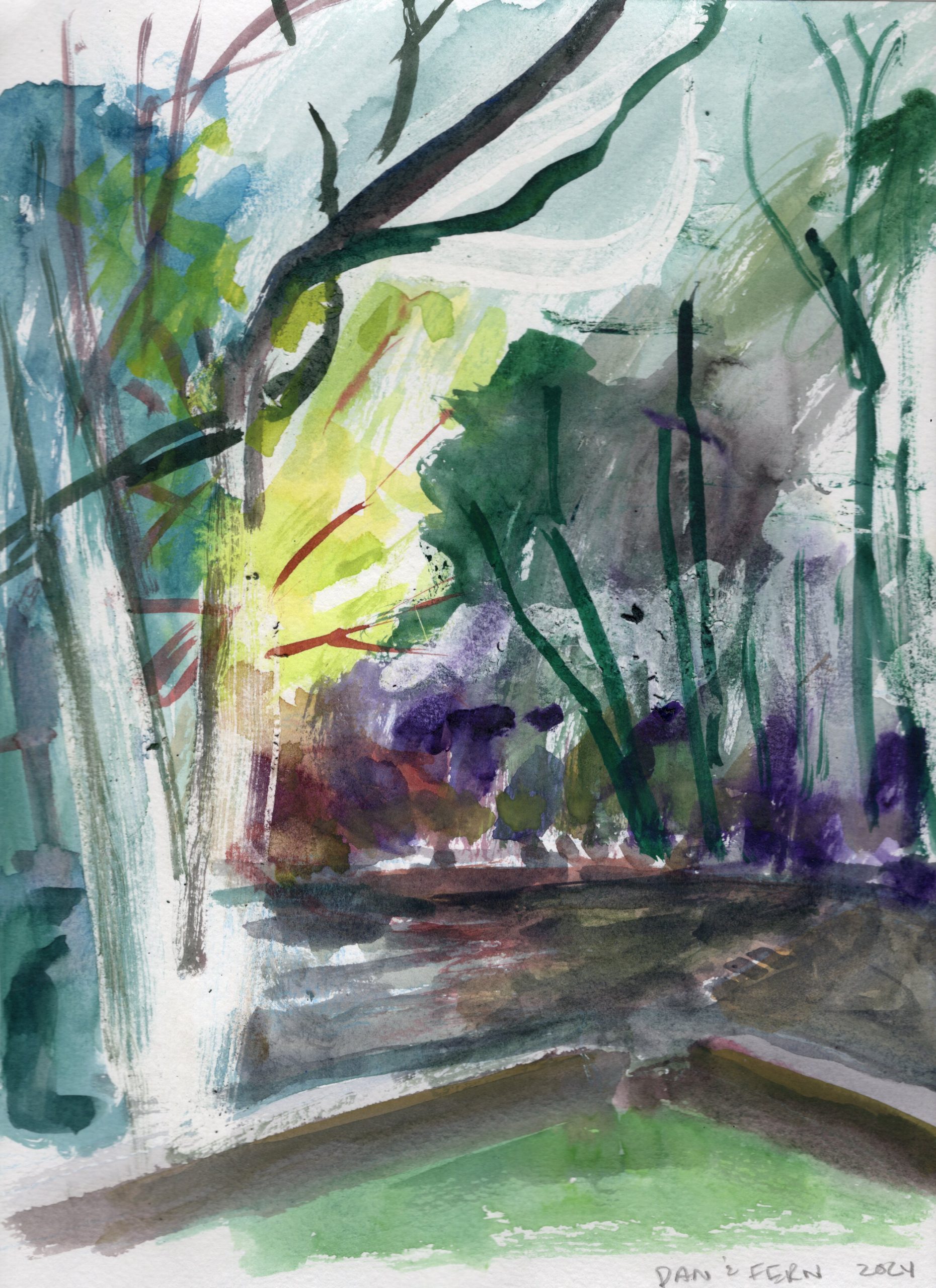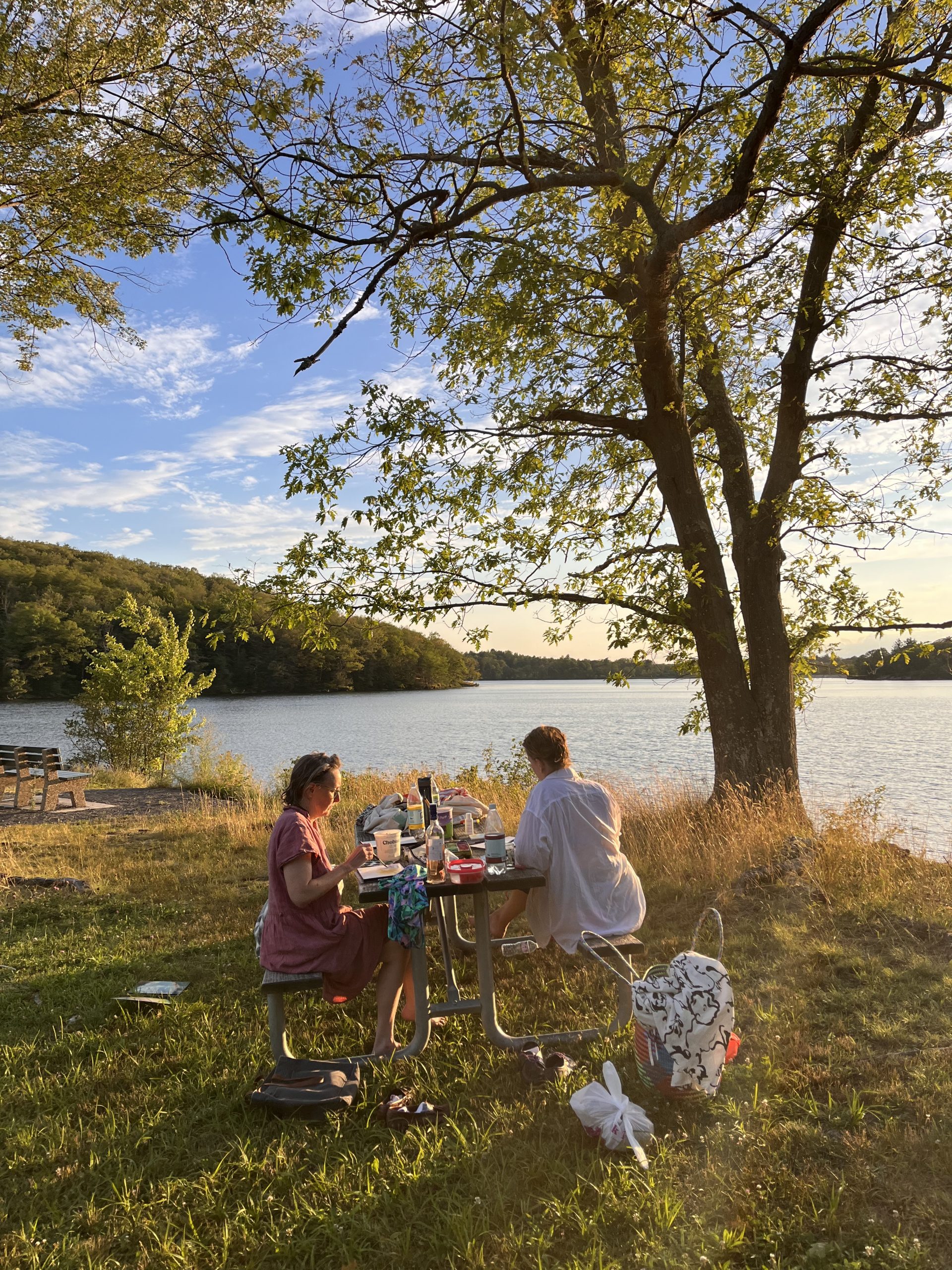 The day Biden ended his campaign and endorsed Harris. Delightful to arrive empty handed (aside from snacks) and be so well taken care of. The yellow green shape sliding down the lawn. An ant on my paintbrush. The breeze, worthy of being bottled and sold. A gray that was in fact silver.