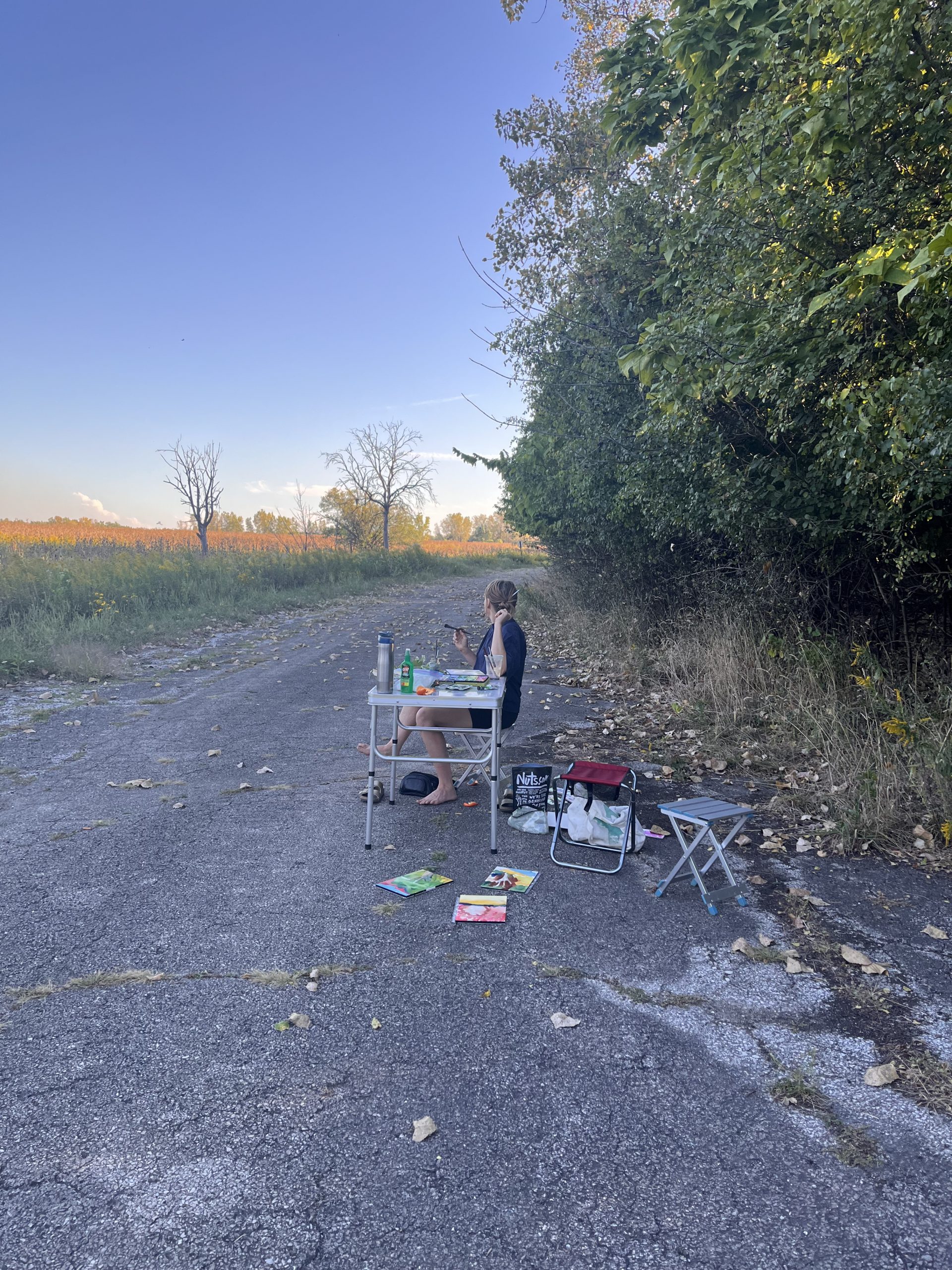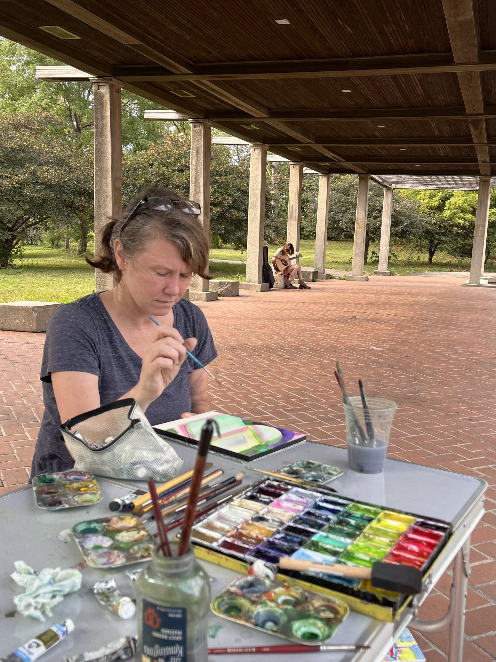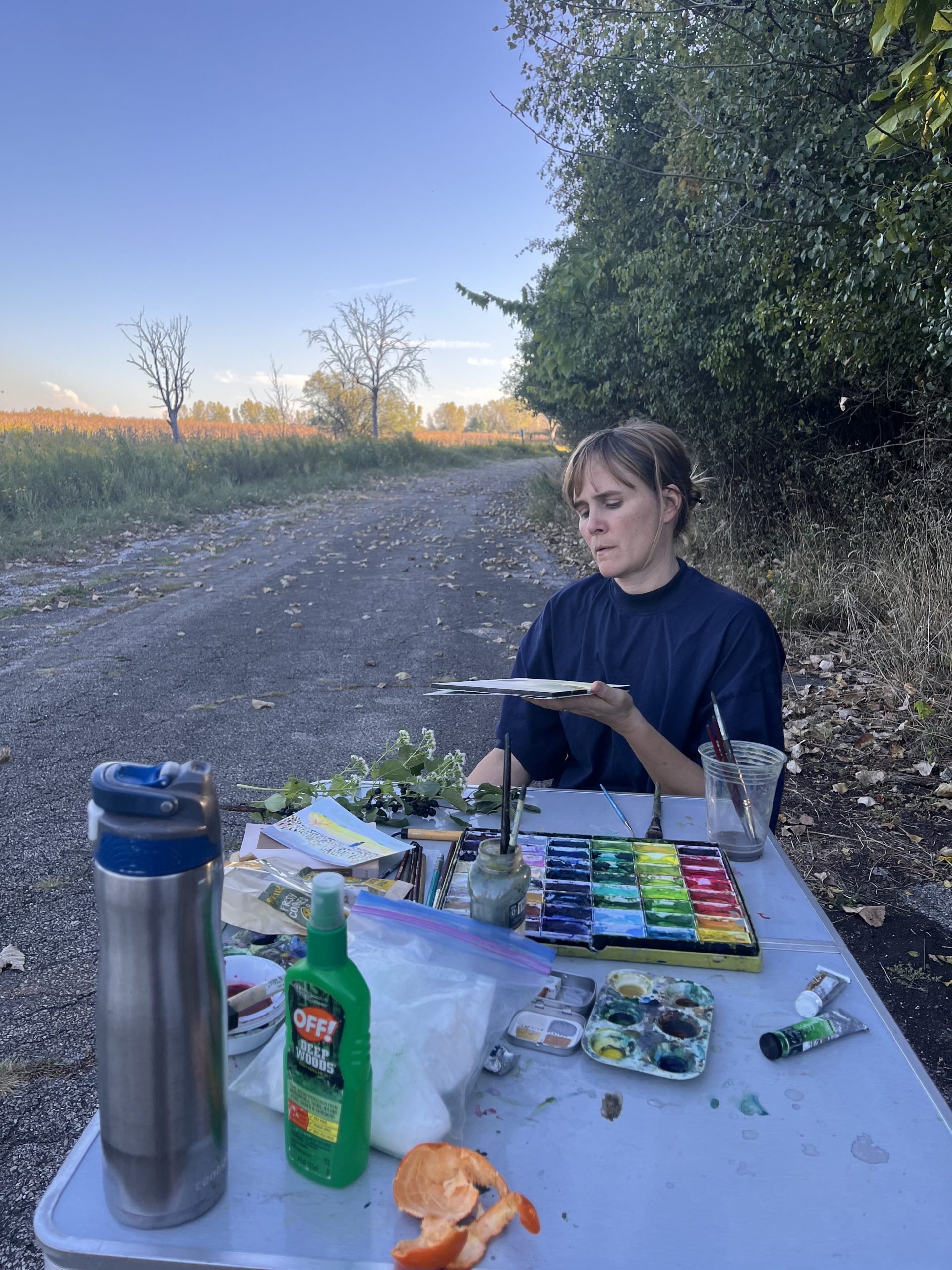 This is my second time painting with you, the first being in Italy of course. Because it took what seemed like years of almost making the date – and it took going to Italy to achieve the date – today was almost like the Chicago date we should have always had. The biggest difference is our friendship has grown significantly and beautifully since our first painting date in Italy such that today felt natural in the way that painting and talking and painting and talking with a dear, longtime friend feels. Because that is what it was! I am grateful for you Leslie, as a friend and as an artist.