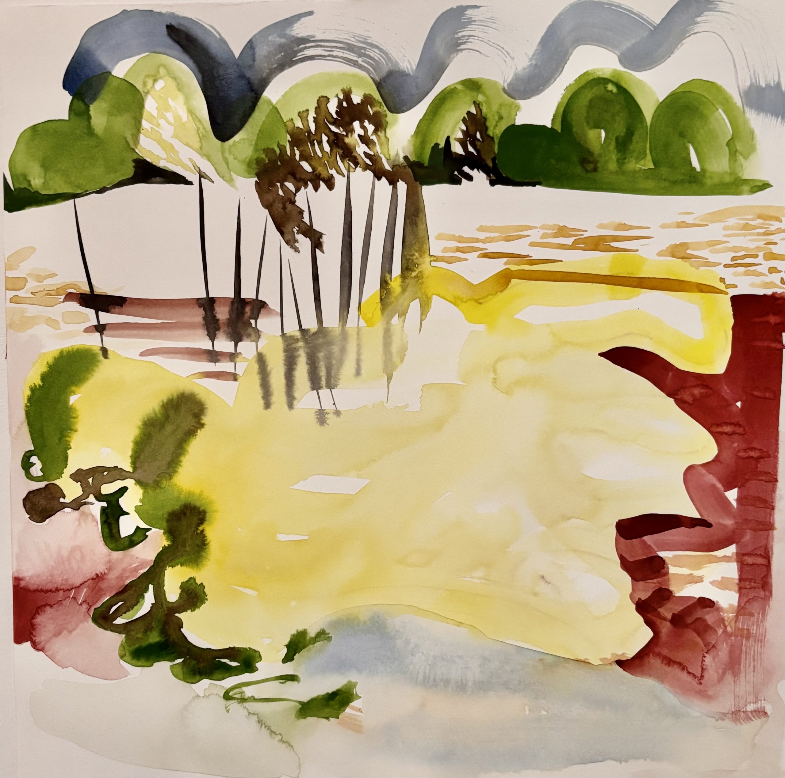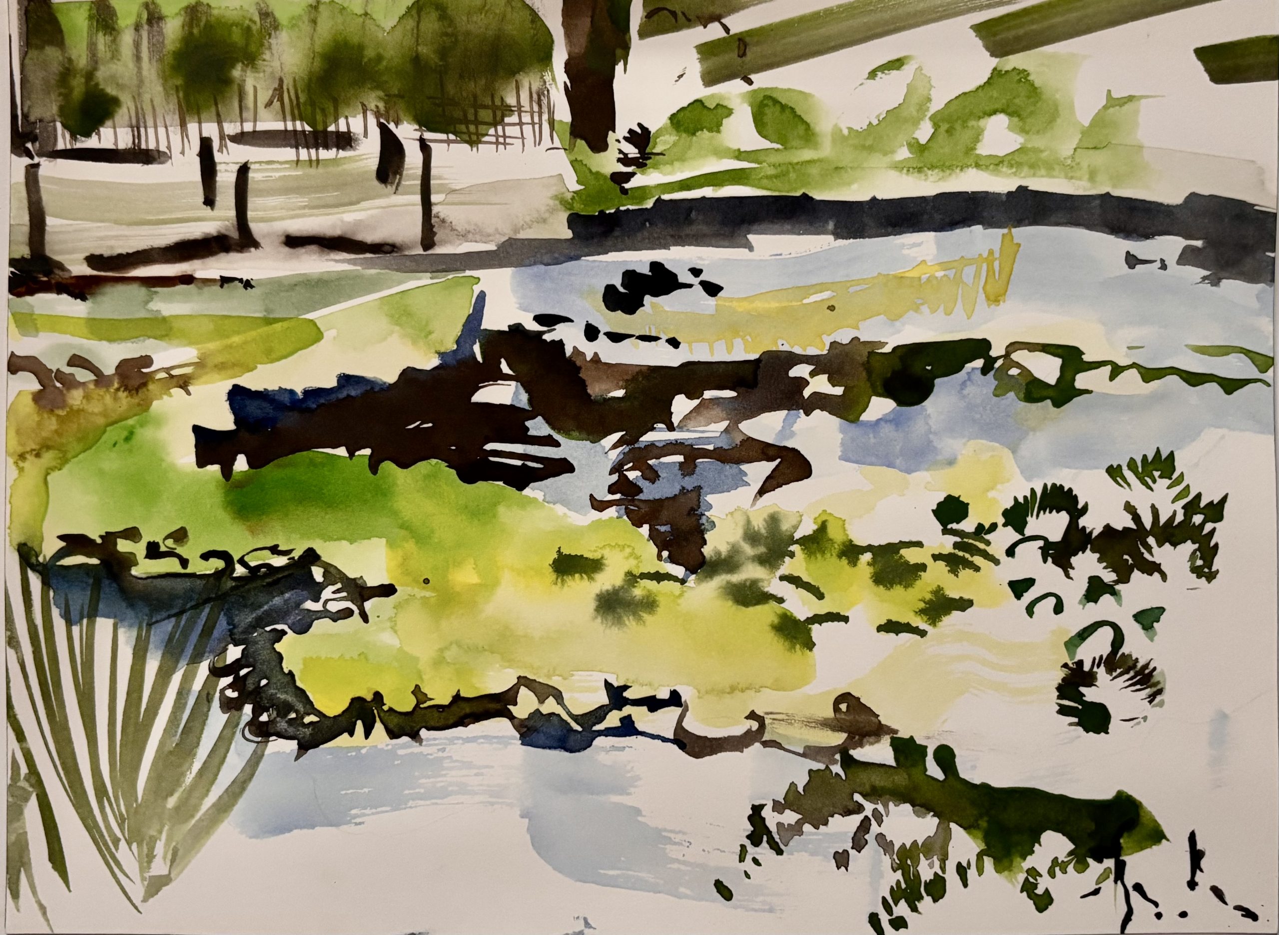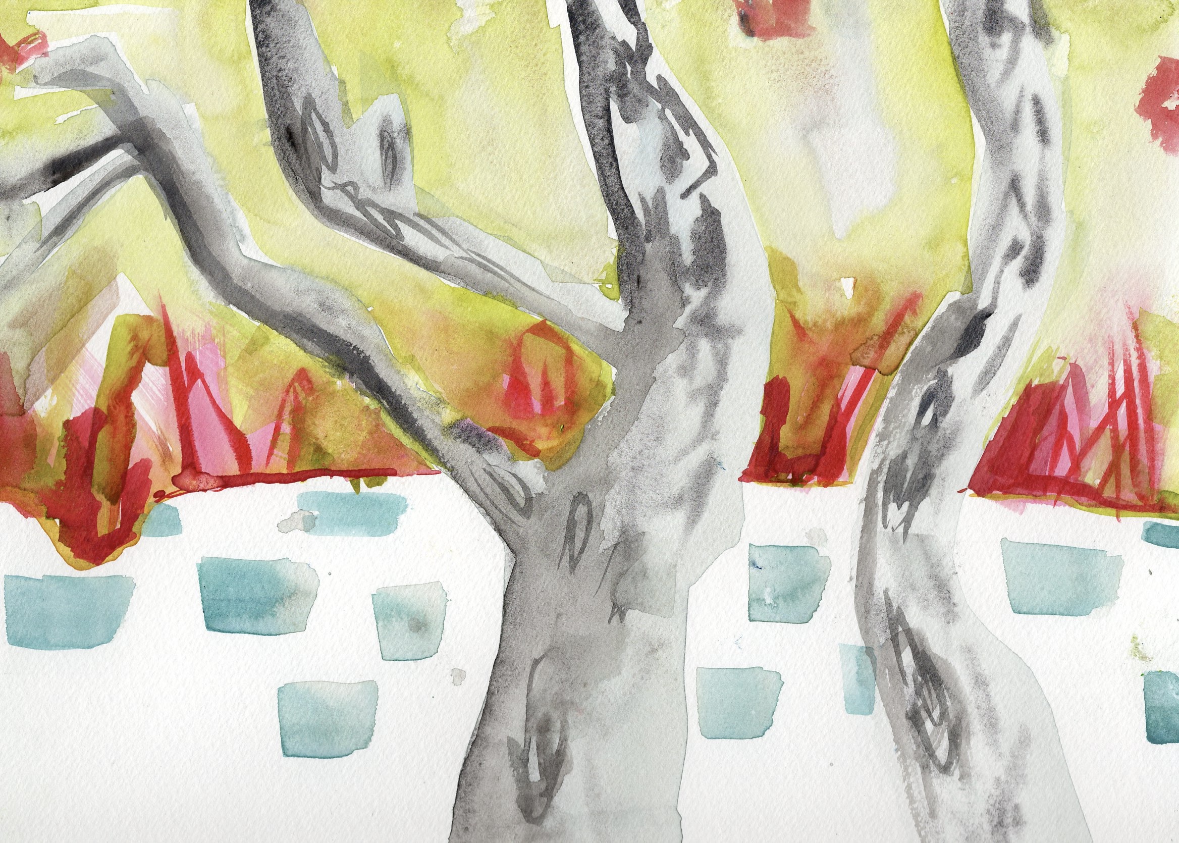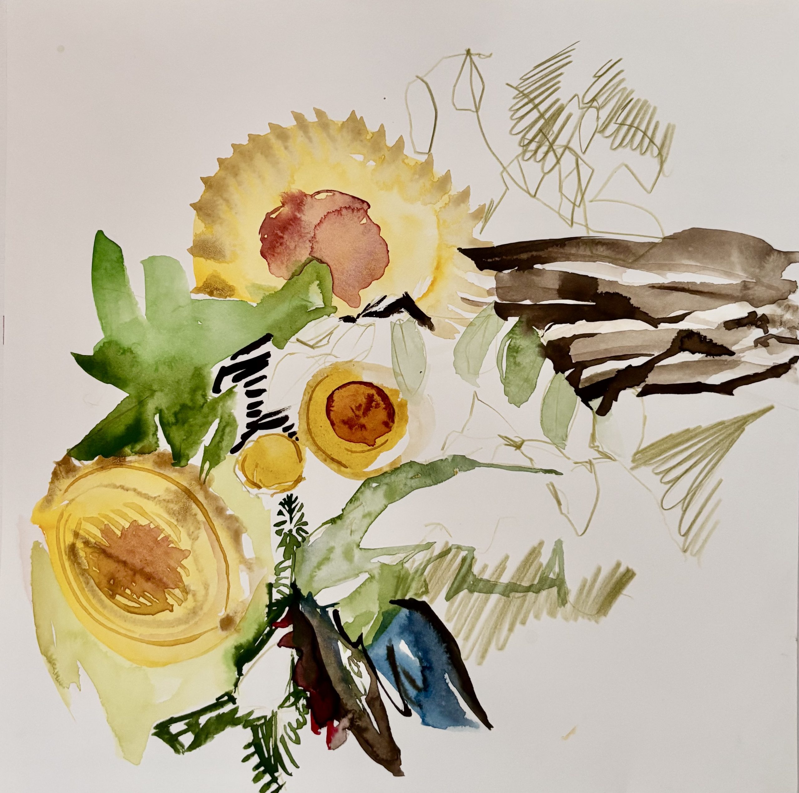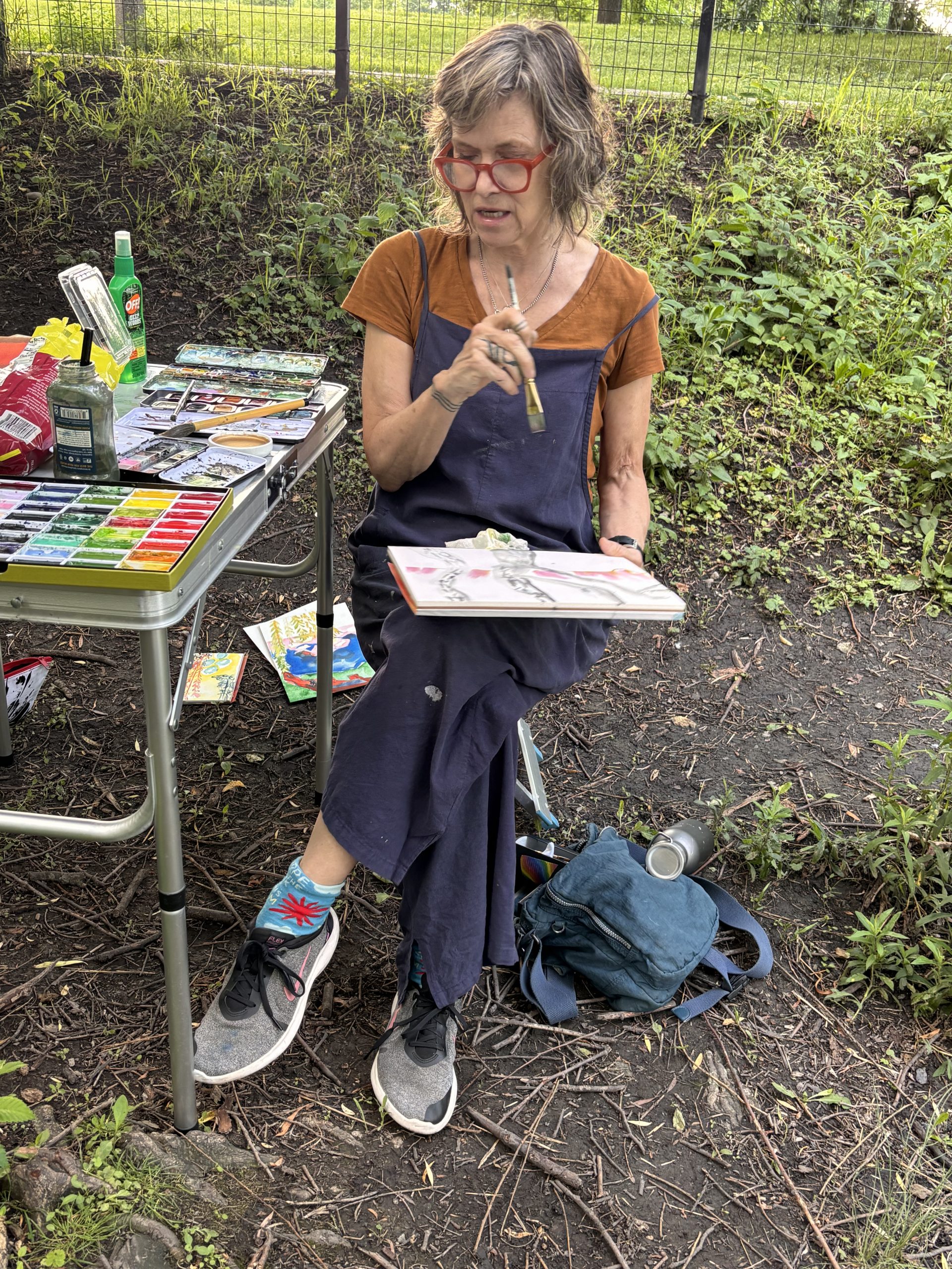 Painting outside was the break I needed to take. With the chaos it implies adapting to a new family member, sometimes we forget to make time to do what we love and what brings us joy. This painting session was a way of forcing myself to pause, observe, create and enjoy. Even while I was painting with my 3yo in arms, I was able to disconnect from parenting mode (at least for a couple of minutes) and connect with nature and art. Thank you, Leslie for this lovely time and for reminding me that I can make time to create and paint even with my kids. 🌸