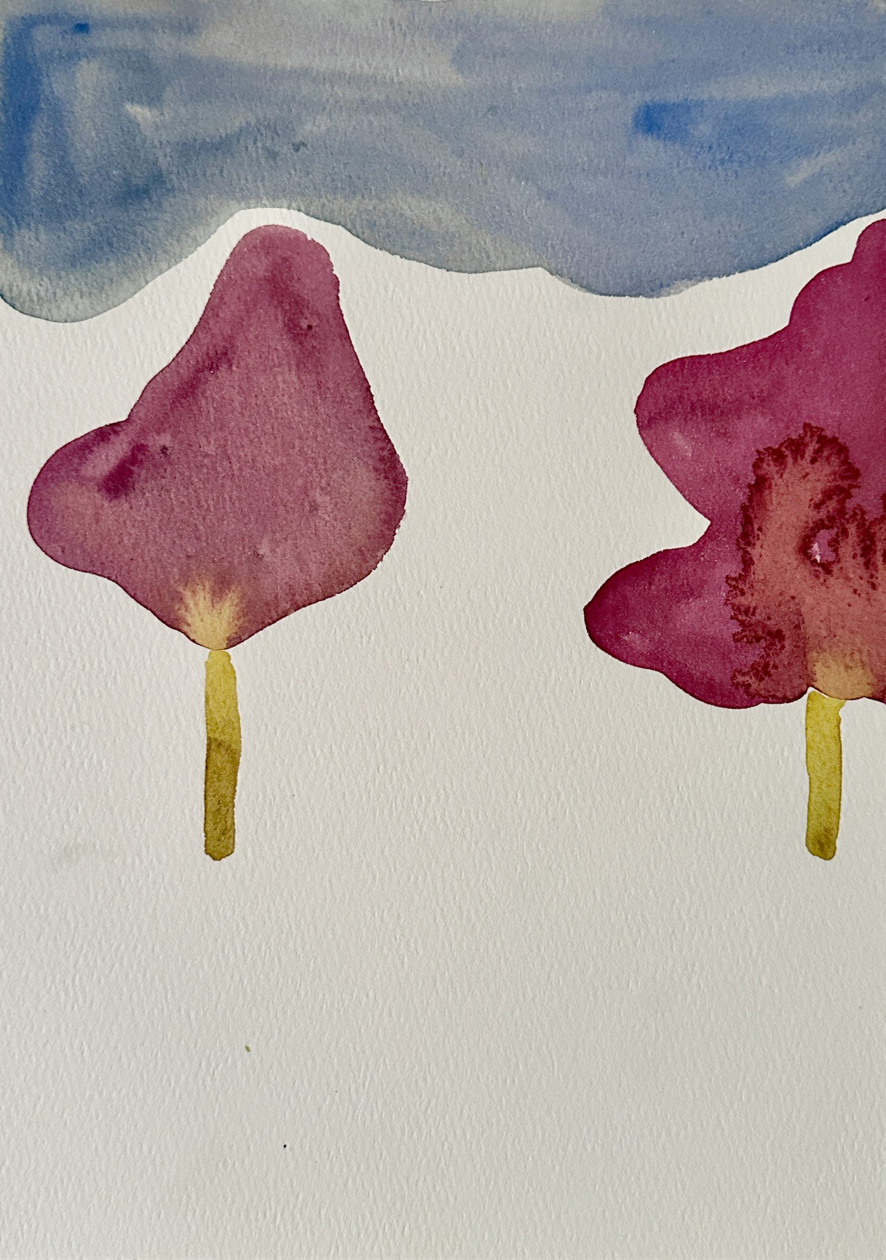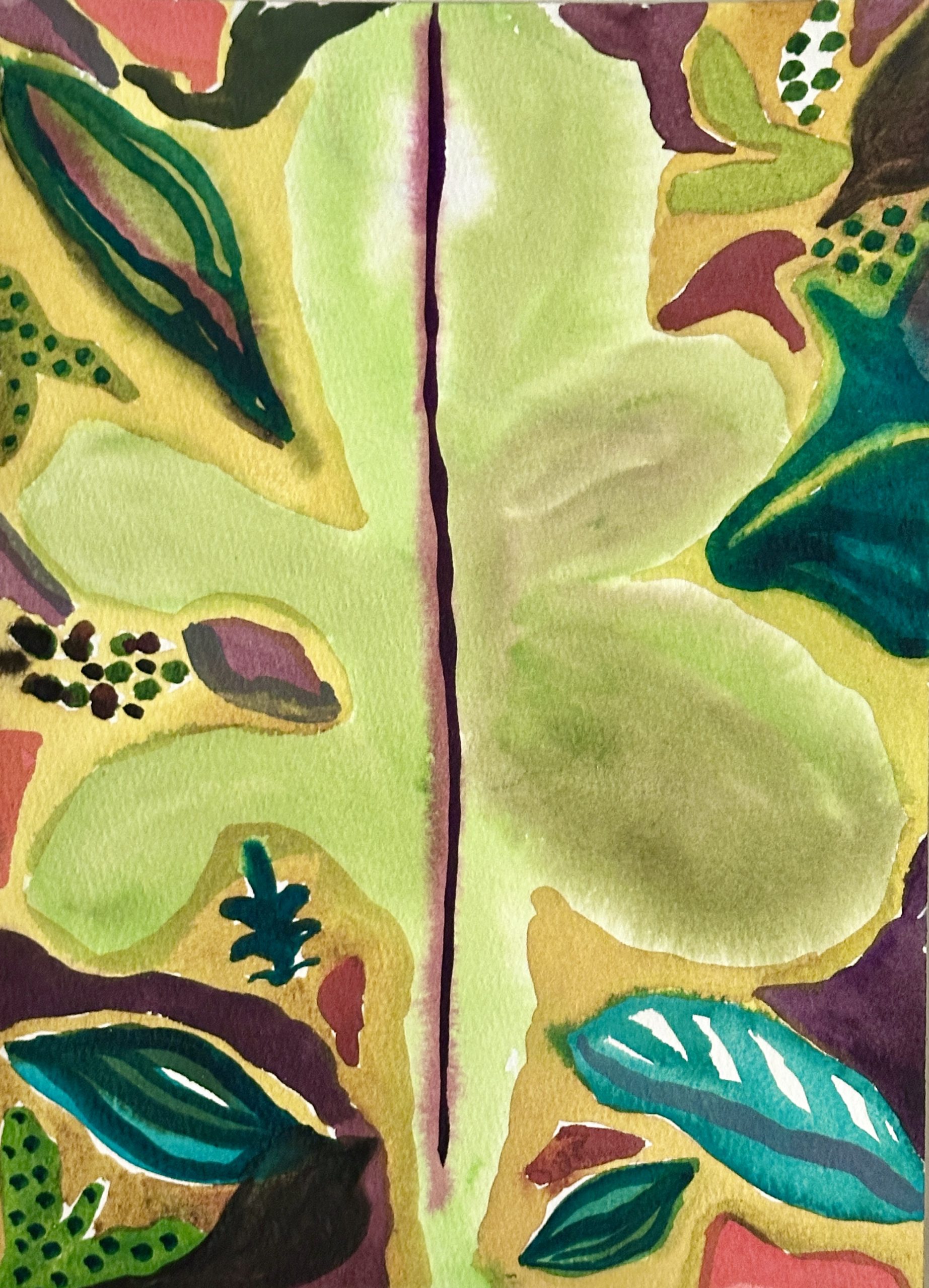 Painting outside was the break I needed to take. With the chaos it implies adapting to a new family member, sometimes we forget to make time to do what we love and what brings us joy. This painting session was a way of forcing myself to pause, observe, create and enjoy. Even while I was painting with my 3yo in arms, I was able to disconnect from parenting mode (at least for a couple of minutes) and connect with nature and art. Thank you, Leslie for this lovely time and for reminding me that I can make time to create and paint even with my kids. đŸŒ¸