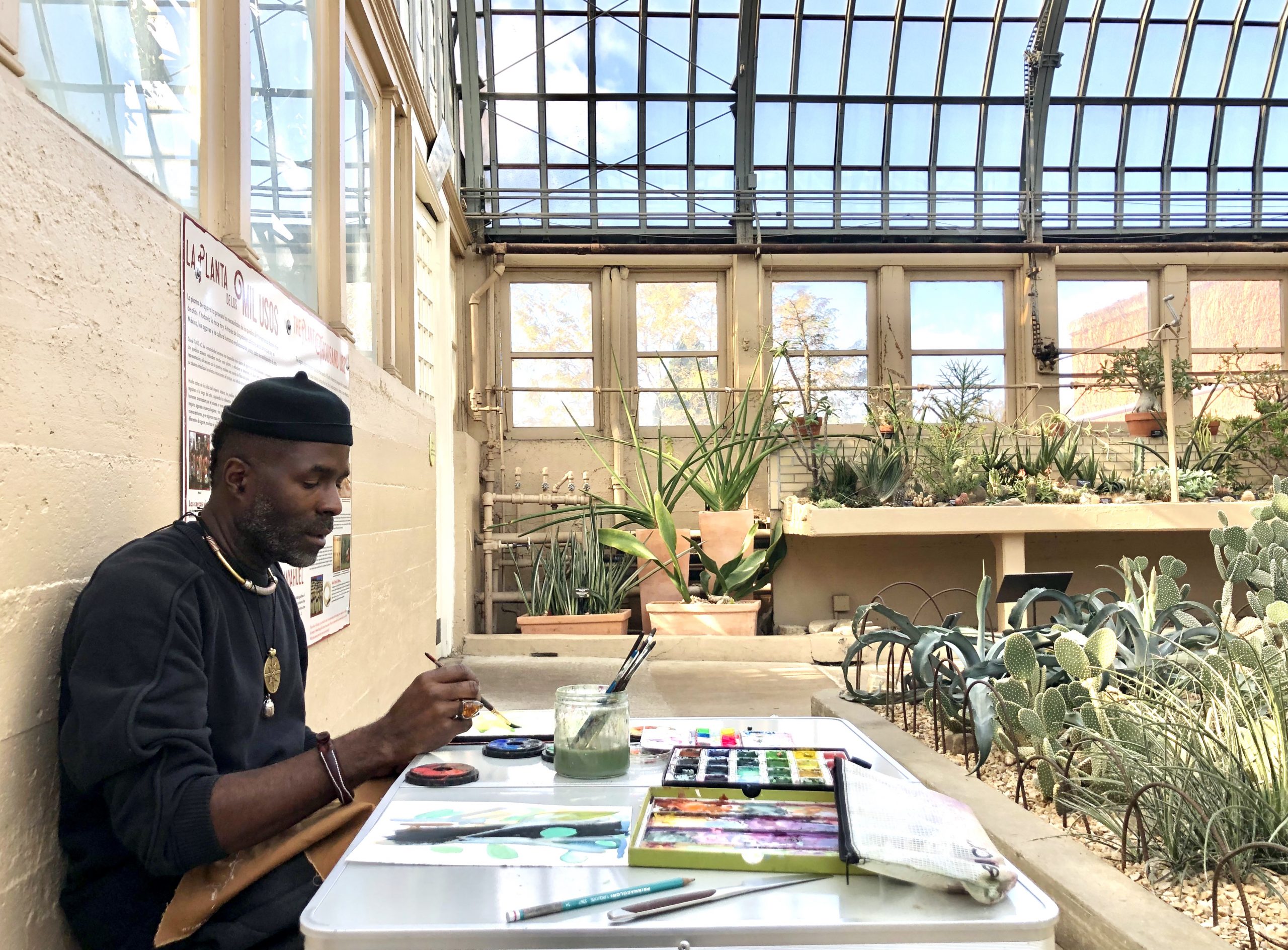 I remember seeing a curious little mouse in the cactus room of the Garfield Park conservatory while we chatted and painted. Not sure if you saw it too. I wonder what kind of life it is to be a little mouse in such a magical place.