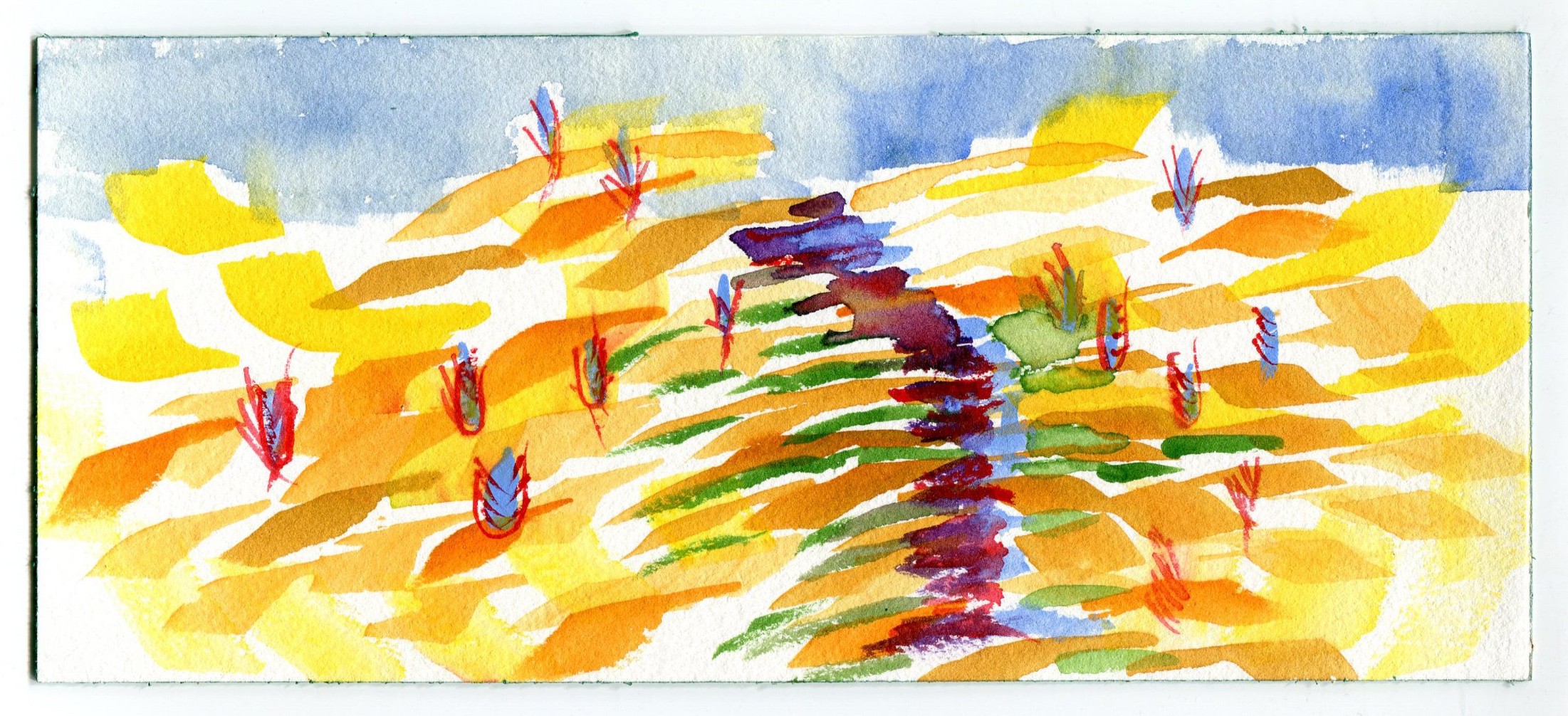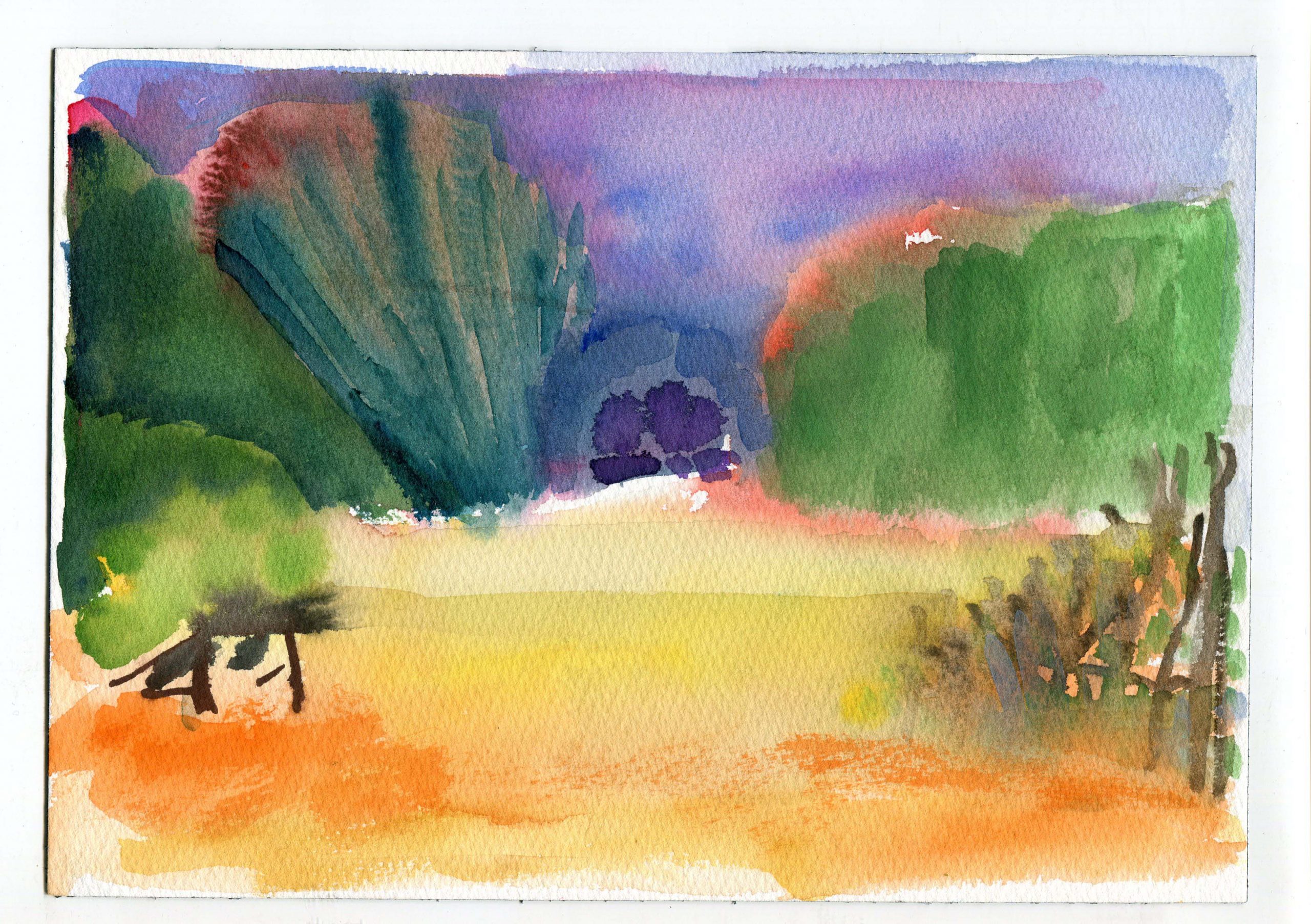 create in color -Zora ELIOT_ I do wish to revisit our watercolor moment at Annie’s. I’ve thought a lot about the slowing of time at Annie’s place with the watercolors. It was an eyeopener to realize that maybe what I need so desperately right now in this pandemic is to stop and look, use paint as a meditation I have since done some watercolor here on our property and I want to continue when I find the time, not as a medium to master but as a way to enjoy a moment, a way to contemplate, a way to experiment with seeing. It doesn’t require too much like doing a sketch of a design with premeditation.