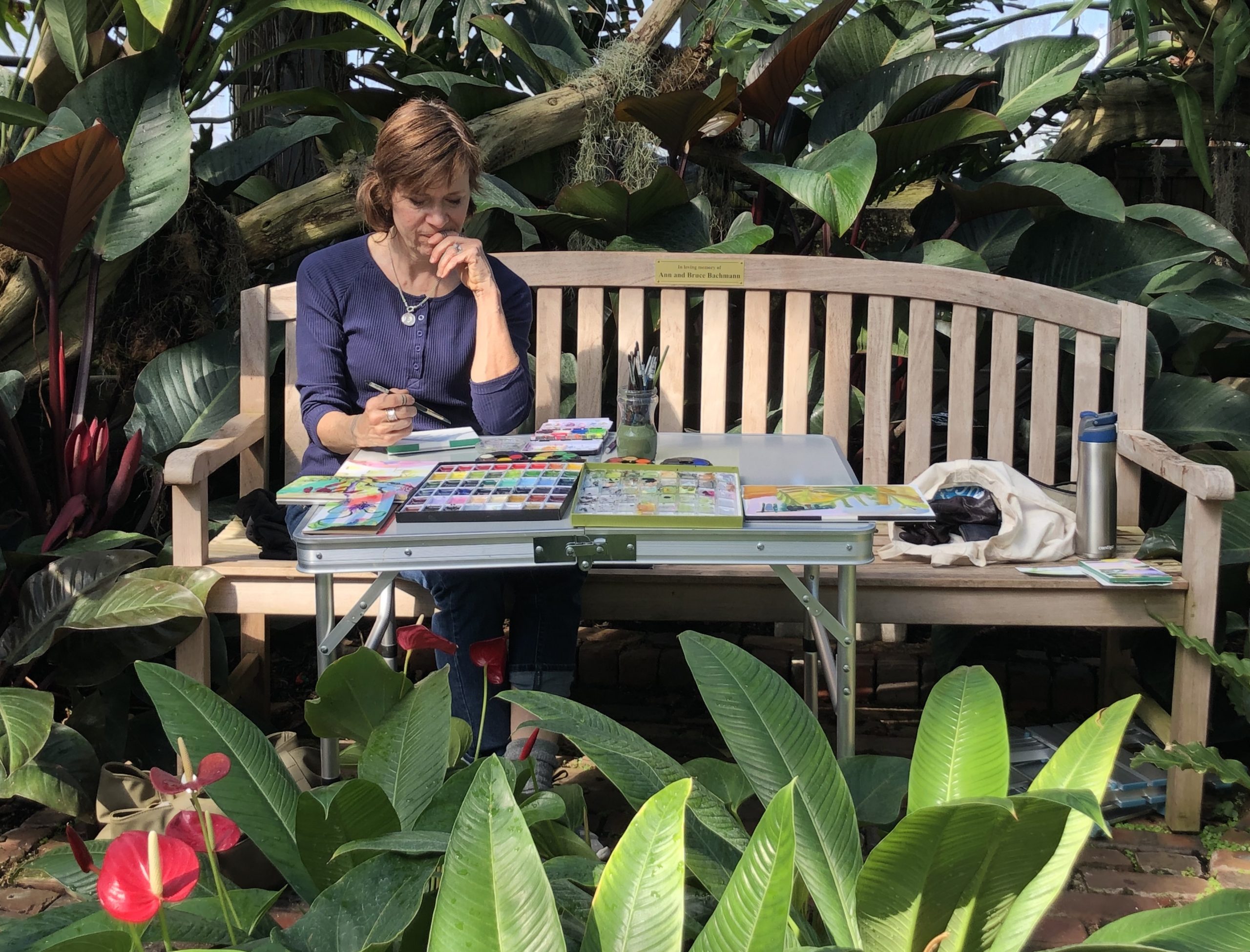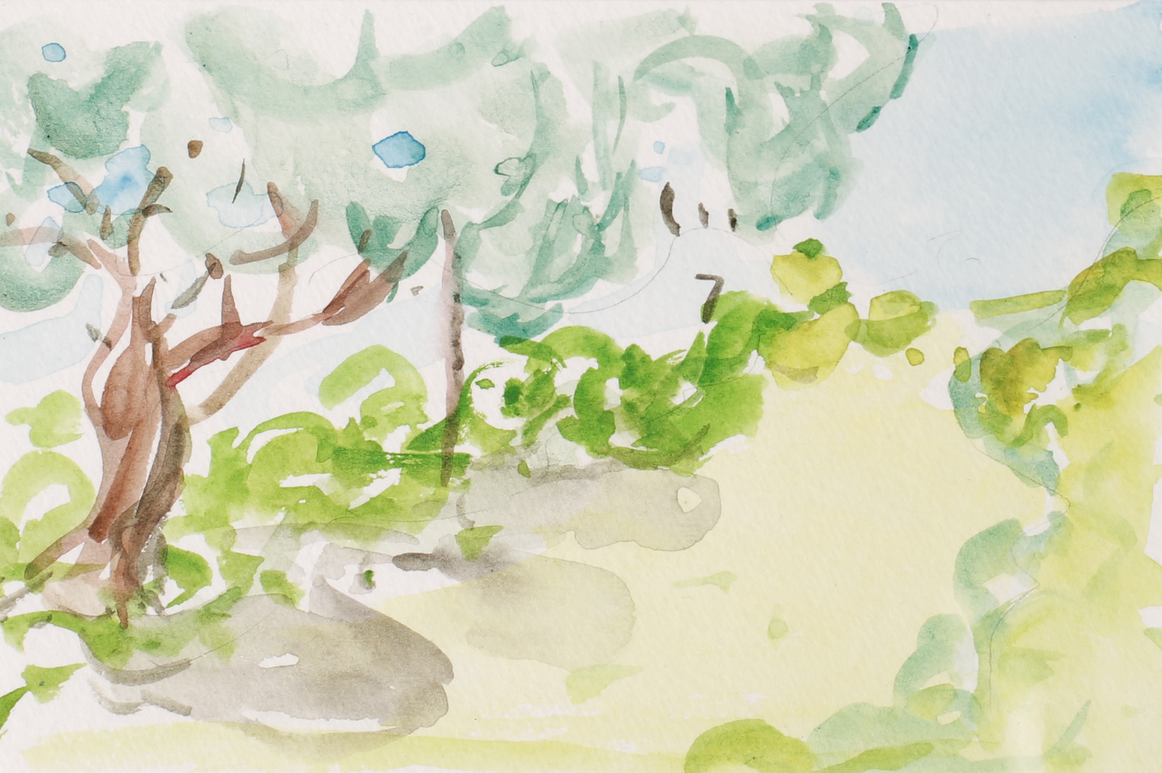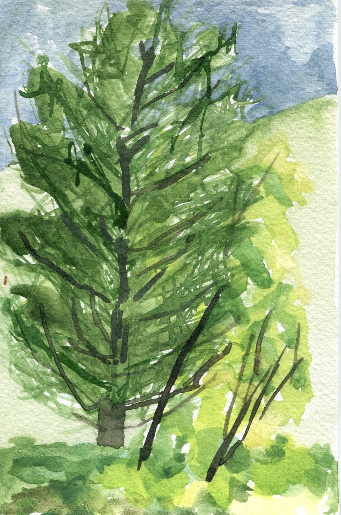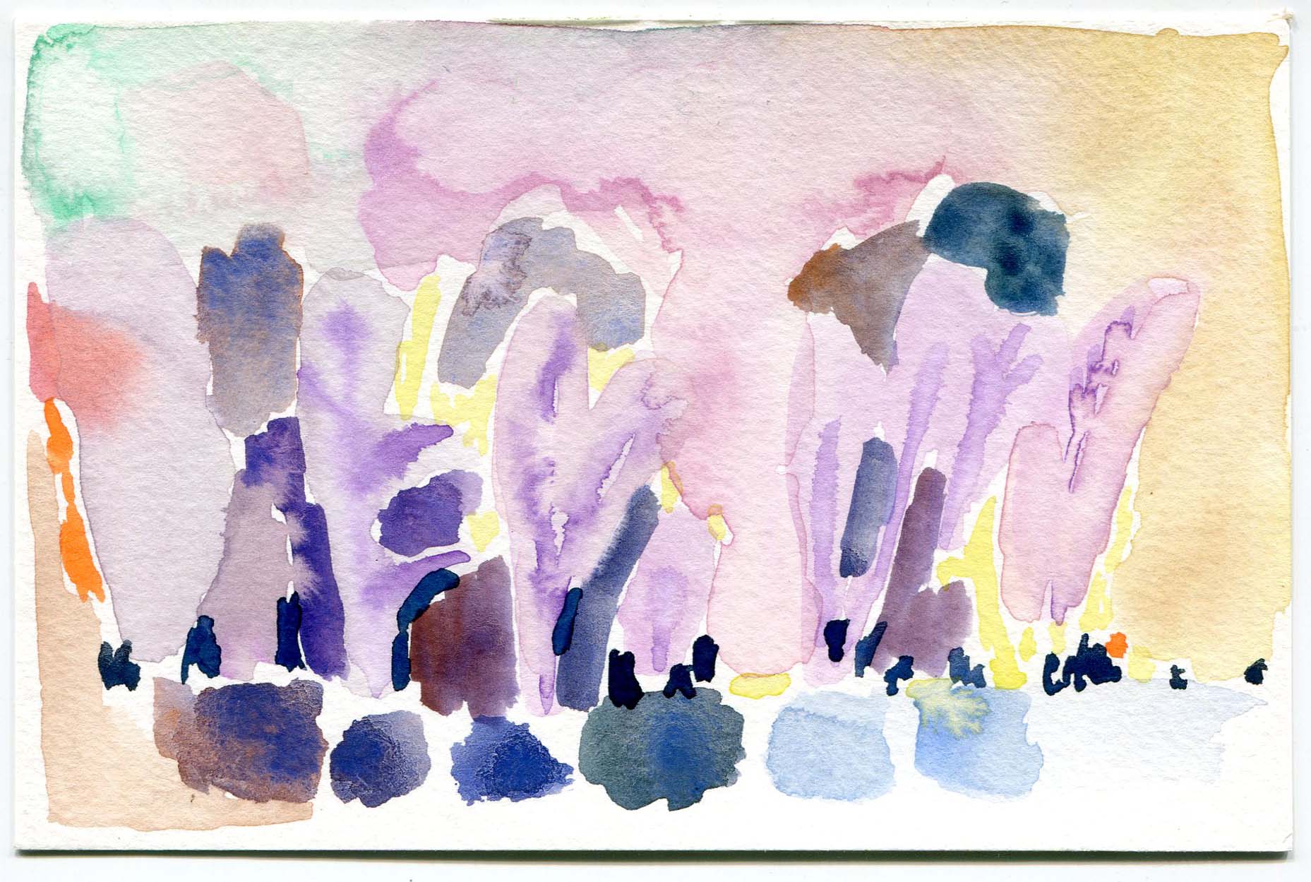 Watercolor painting outside with Leslie was like dying wood pulp, while walking backwards through light and time in the forest….Janet. A chance to slow down and look. To connect the eye with my hand. To observe color in natural light and translate through the brush.
