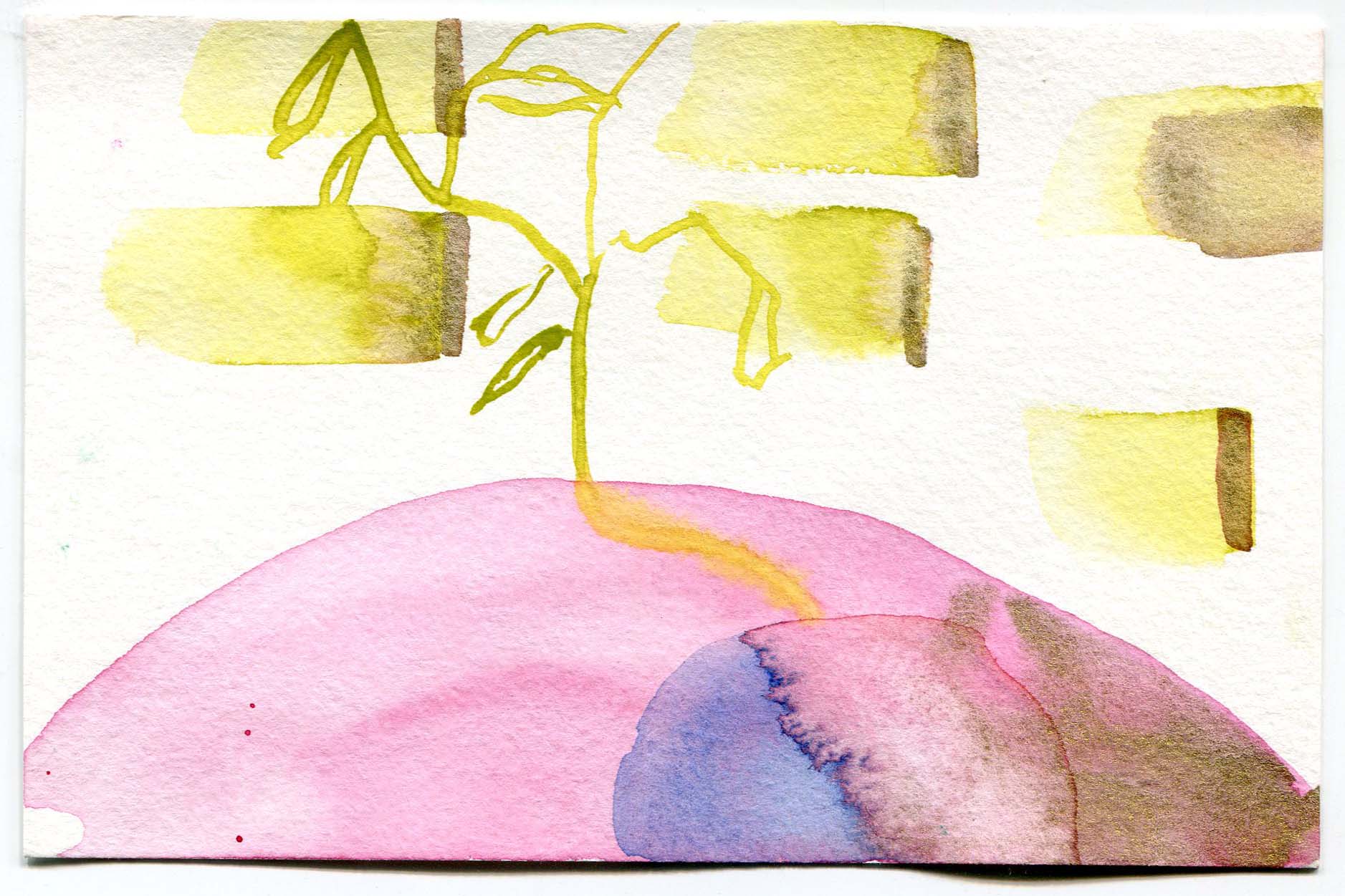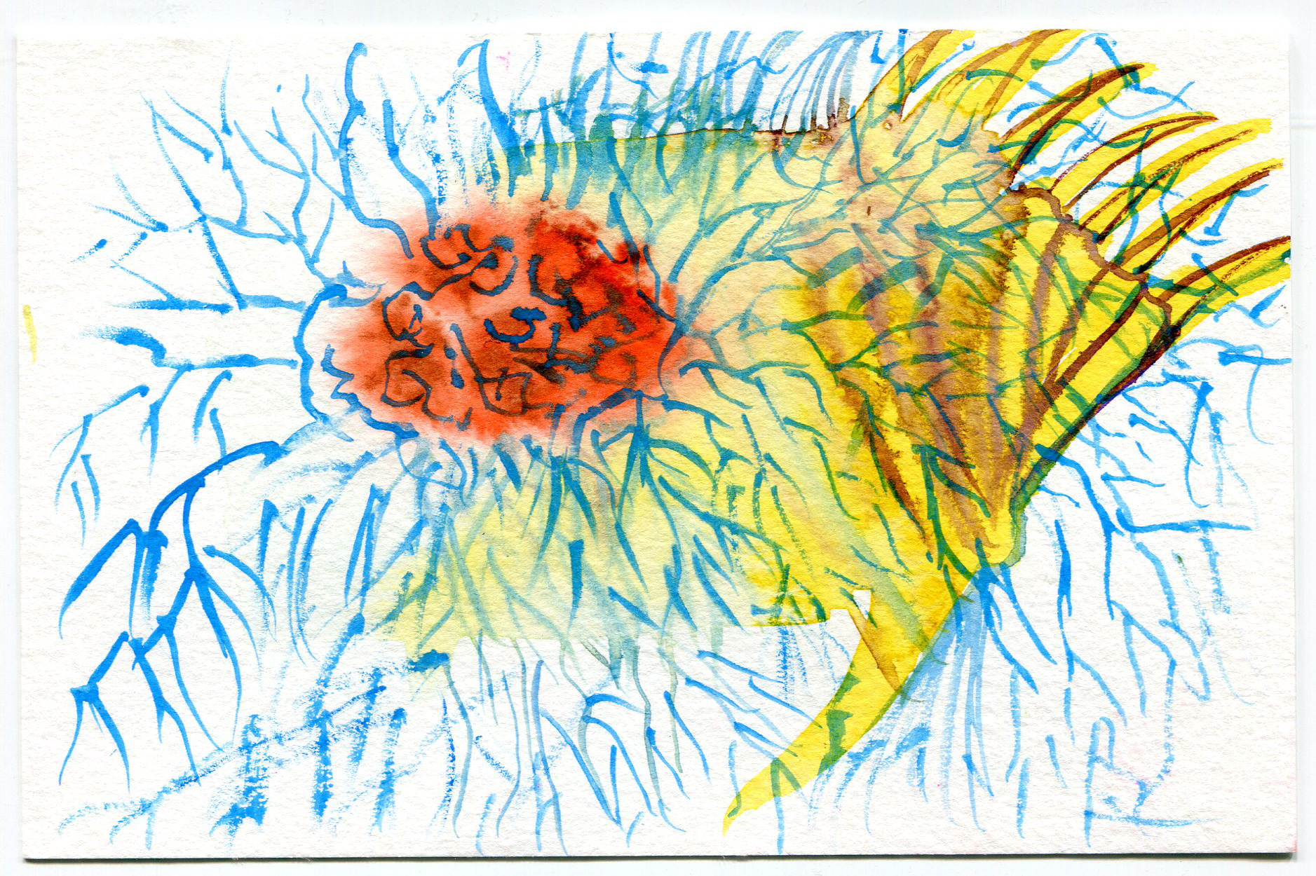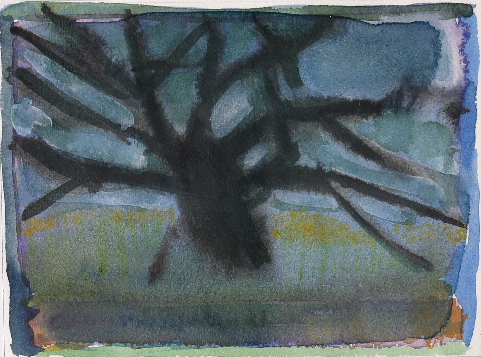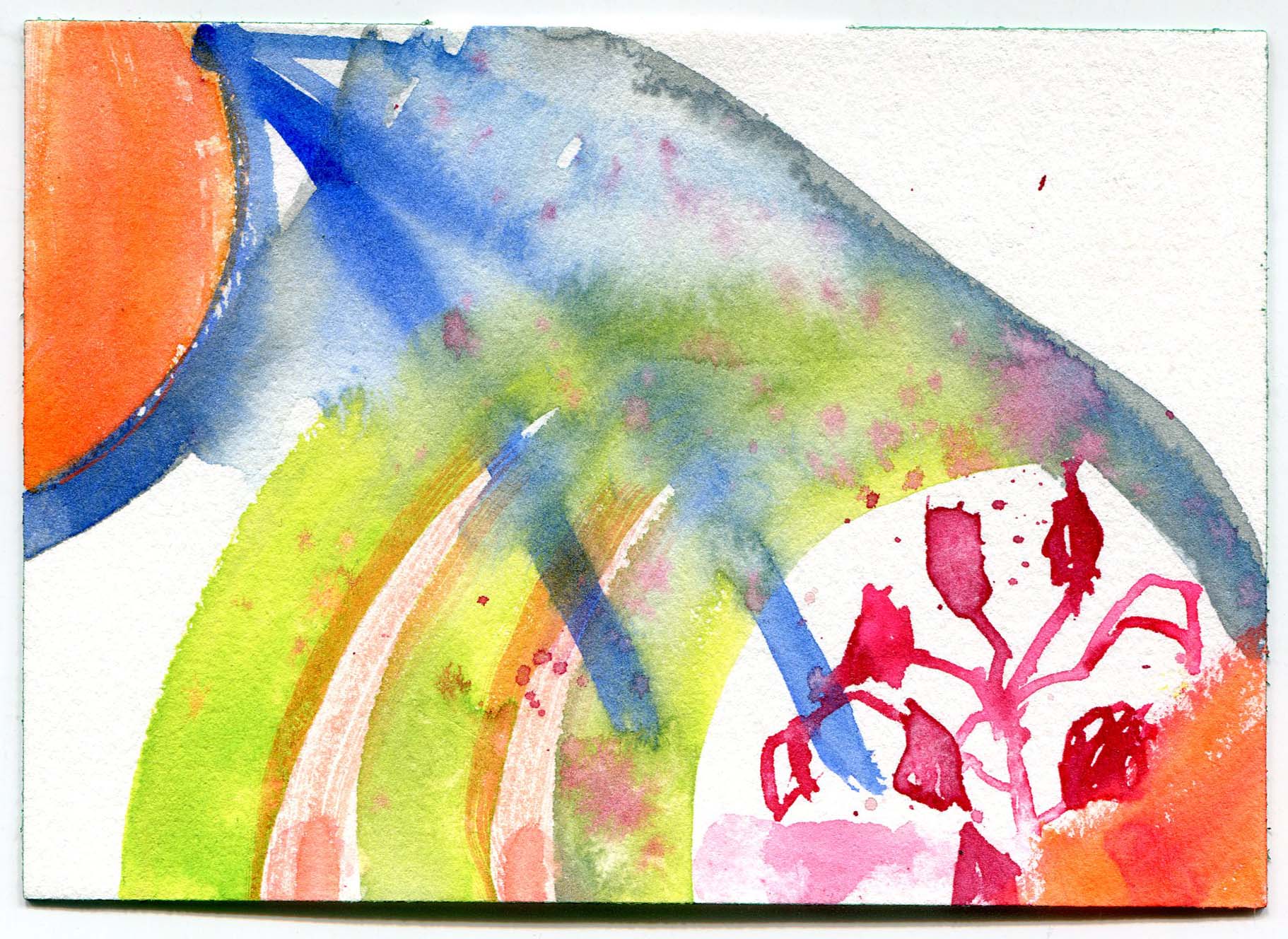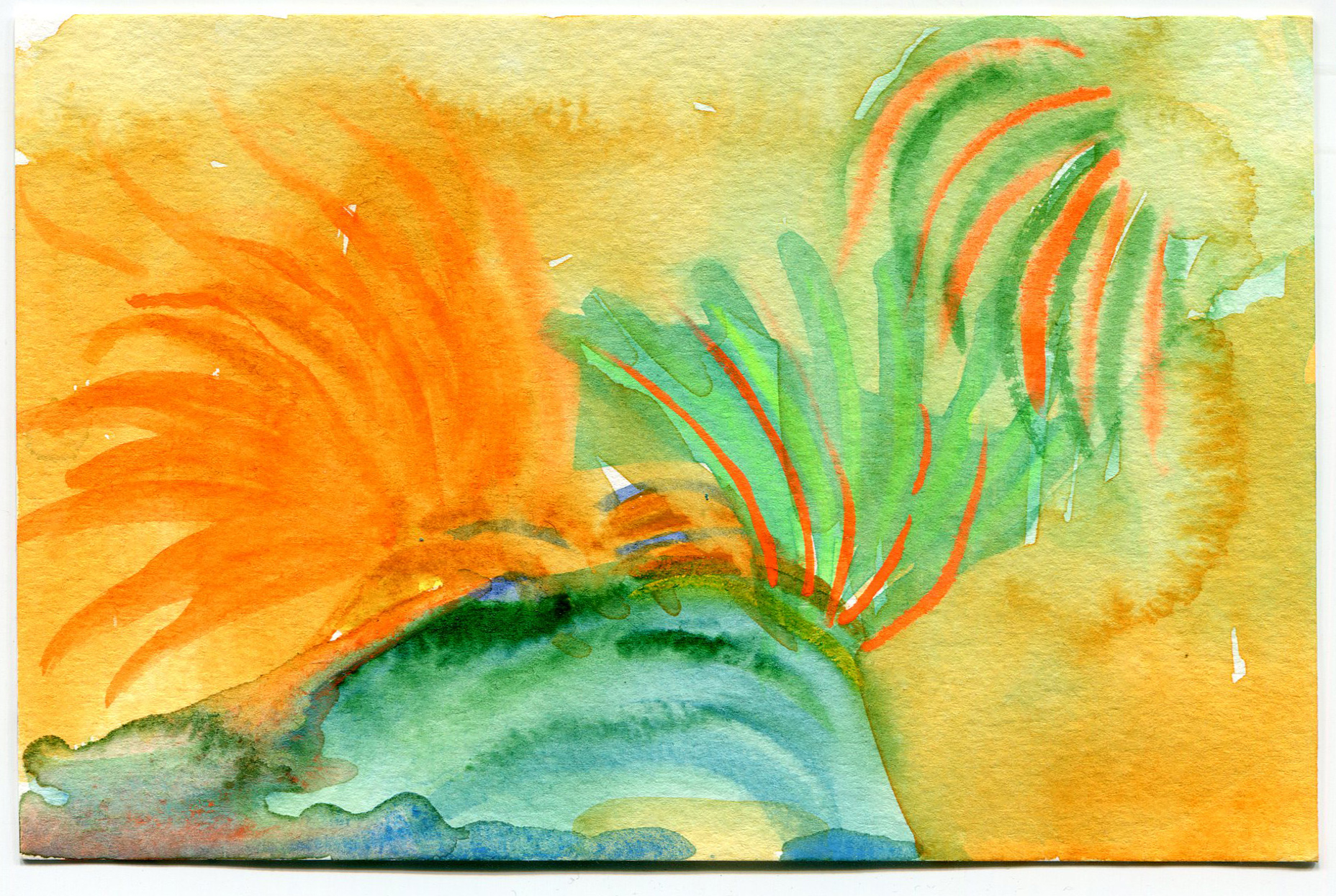 A day where the sun was hot but the shade was cool. I remember sound of the willow trees dancing in the wind. A curious snake ran across our feet, twice! Our brushes were busy making suns, flowers, and bits of sky.