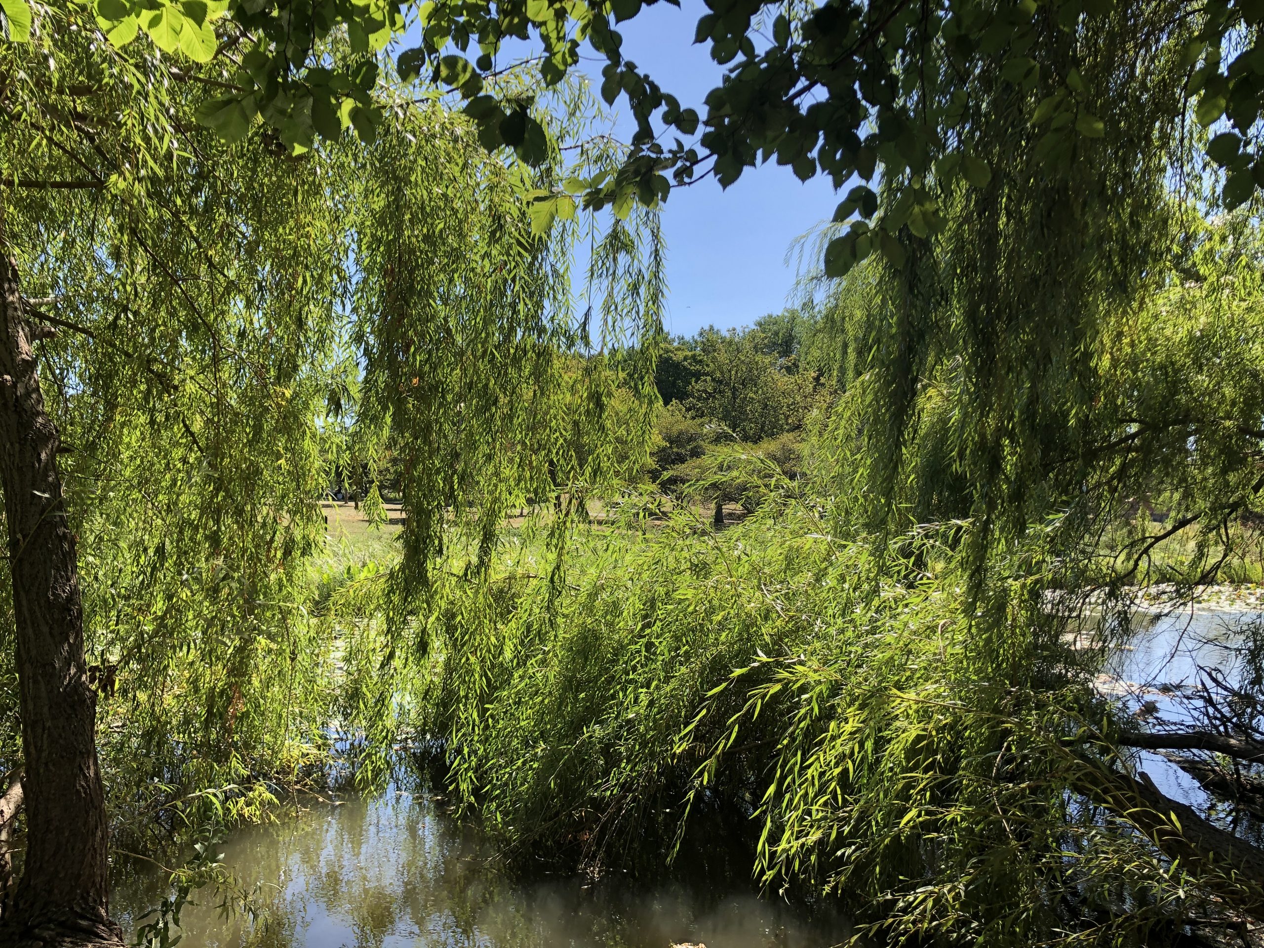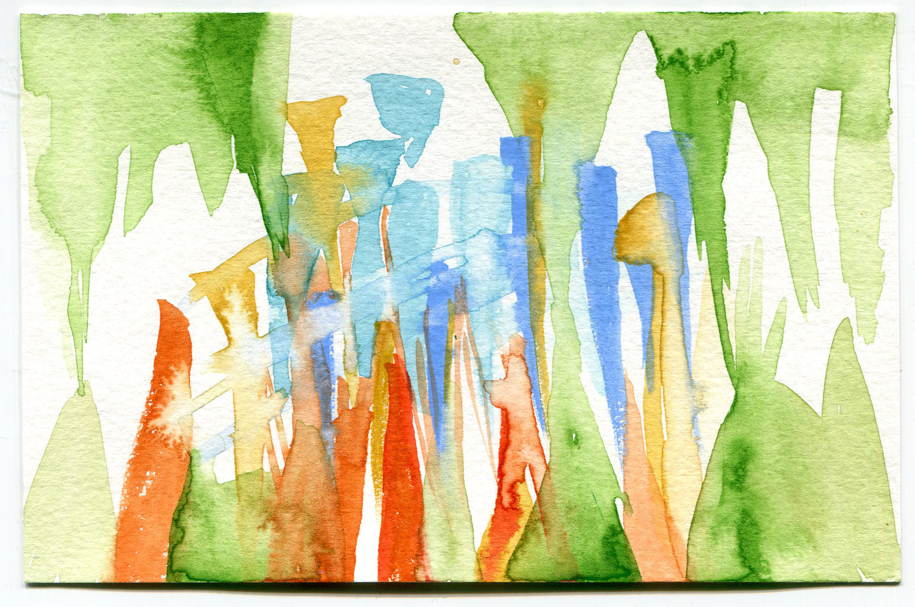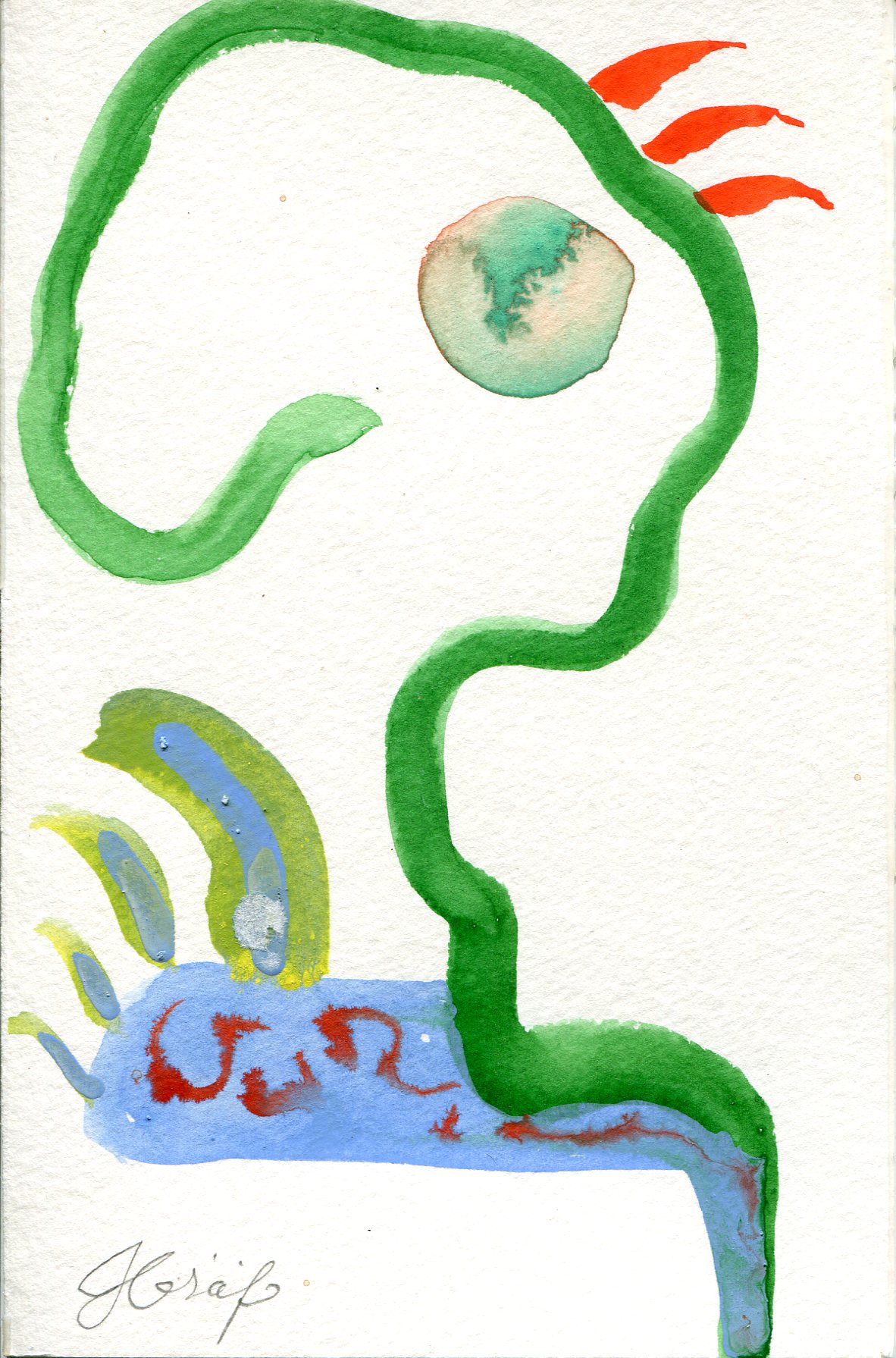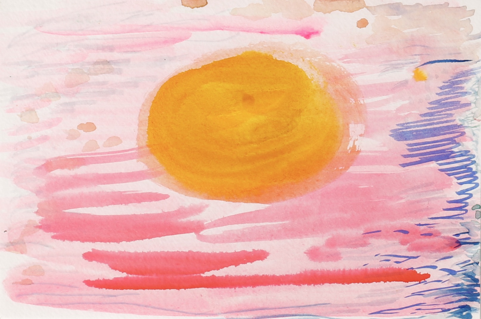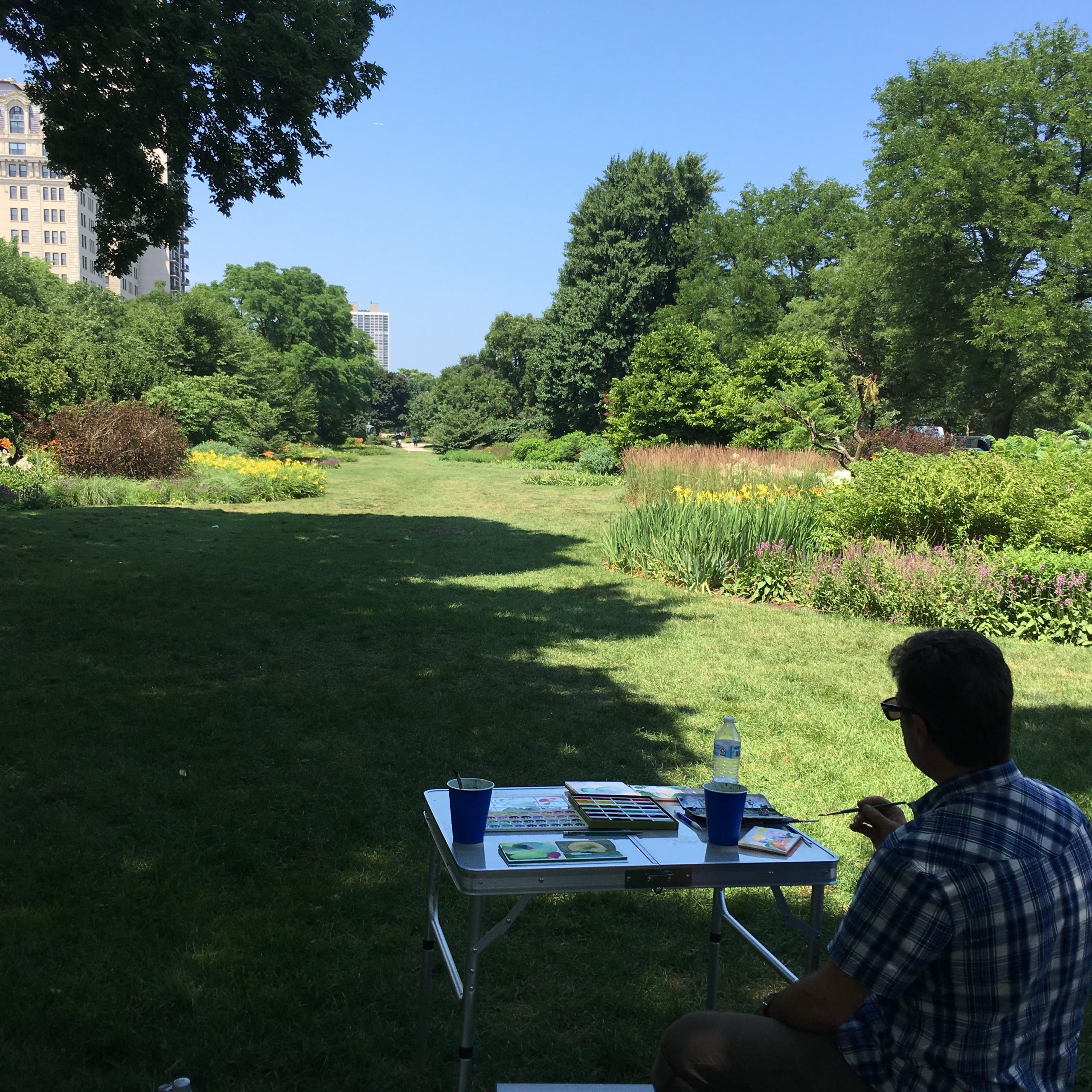 A day where the sun was hot but the shade was cool. I remember sound of the willow trees dancing in the wind. A curious snake ran across our feet, twice! Our brushes were busy making suns, flowers, and bits of sky.