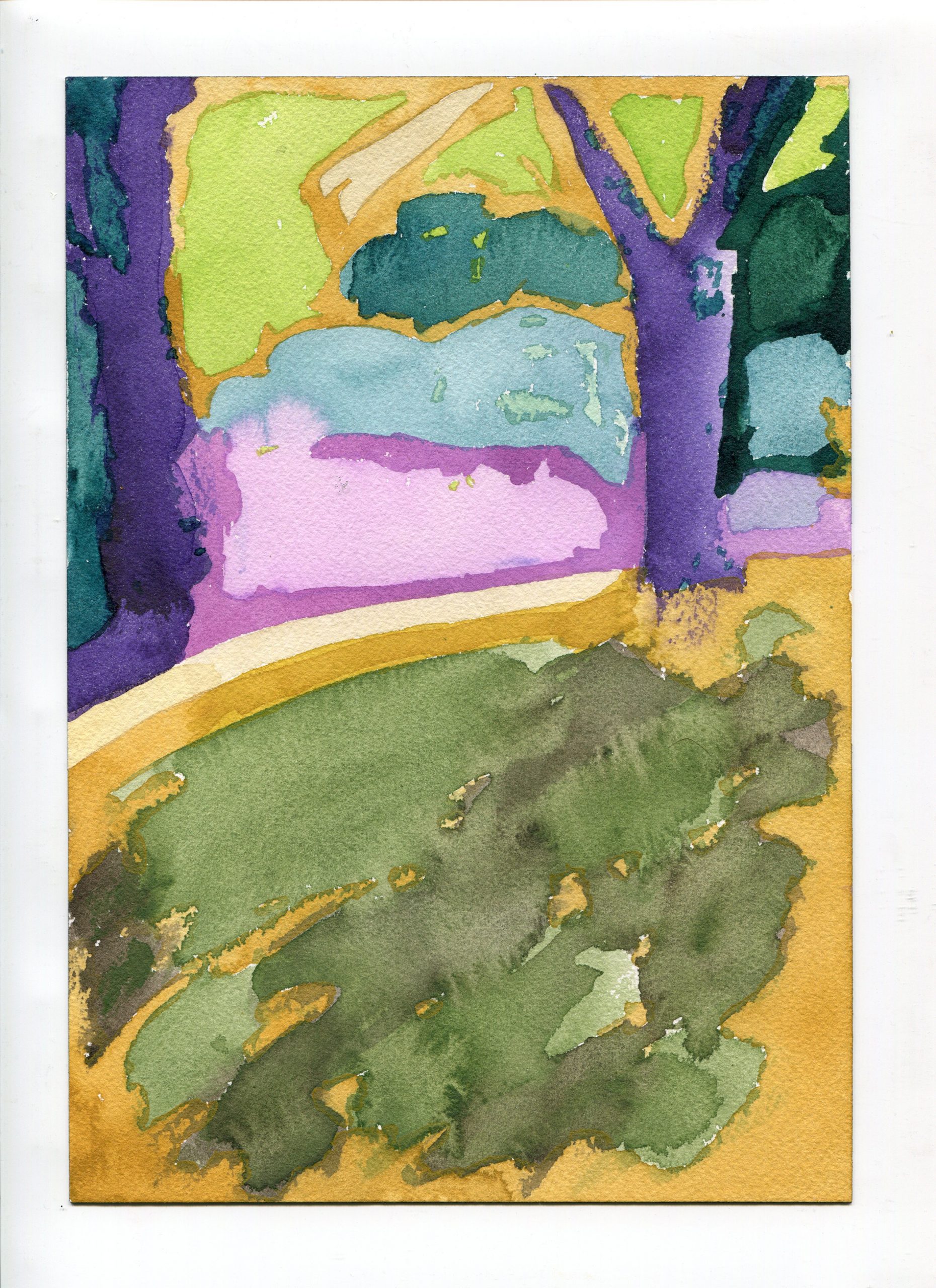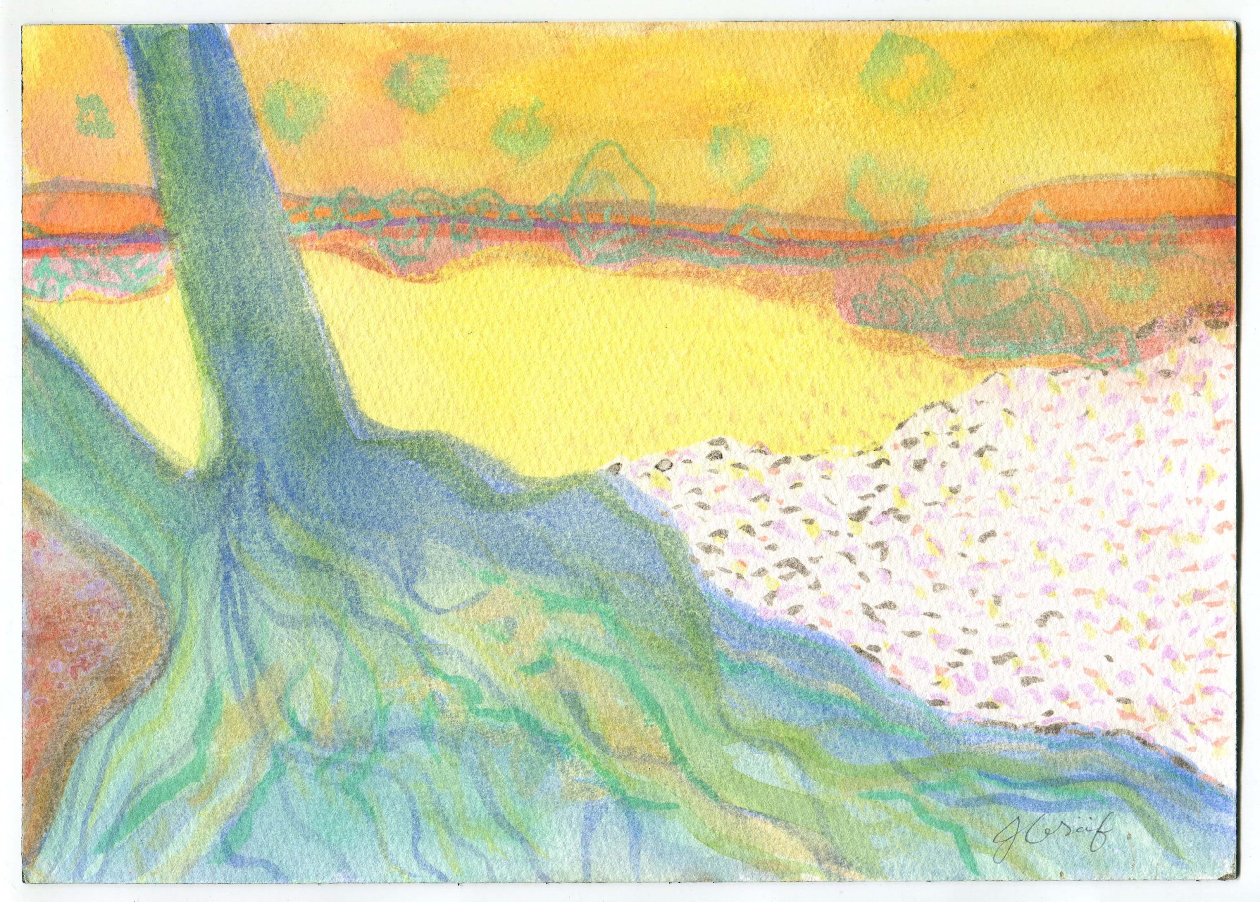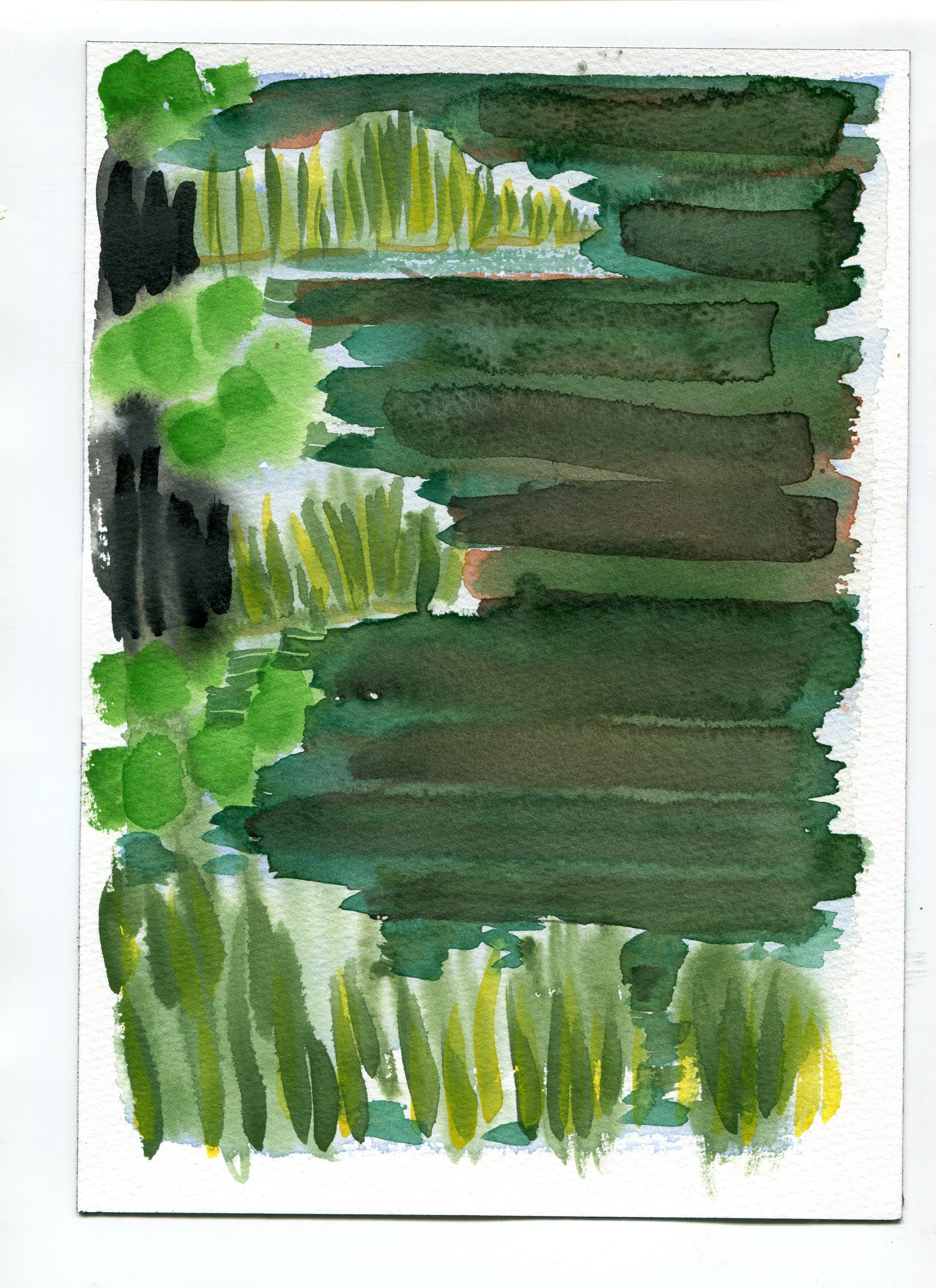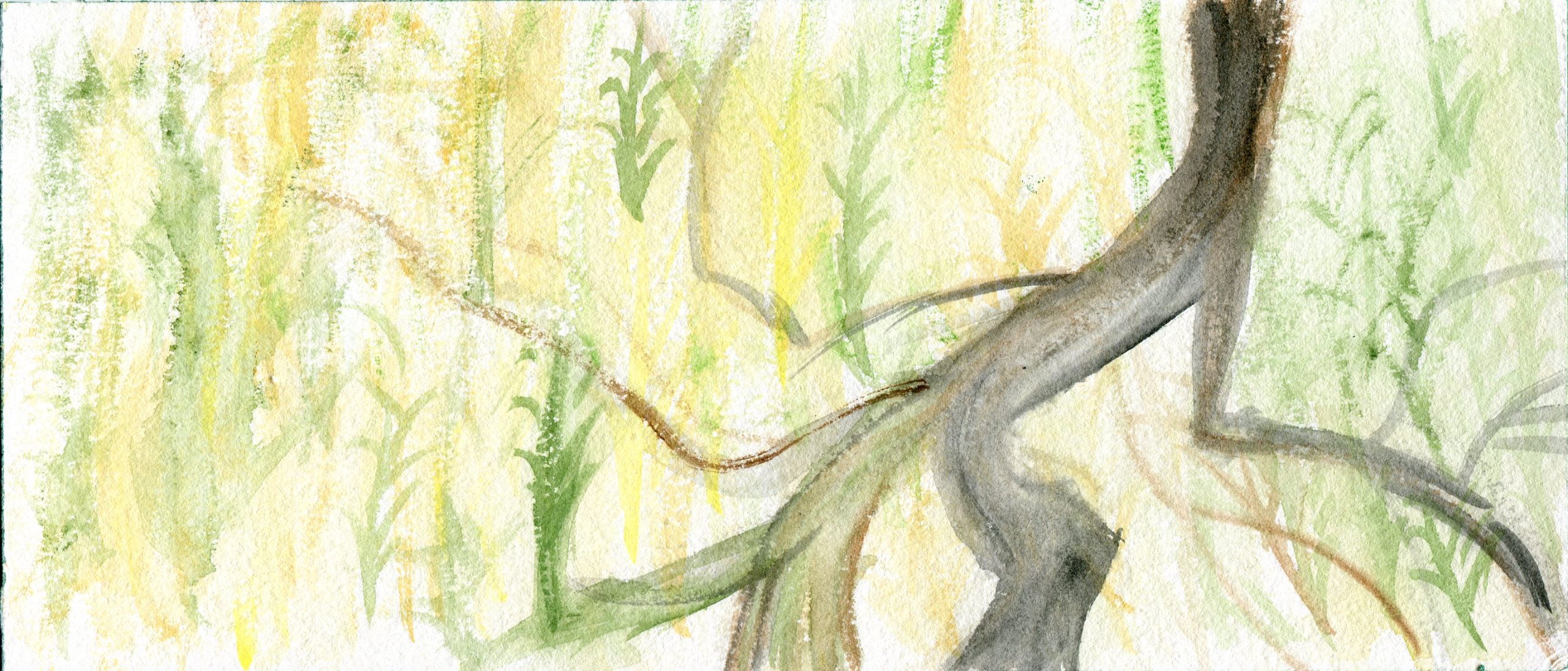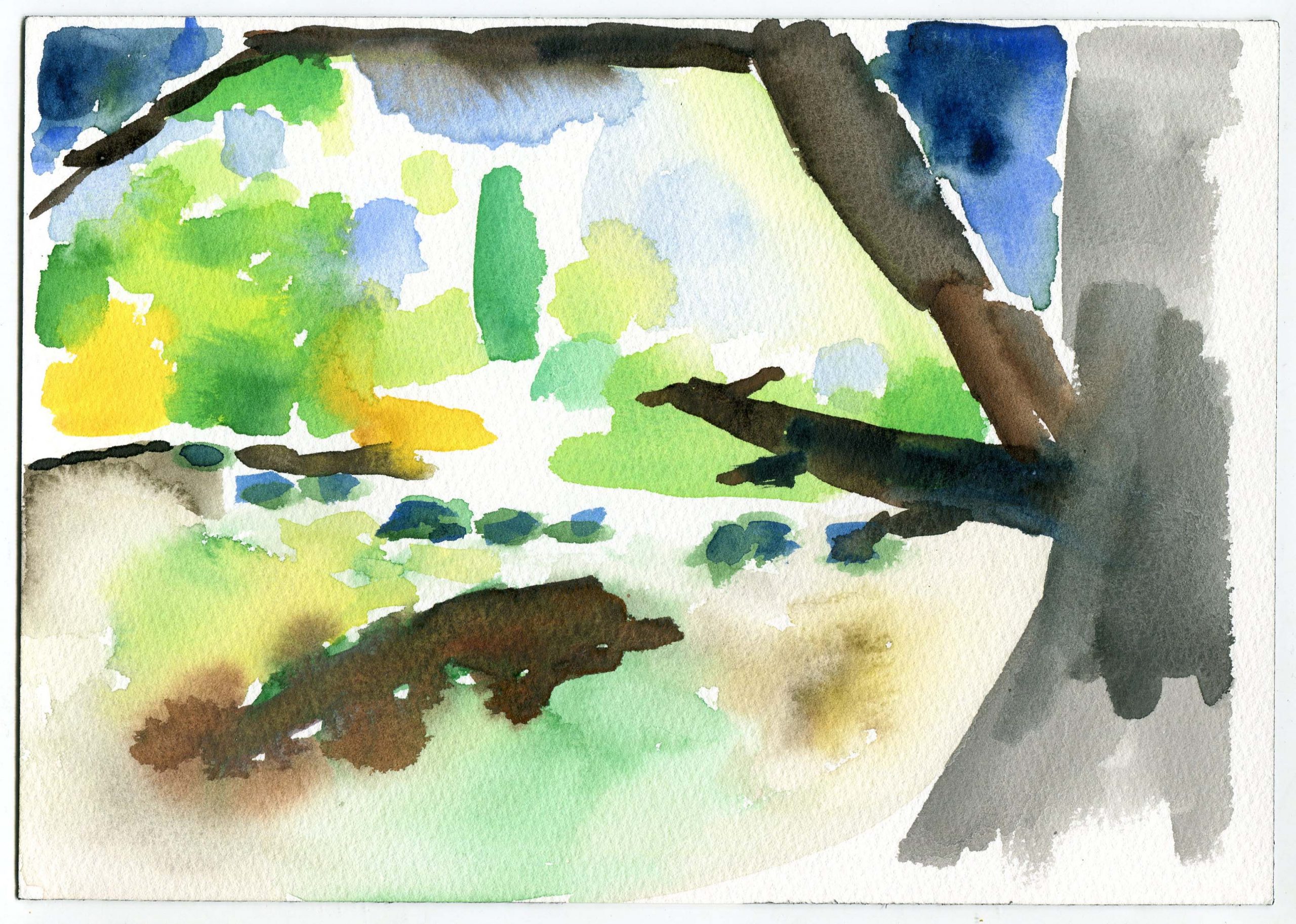 Sitting on the bank of the Herring Run in July 2019, with watercolors and paper, I tuned in to compositions.