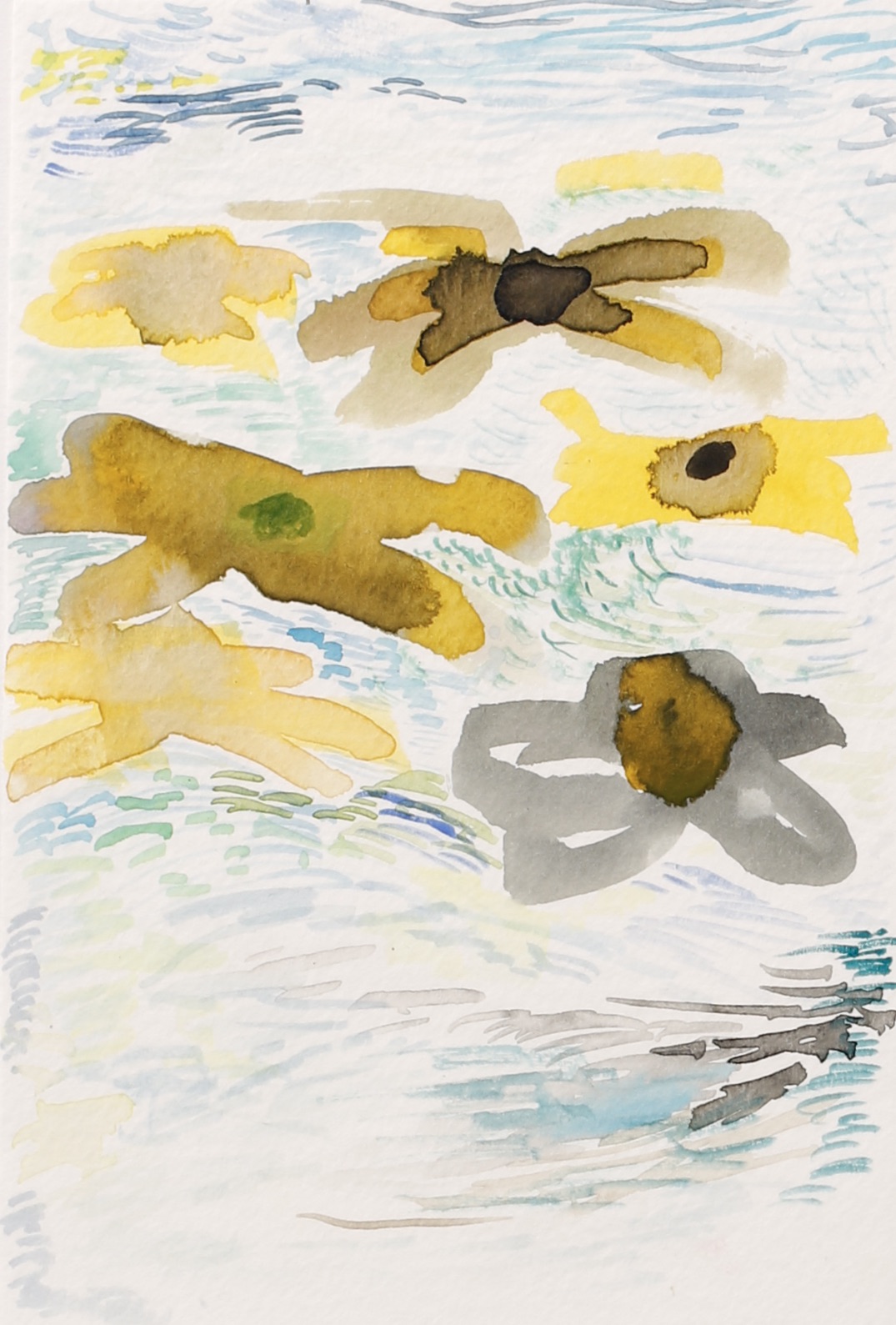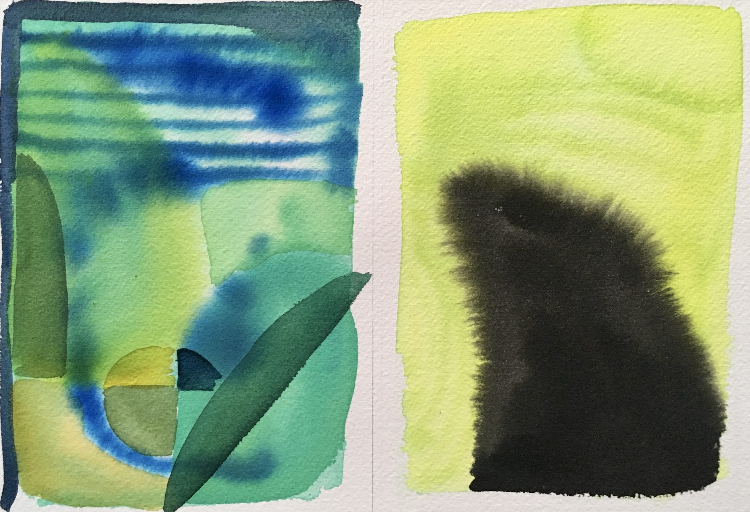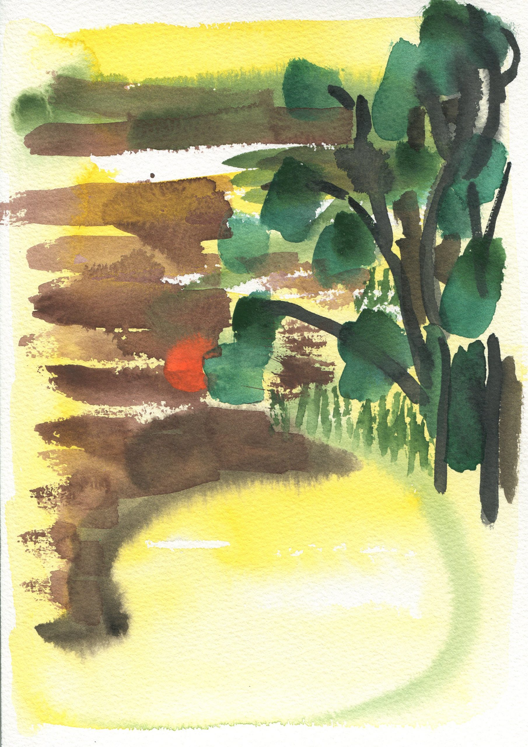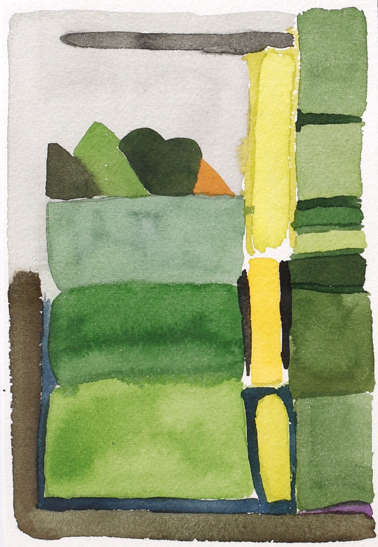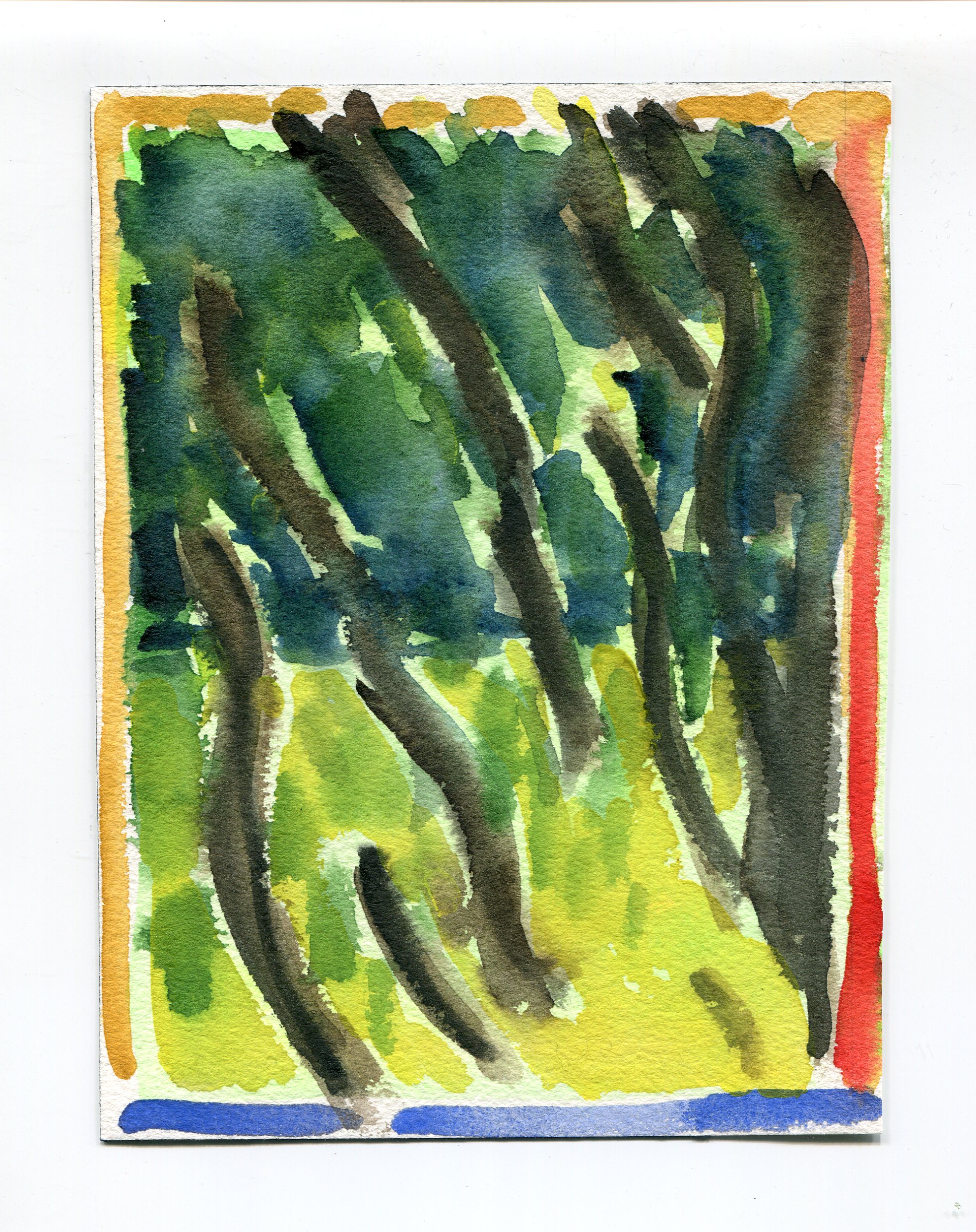Sitting on the bank of the Herring Run in July 2019, with watercolors and paper, I tuned in to compositions.