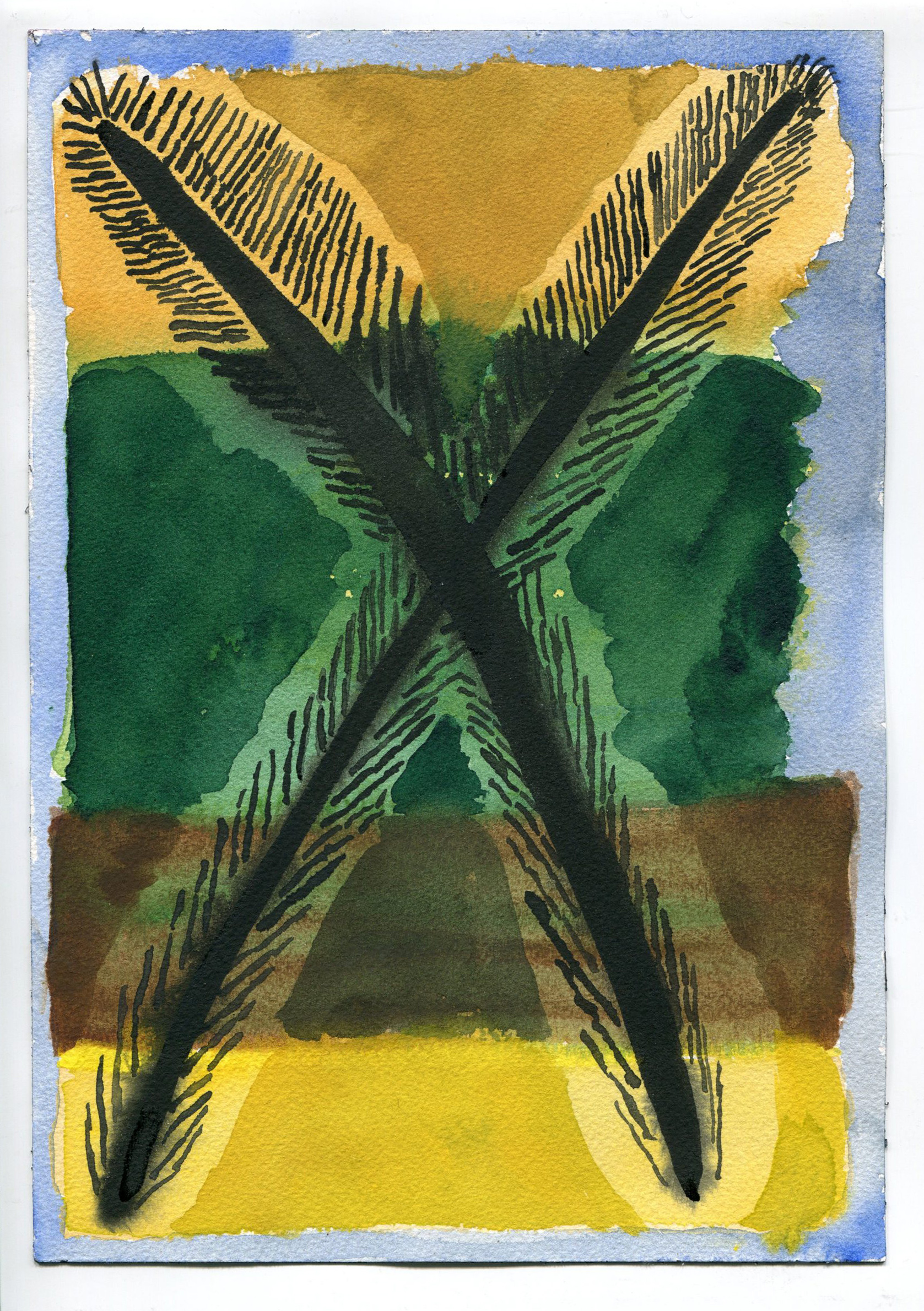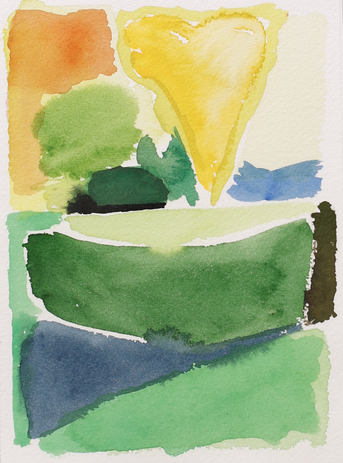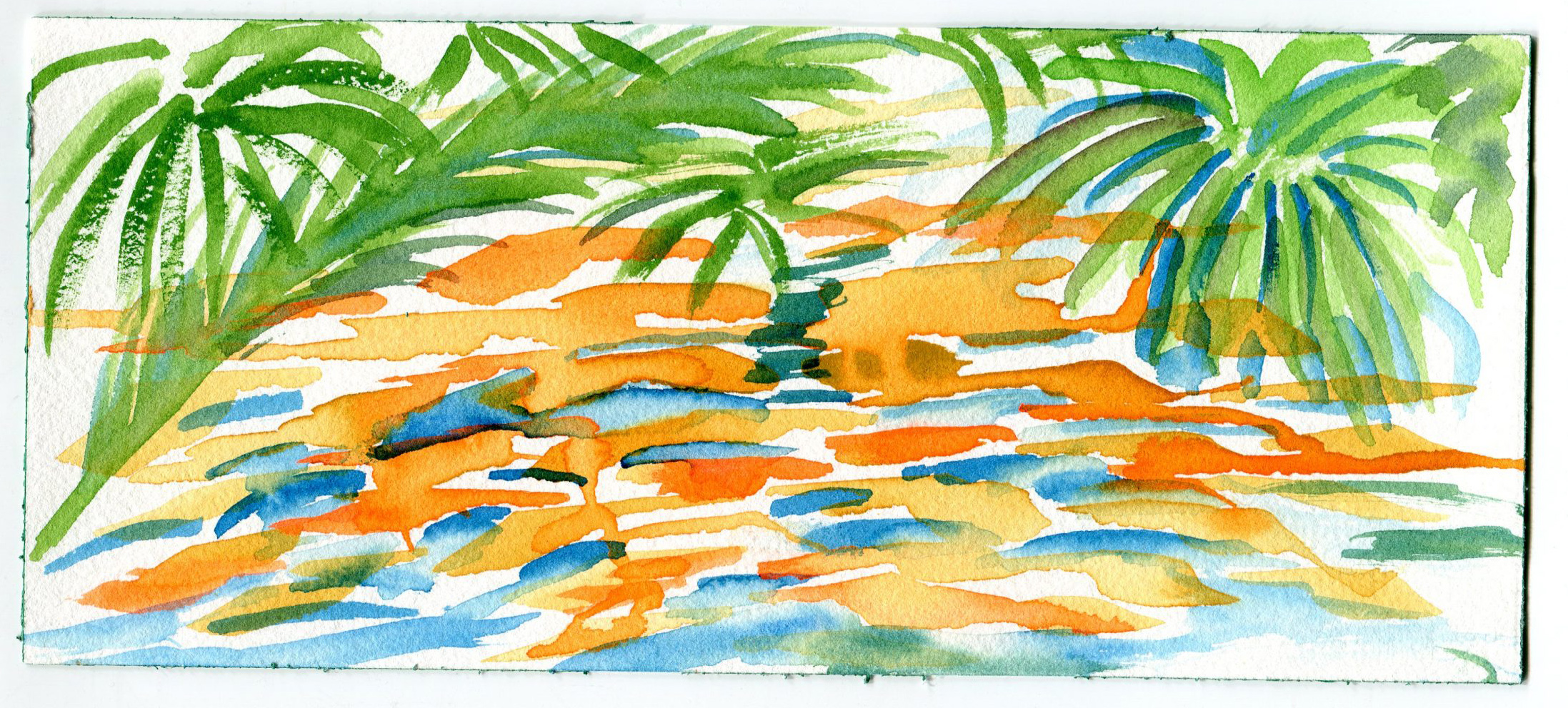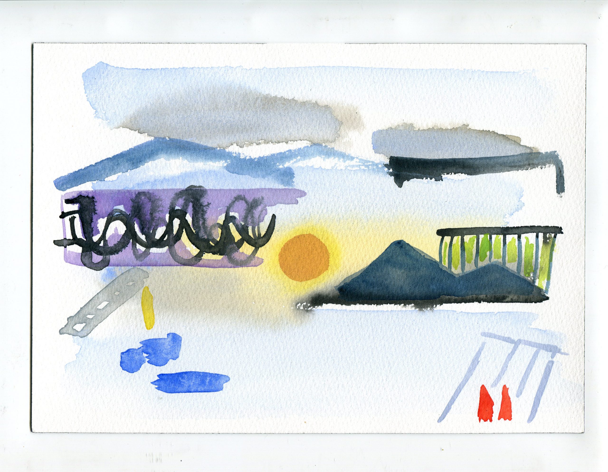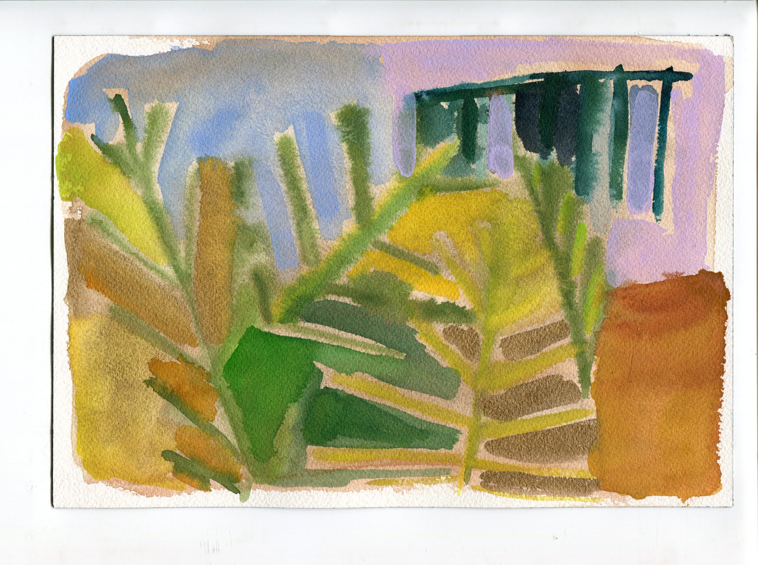 Sitting on the bank of the Herring Run in July 2019, with watercolors and paper, I tuned in to compositions.