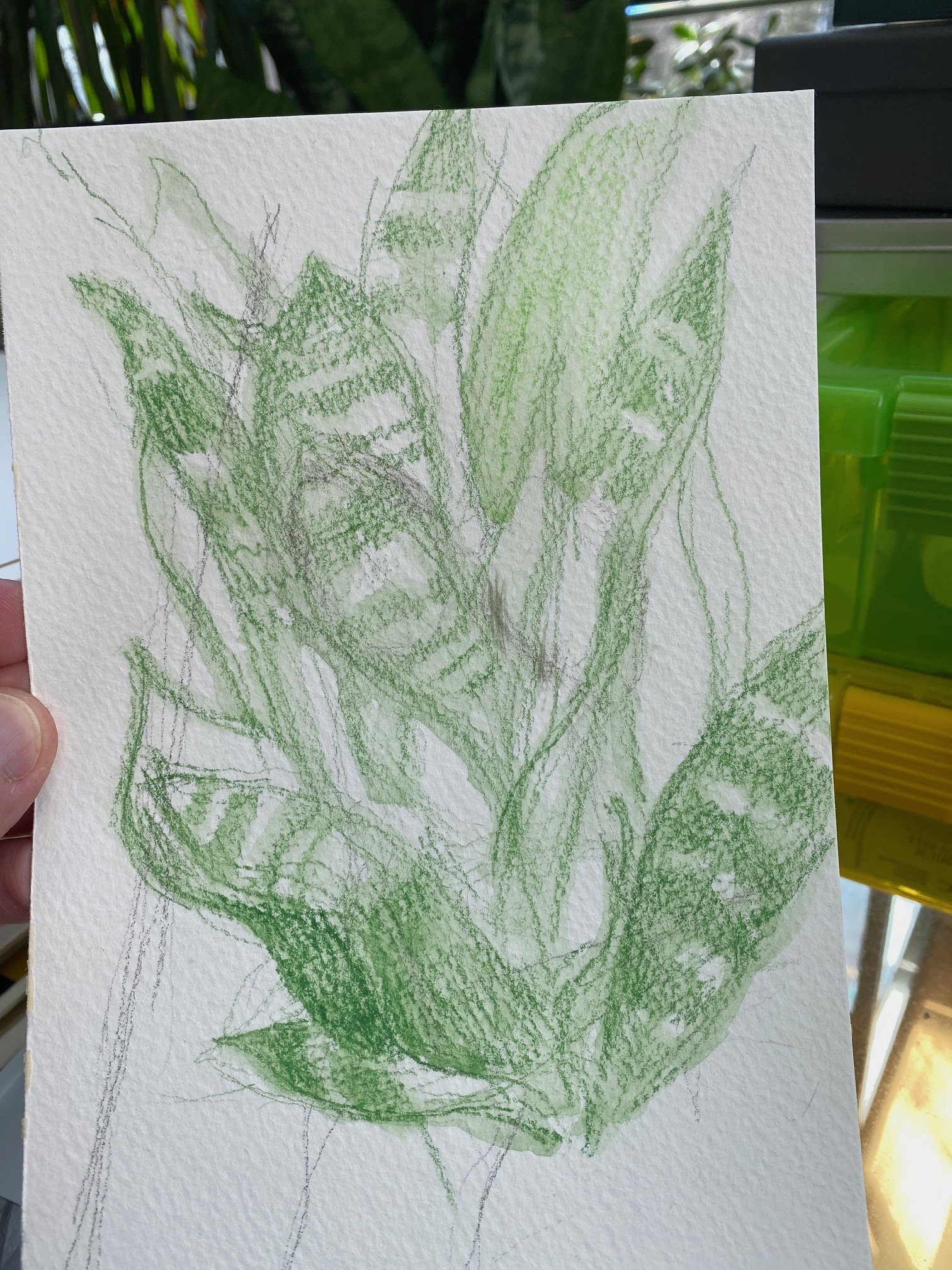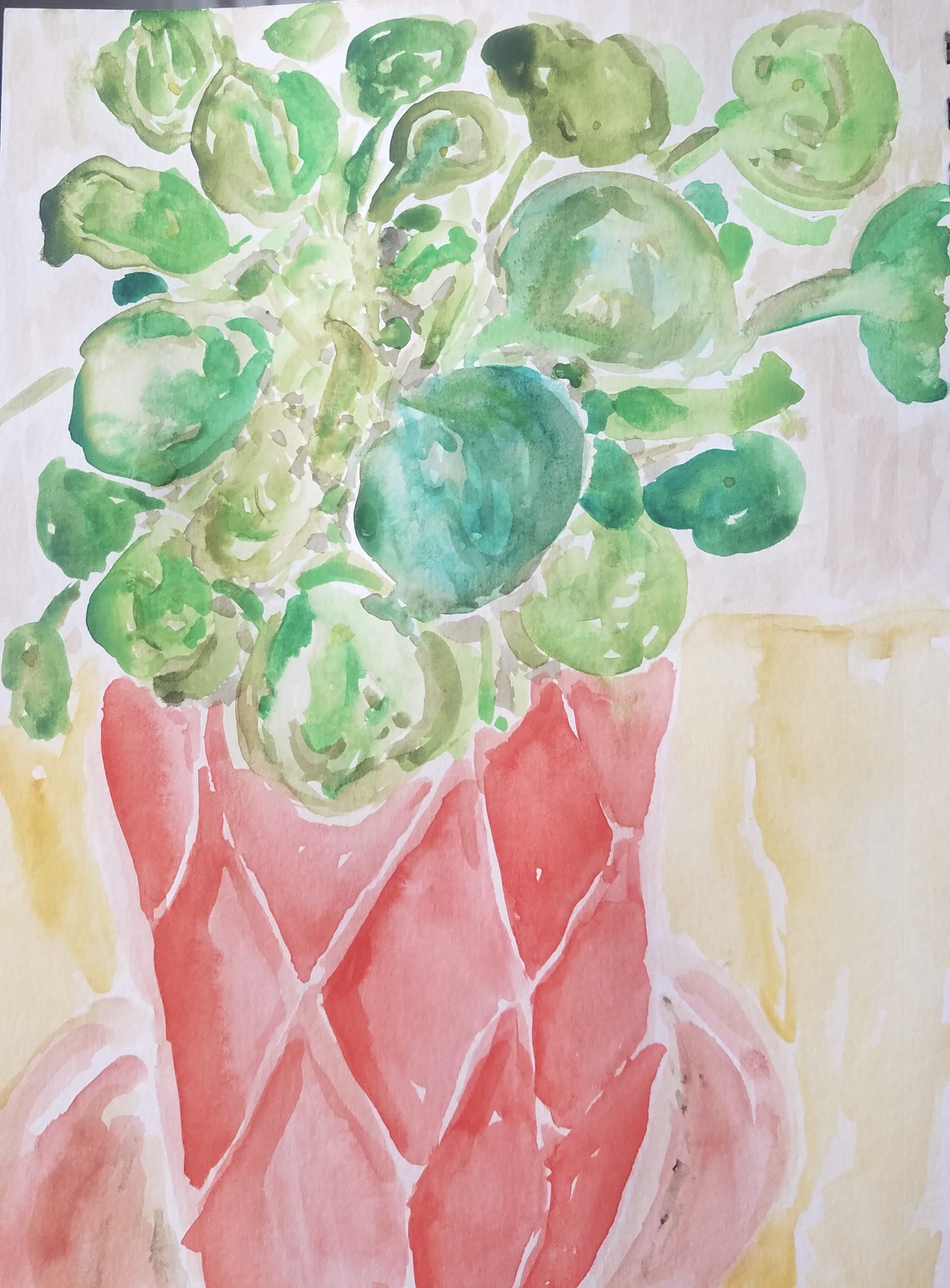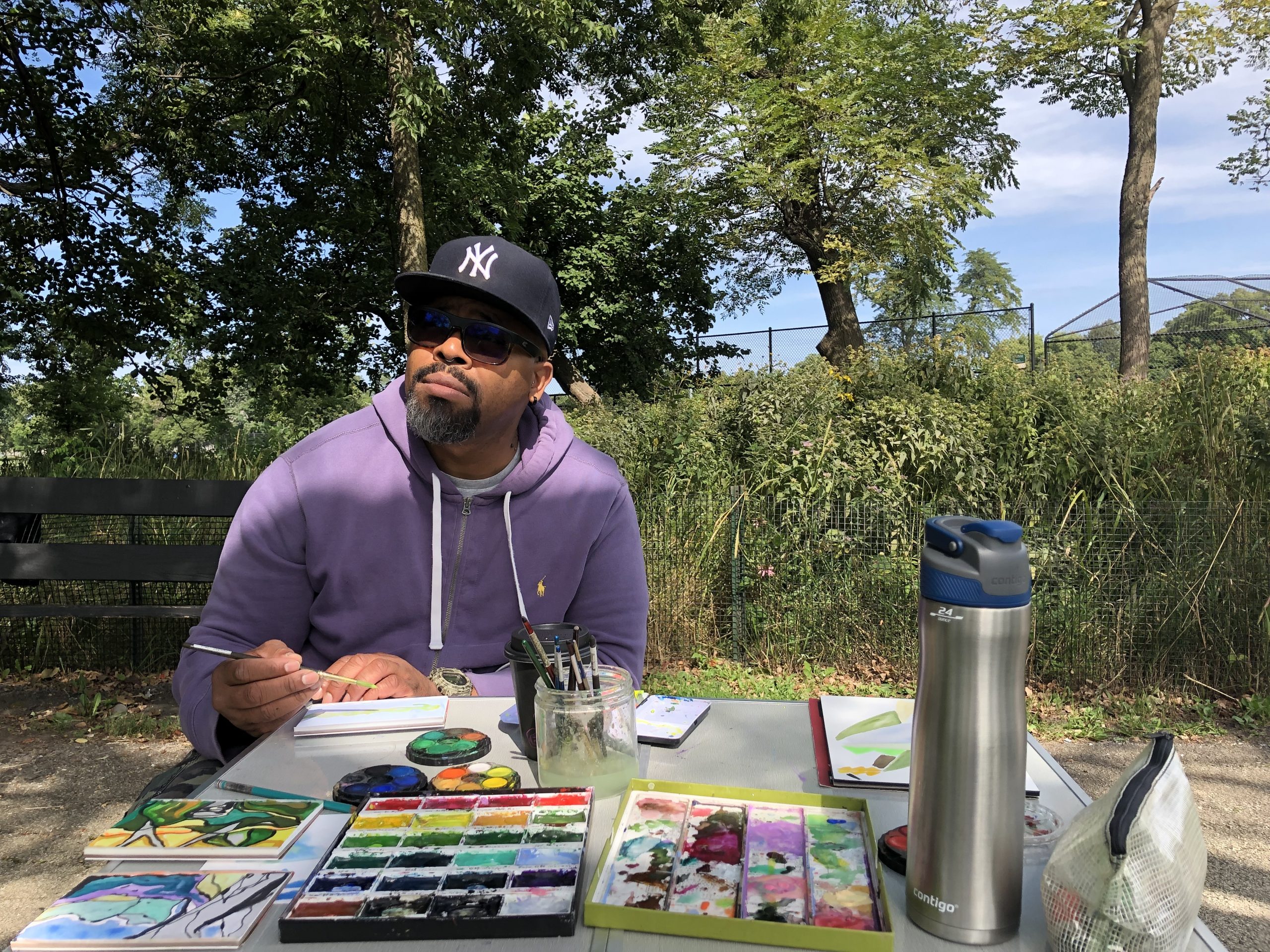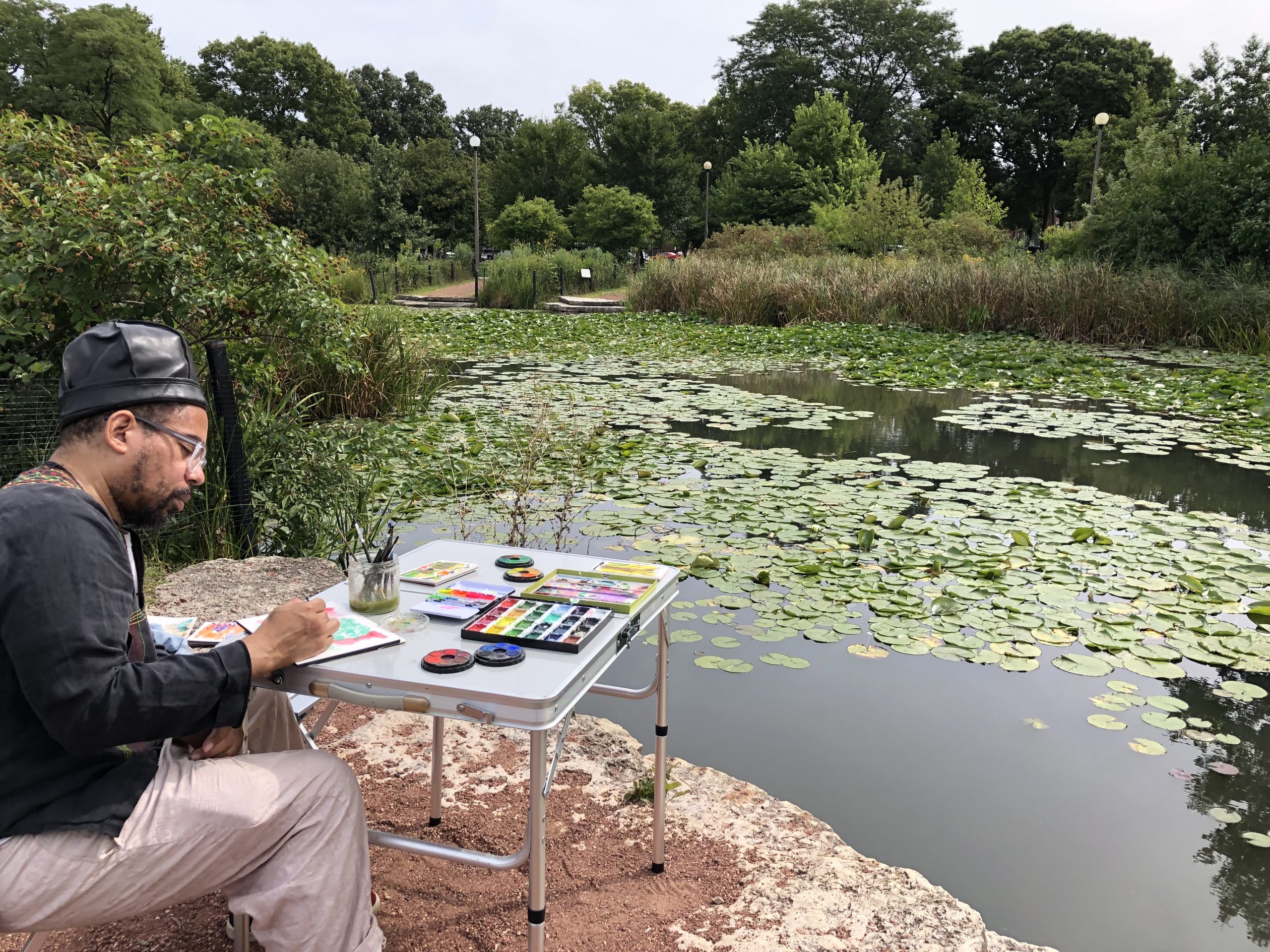 I met Leslie on my birthday, in July of 2020. I became aware of her paintings and her plein air project just before her show at Julius Caesar. I loved the idea of the project, which seemed like a perfect way to have a socially distanced outdoor experience, and I loved her paintings, which had a very unique vocabulary of shape and color as she dealt with botanical subjects. She graciously allowed me to pick a few paintings before the install, and we figured out a day to arrange a delivery of my new little collection. As we talked, it occurred to me that I was living in a perfect setting for a plein air-painting excursion. My home outside of Chicago had a field of native wildflowers, and the purple coneflowers were putting on quite a show.