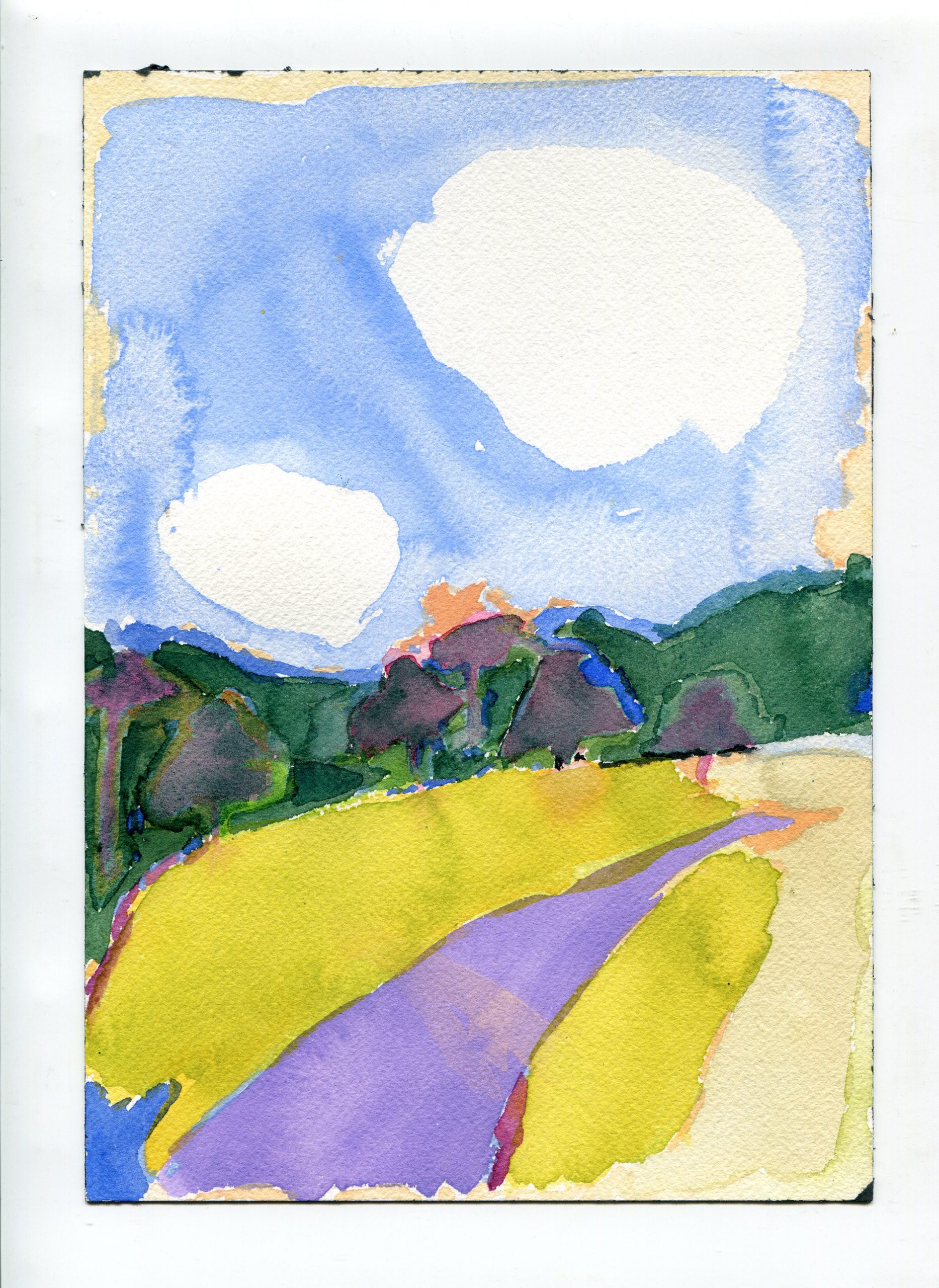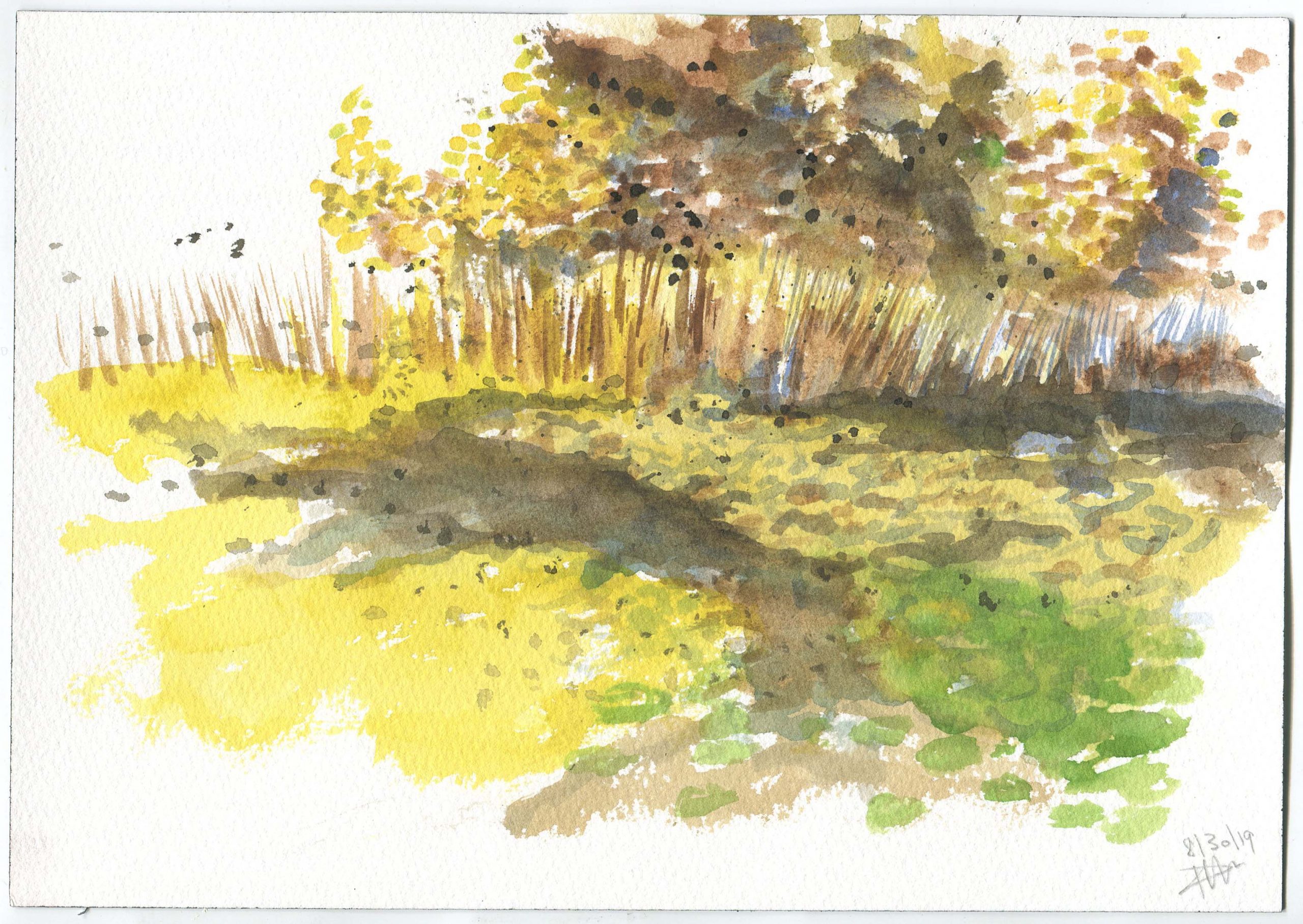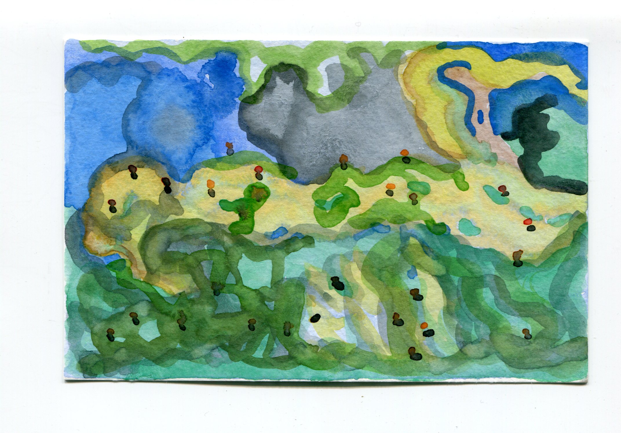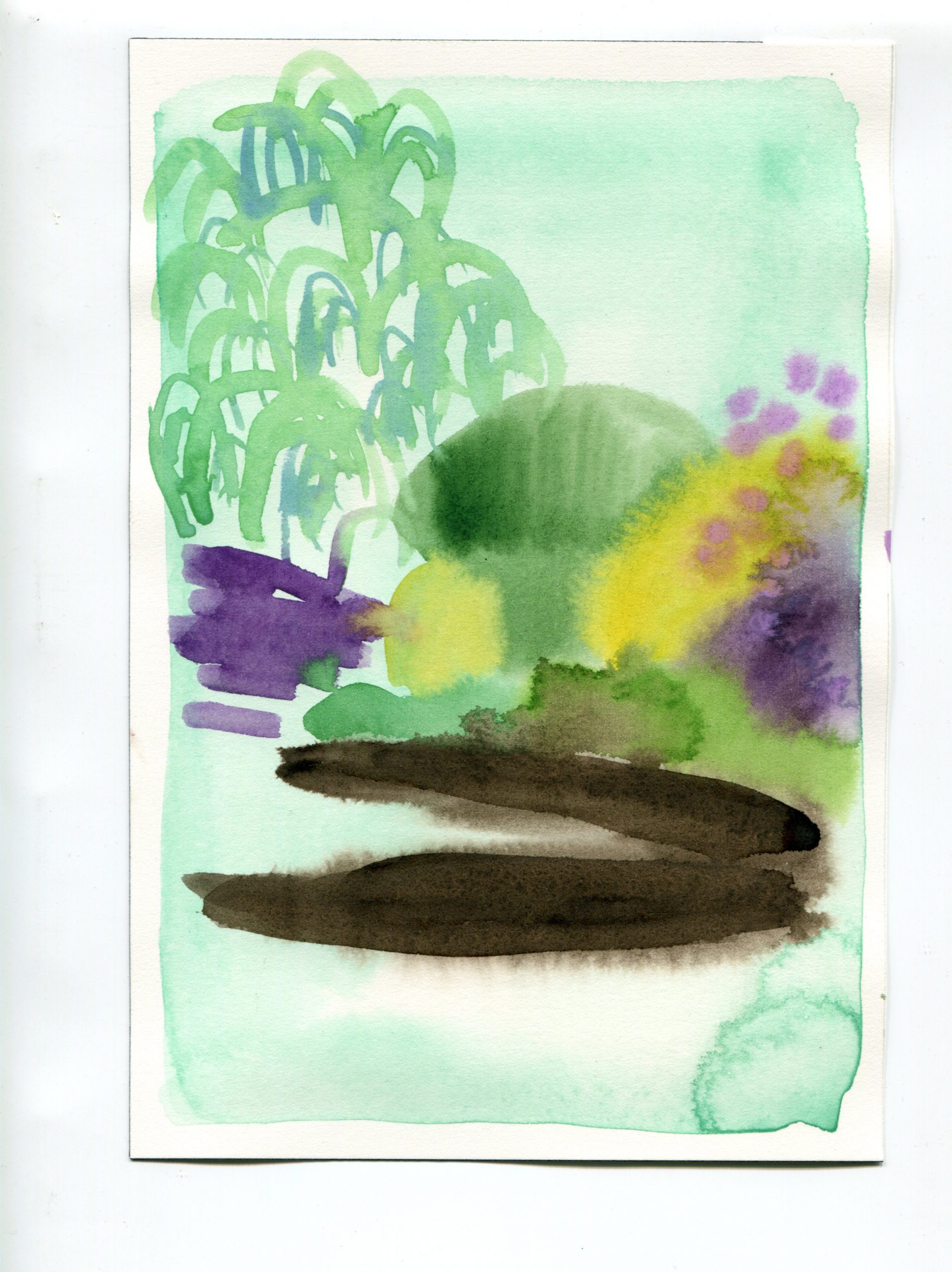 Leslie showed up with her portable painting tables and pallets of Japanese watercolors and we spent the afternoon painting with my sister Natalie. Leslie made a number of beautiful paintings, while I muddled through various attempts to put something on paper that wasn’t immediately offensive. She was a gracious teacher and encouraging painting partner. It’s nice to spend time working alongside somebody that has a very developed practice. The paintings weren’t overly precious, and she worked with an ease and confidence that made it fun. She had a nice repertoire of encouraging comments to keep you moving: “It’s just paper.” Or “You can start another painting if you don’t like that one.” Leslie’s paintings were abstract but rooted in the situation. She pulled elements like the color of the coneflowers, or the shape of a bush, or the bending of a trunk, and synthesized them into imaginary landscapes that were fantastic, but familiar. I don’t think she could have made the same painting sitting anywhere else, they seemed very specific to the time and place. I didn’t end up with any paintings that I liked, and I don’t think I’ve touched my watercolors since, but it did give me a refreshed appreciation for my immediate environment, the beauty of the flowers and the grasses, and the power of concentrated observation to transform your connection to a place.
