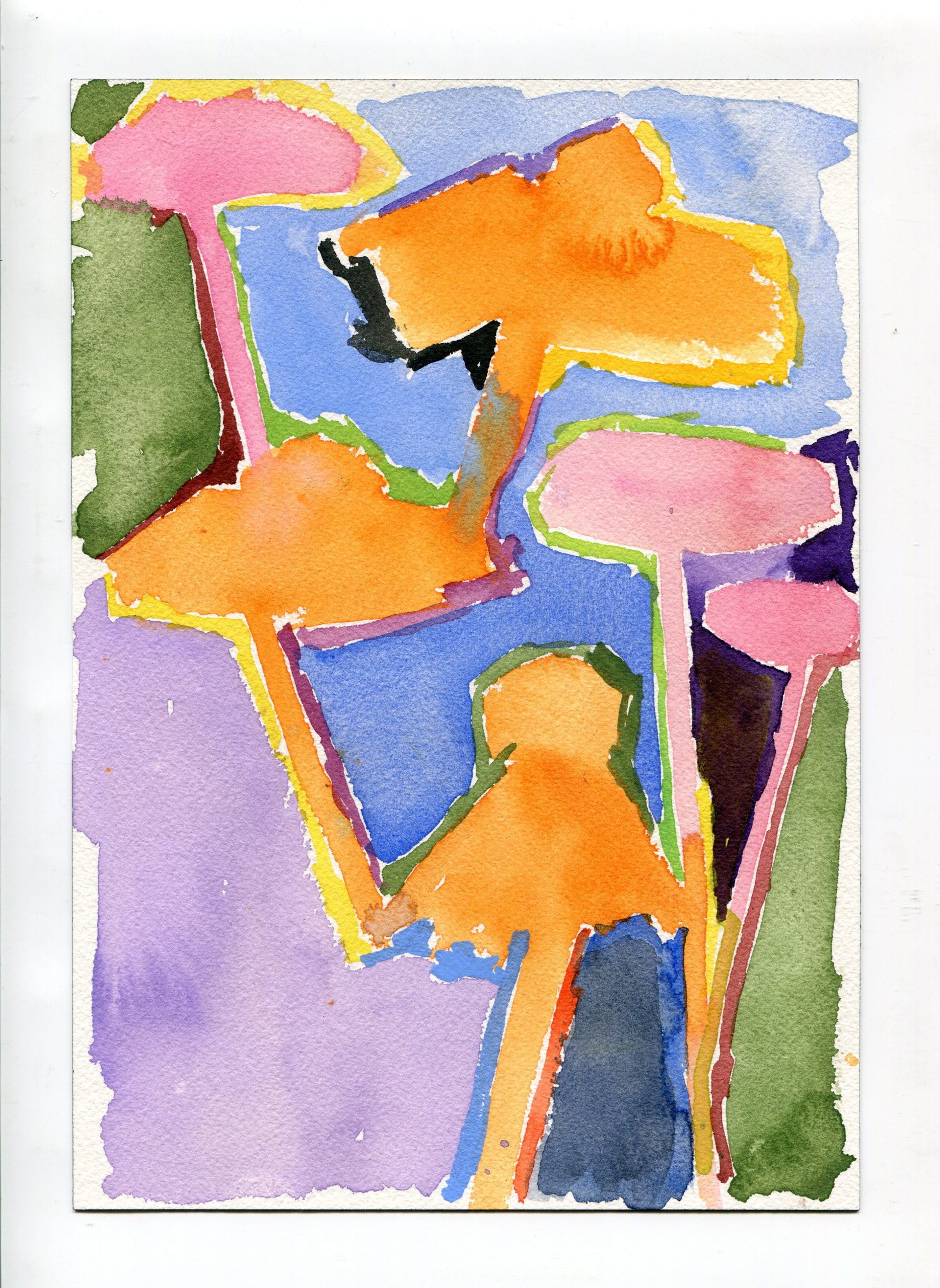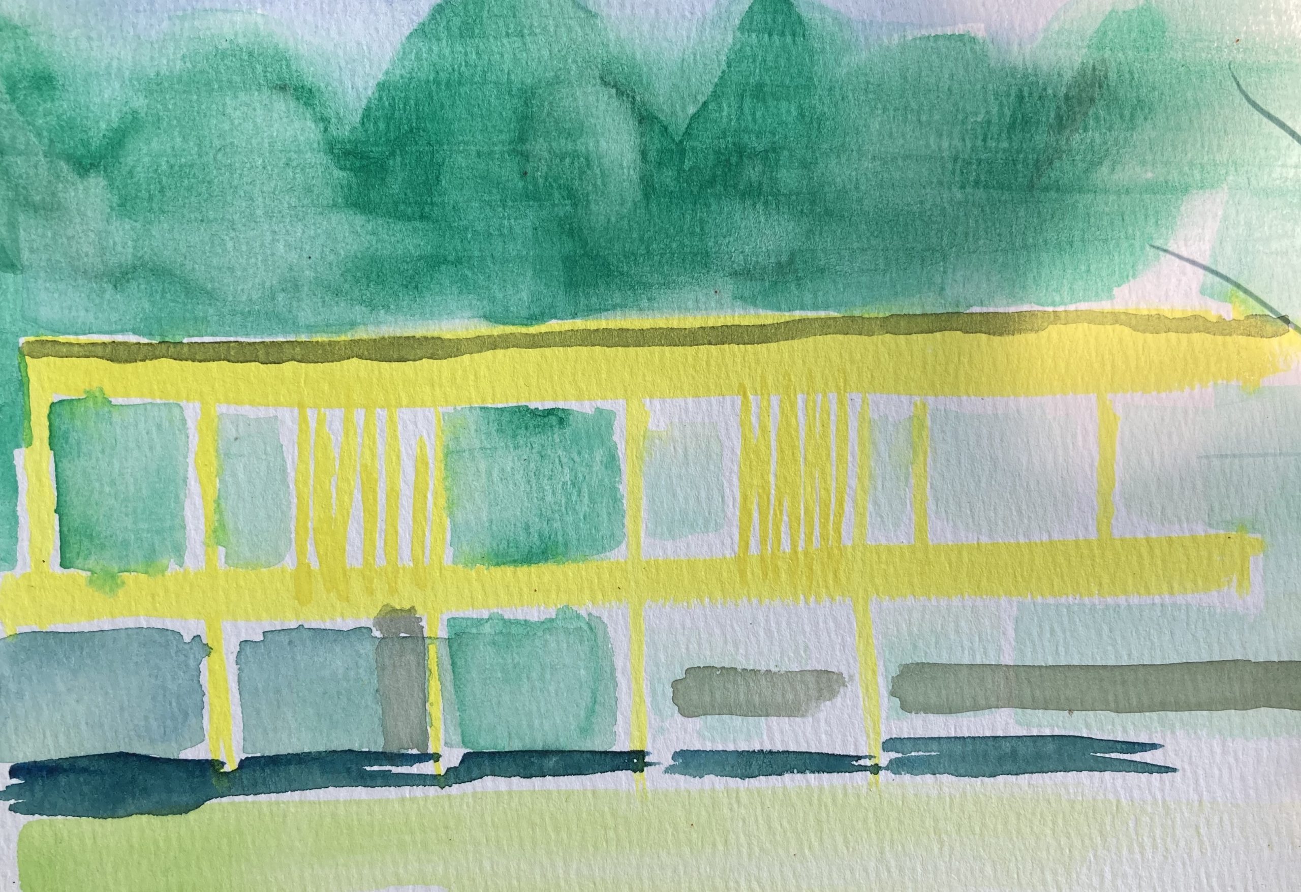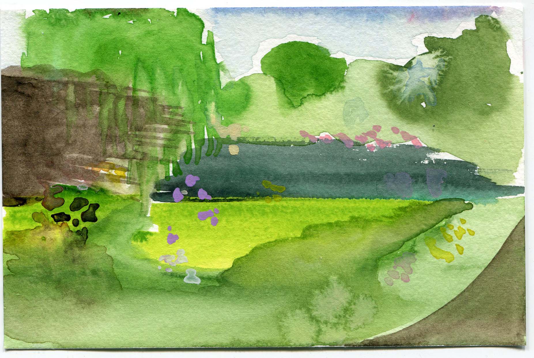 Leslie showed up with her portable painting tables and pallets of Japanese watercolors and we spent the afternoon painting with my sister Natalie. Leslie made a number of beautiful paintings, while I muddled through various attempts to put something on paper that wasn’t immediately offensive. She was a gracious teacher and encouraging painting partner. It’s nice to spend time working alongside somebody that has a very developed practice. The paintings weren’t overly precious, and she worked with an ease and confidence that made it fun. She had a nice repertoire of encouraging comments to keep you moving: “It’s just paper.” Or “You can start another painting if you don’t like that one.” Leslie’s paintings were abstract but rooted in the situation. She pulled elements like the color of the coneflowers, or the shape of a bush, or the bending of a trunk, and synthesized them into imaginary landscapes that were fantastic, but familiar. I don’t think she could have made the same painting sitting anywhere else, they seemed very specific to the time and place. I didn’t end up with any paintings that I liked, and I don’t think I’ve touched my watercolors since, but it did give me a refreshed appreciation for my immediate environment, the beauty of the flowers and the grasses, and the power of concentrated observation to transform your connection to a place.