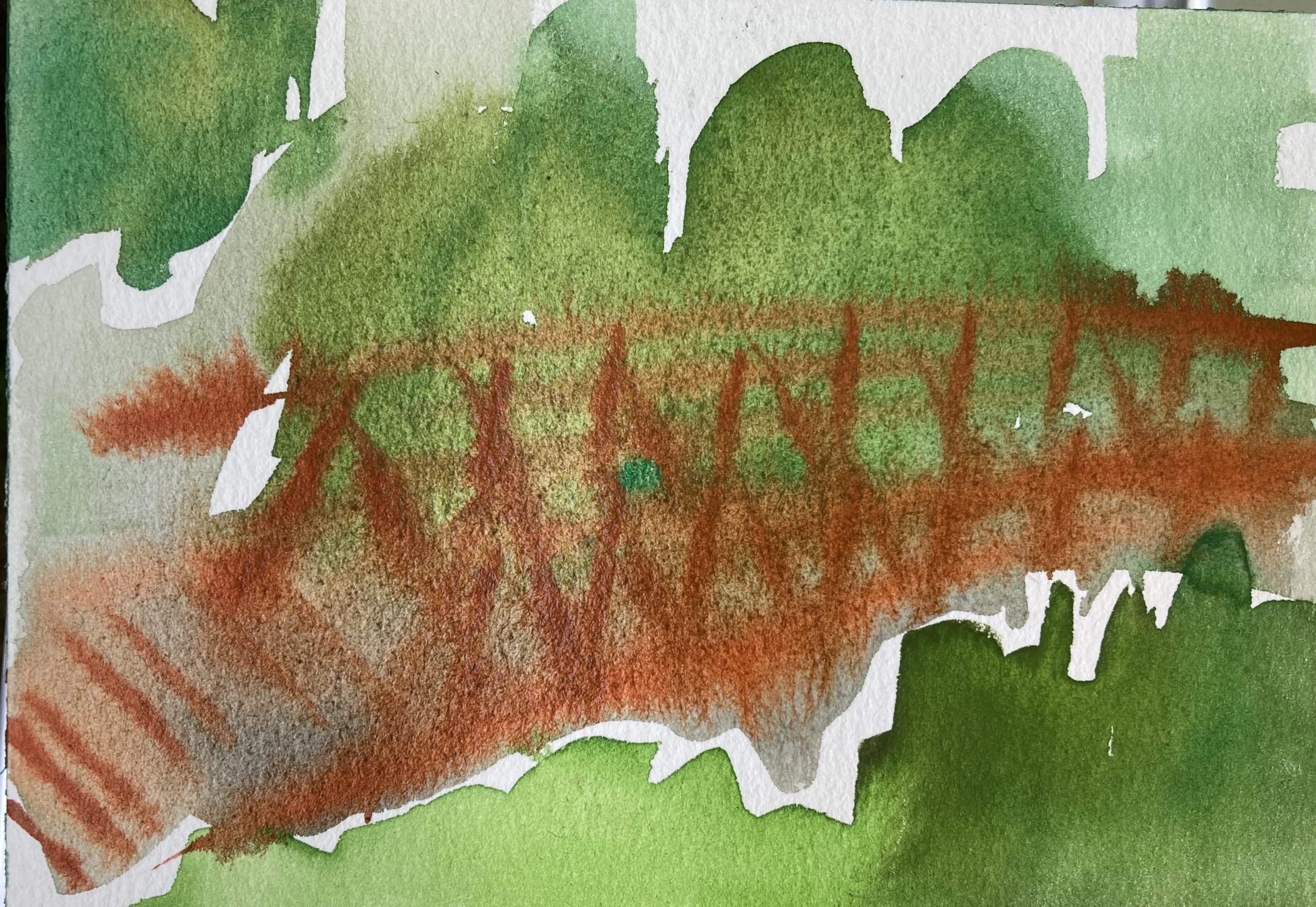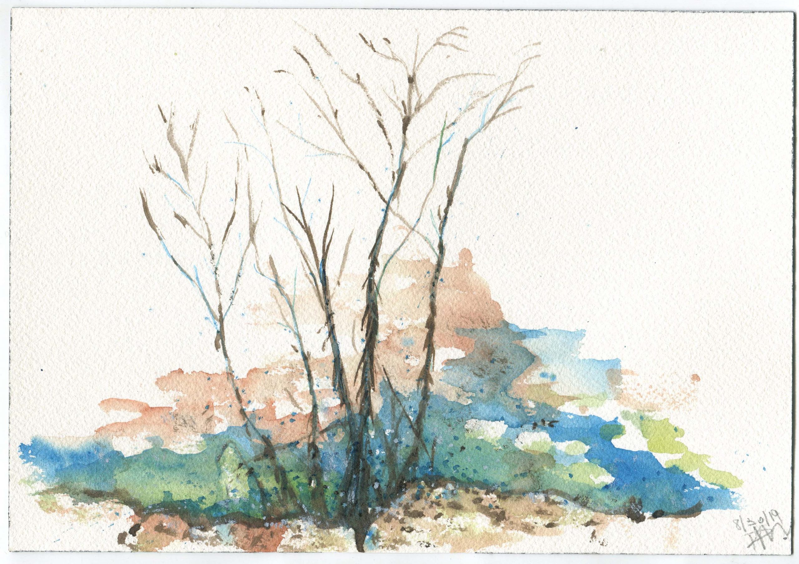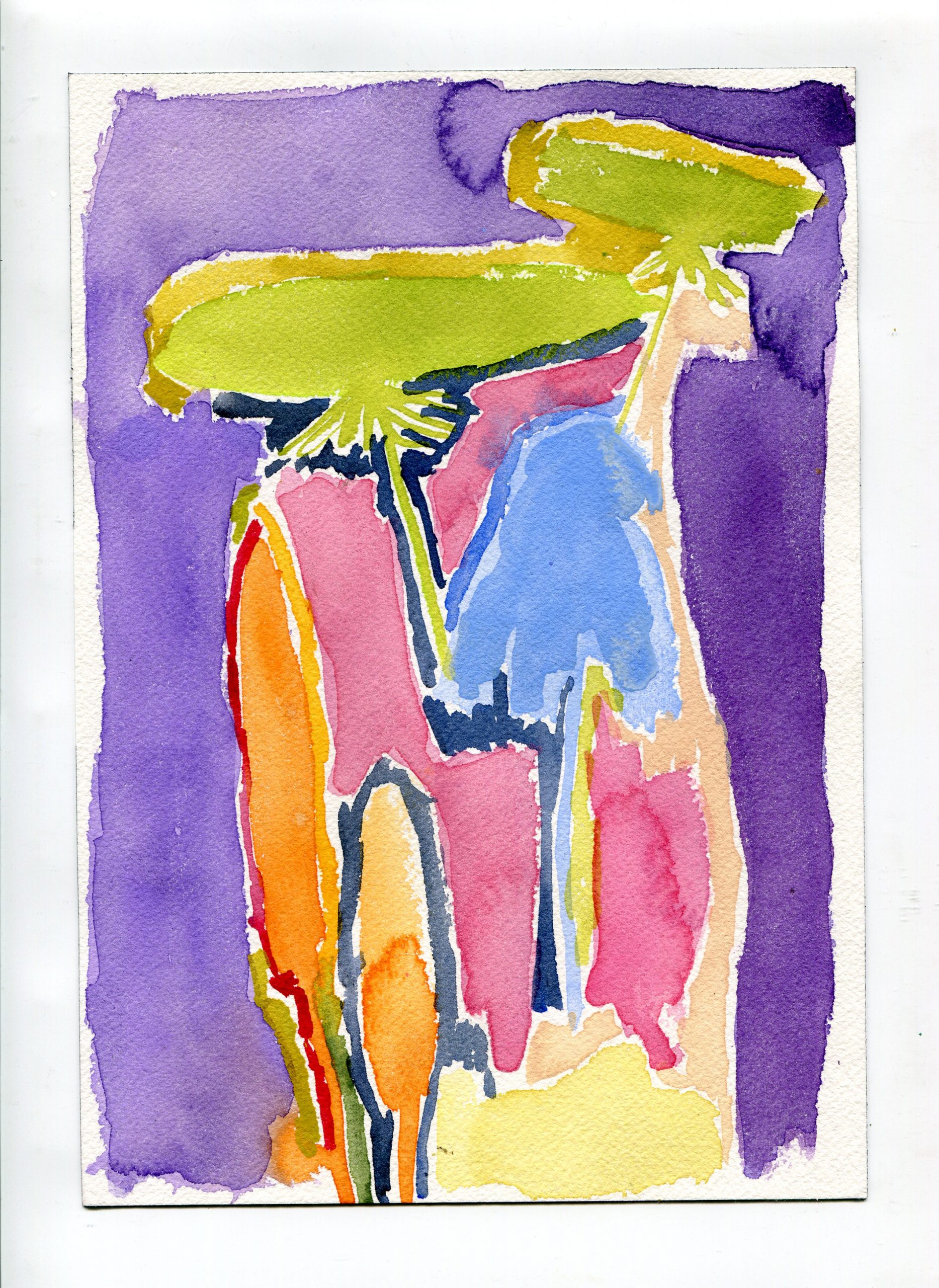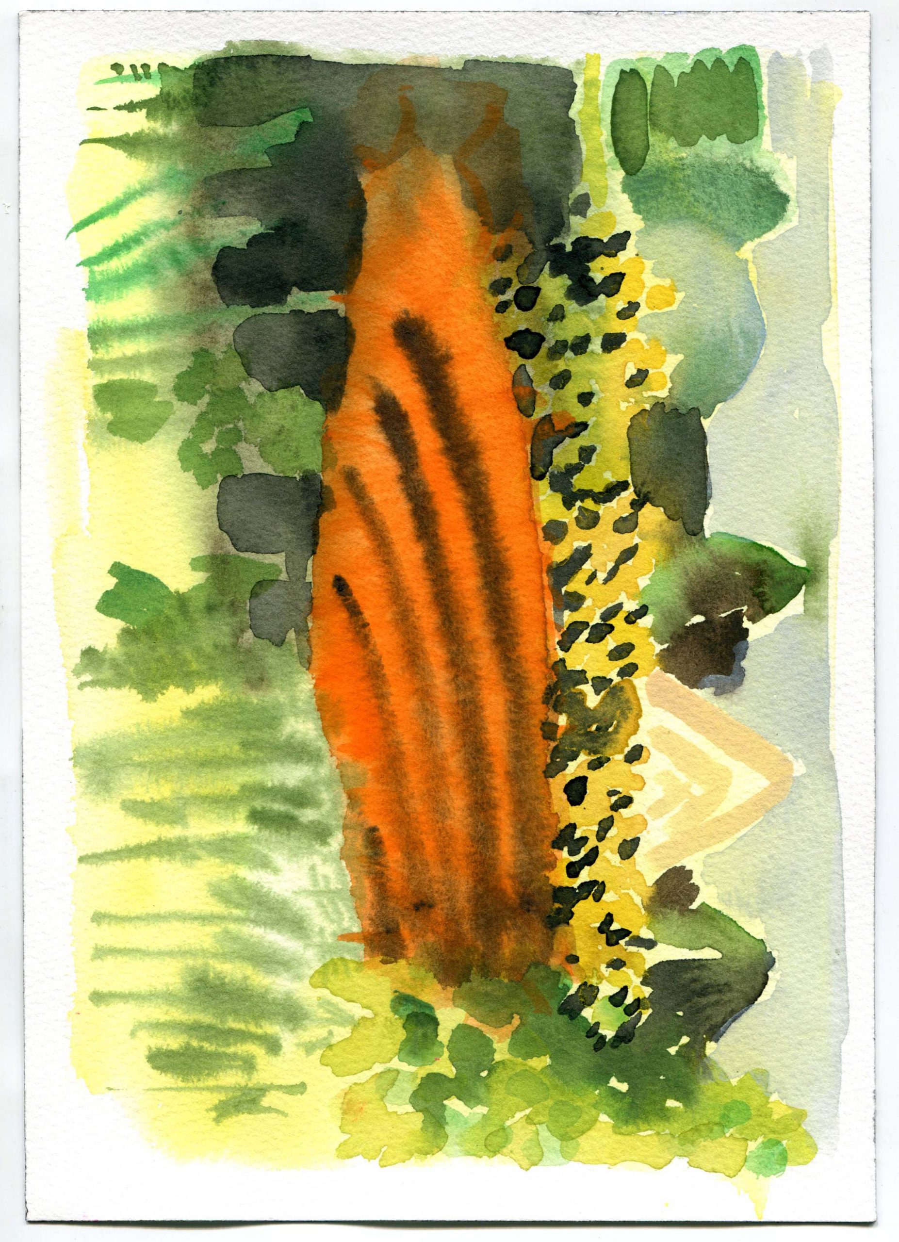 Leslie showed up with her portable painting tables and pallets of Japanese watercolors and we spent the afternoon painting with my sister Natalie. Leslie made a number of beautiful paintings, while I muddled through various attempts to put something on paper that wasn’t immediately offensive. She was a gracious teacher and encouraging painting partner. It’s nice to spend time working alongside somebody that has a very developed practice. The paintings weren’t overly precious, and she worked with an ease and confidence that made it fun. She had a nice repertoire of encouraging comments to keep you moving: “It’s just paper.” Or “You can start another painting if you don’t like that one.” Leslie’s paintings were abstract but rooted in the situation. She pulled elements like the color of the coneflowers, or the shape of a bush, or the bending of a trunk, and synthesized them into imaginary landscapes that were fantastic, but familiar. I don’t think she could have made the same painting sitting anywhere else, they seemed very specific to the time and place. I didn’t end up with any paintings that I liked, and I don’t think I’ve touched my watercolors since, but it did give me a refreshed appreciation for my immediate environment, the beauty of the flowers and the grasses, and the power of concentrated observation to transform your connection to a place.
